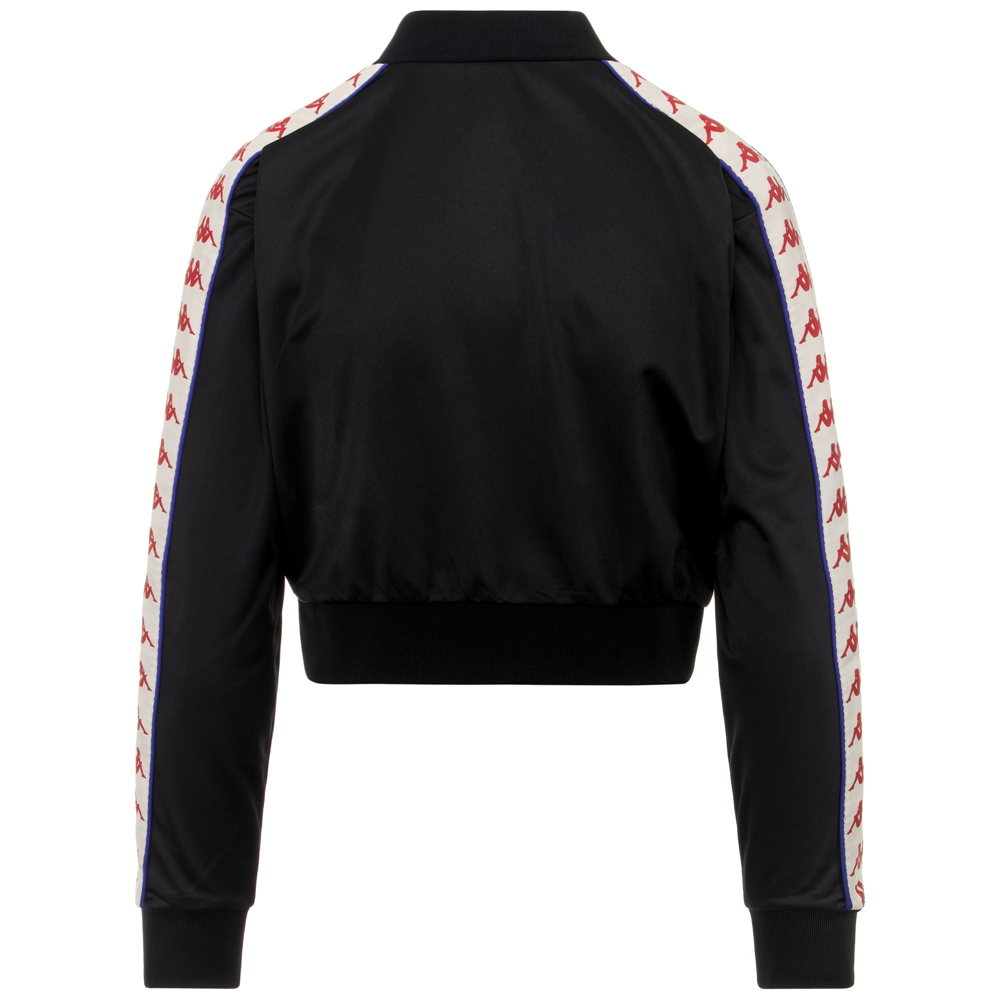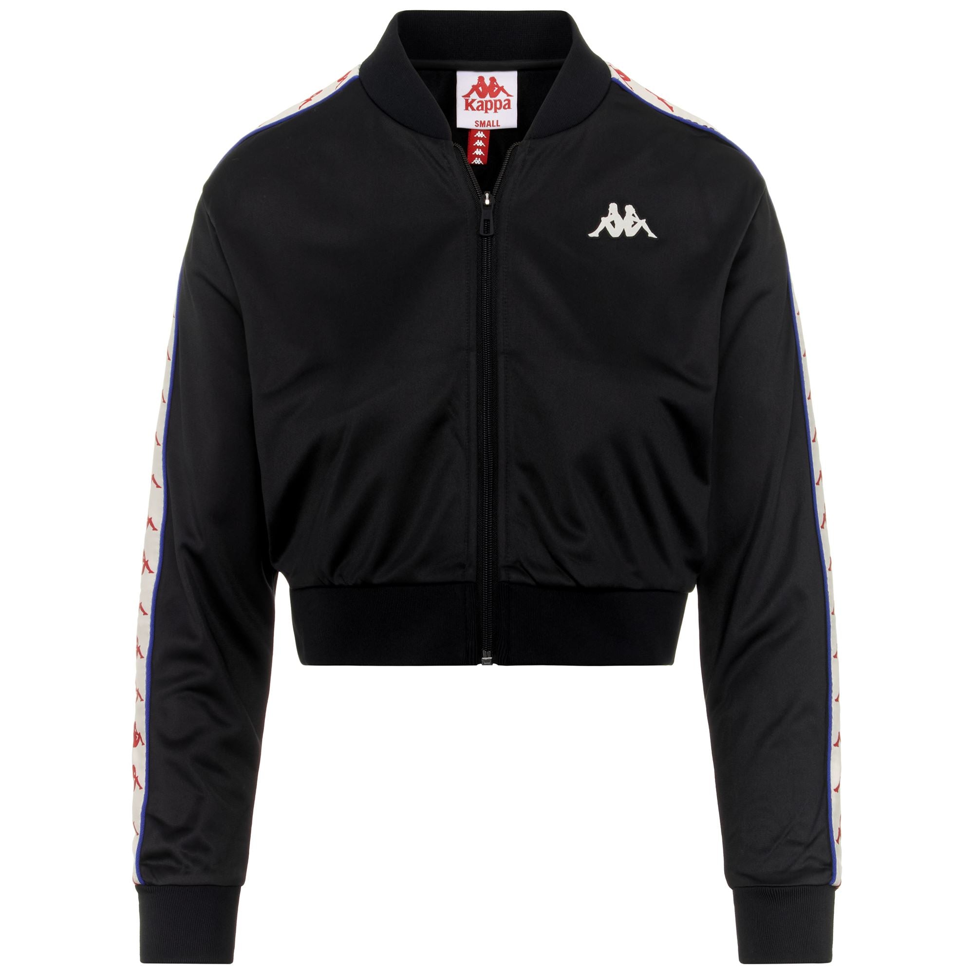 Woman cropped sweatshirt in brushed tricot.SLIM FIT. Bomber collar. ribbed borders. full zip.Jacquard classic tape with piping. laser cut Kappa logo applied on chest.