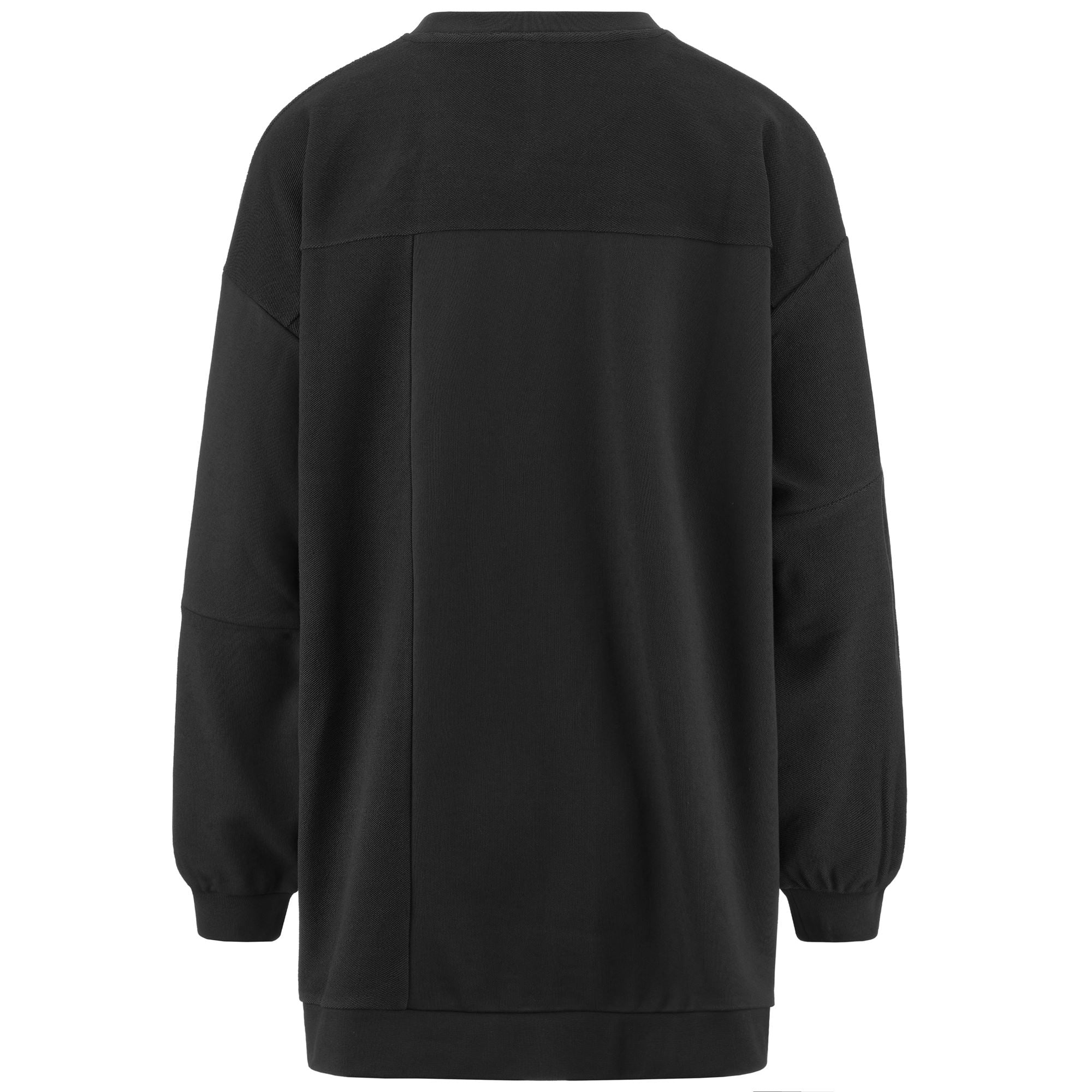 Woman’s sweatshirt in french terry.OVERSIZE FIT.Graphic banda tape with piping applied on sleeves.Ribbed lower border and cuffs.Omini logo embroidered on front.