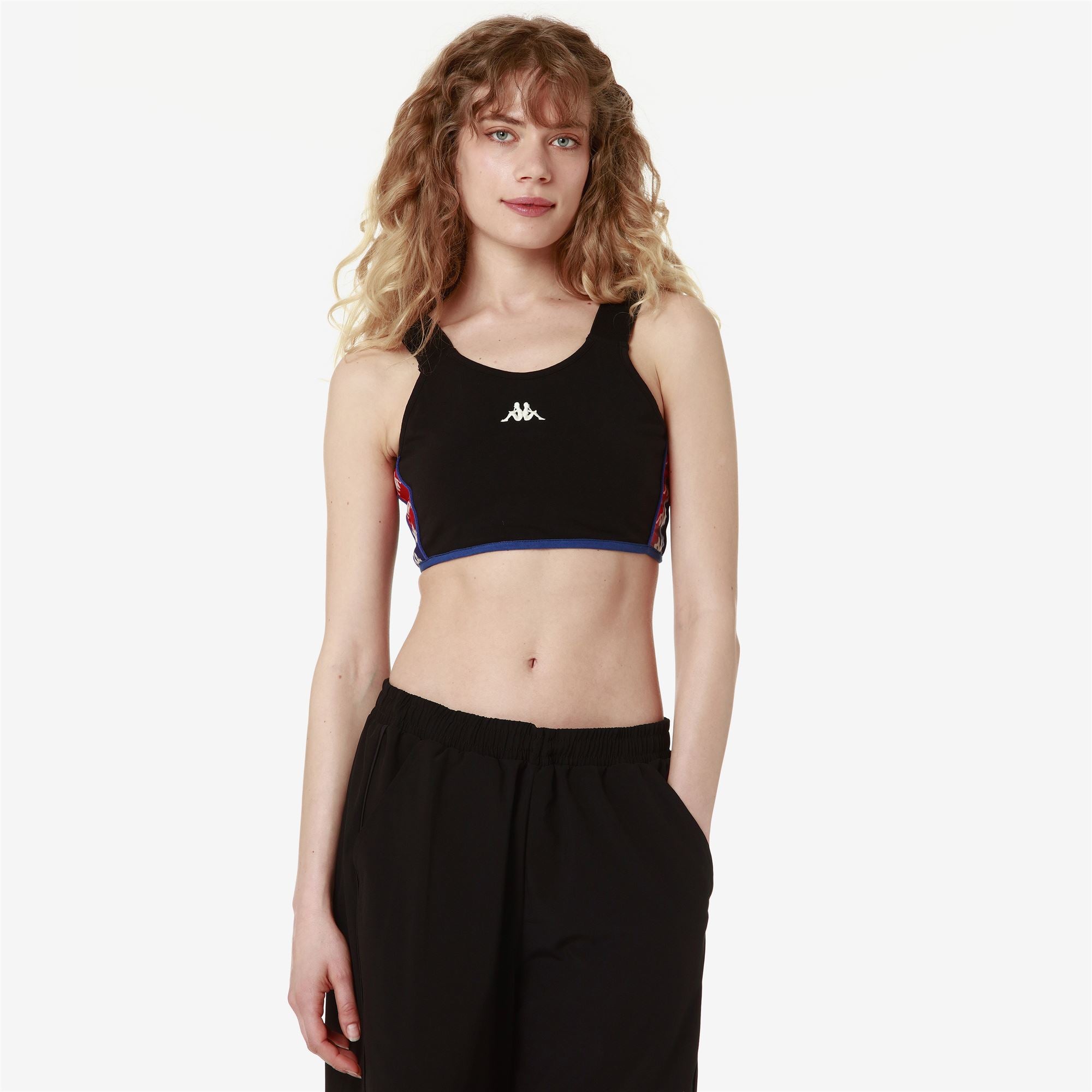 Top for woman in jersey stretch. SLIM FITBanda tape applied on sides.Omini Logo emby.