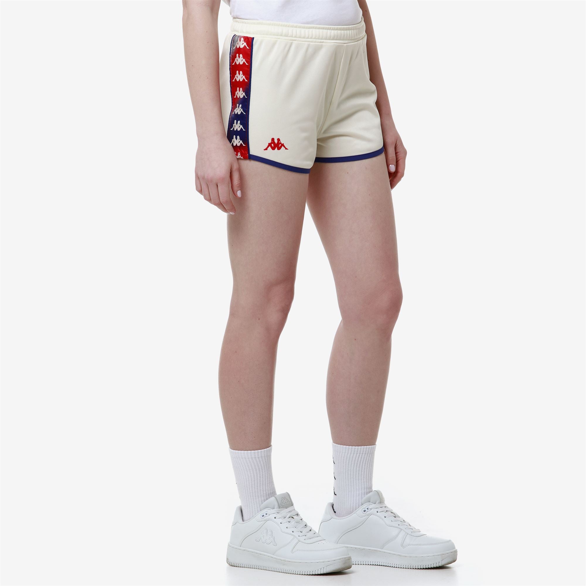 Shorts for woman in poly tricot brushed.REGULAR FITElasticated waistband. Banda tape applied on side leg. Binding on bottom leg. Laser cut omini logo.