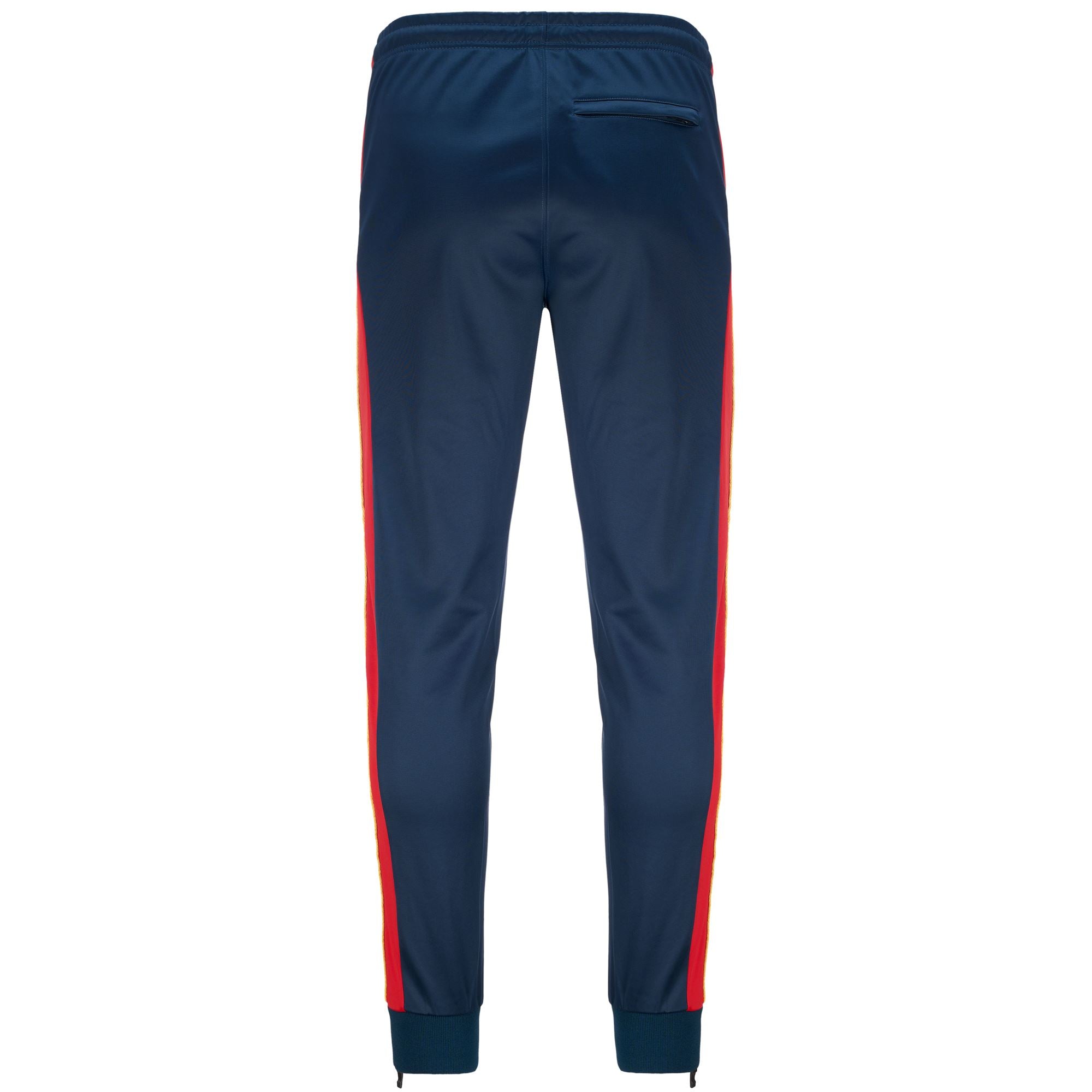 GARA.Man pants in brushed tricot. SLIM FIT.Jacquard Omini logo tape with graphics and piping applied. ribbed bottom. elastic waist band with coulisse. pockets and insert on sides. zipped bottom opening. Gabardine Omini logo and Team logo embroidered on front.GENOA FC.