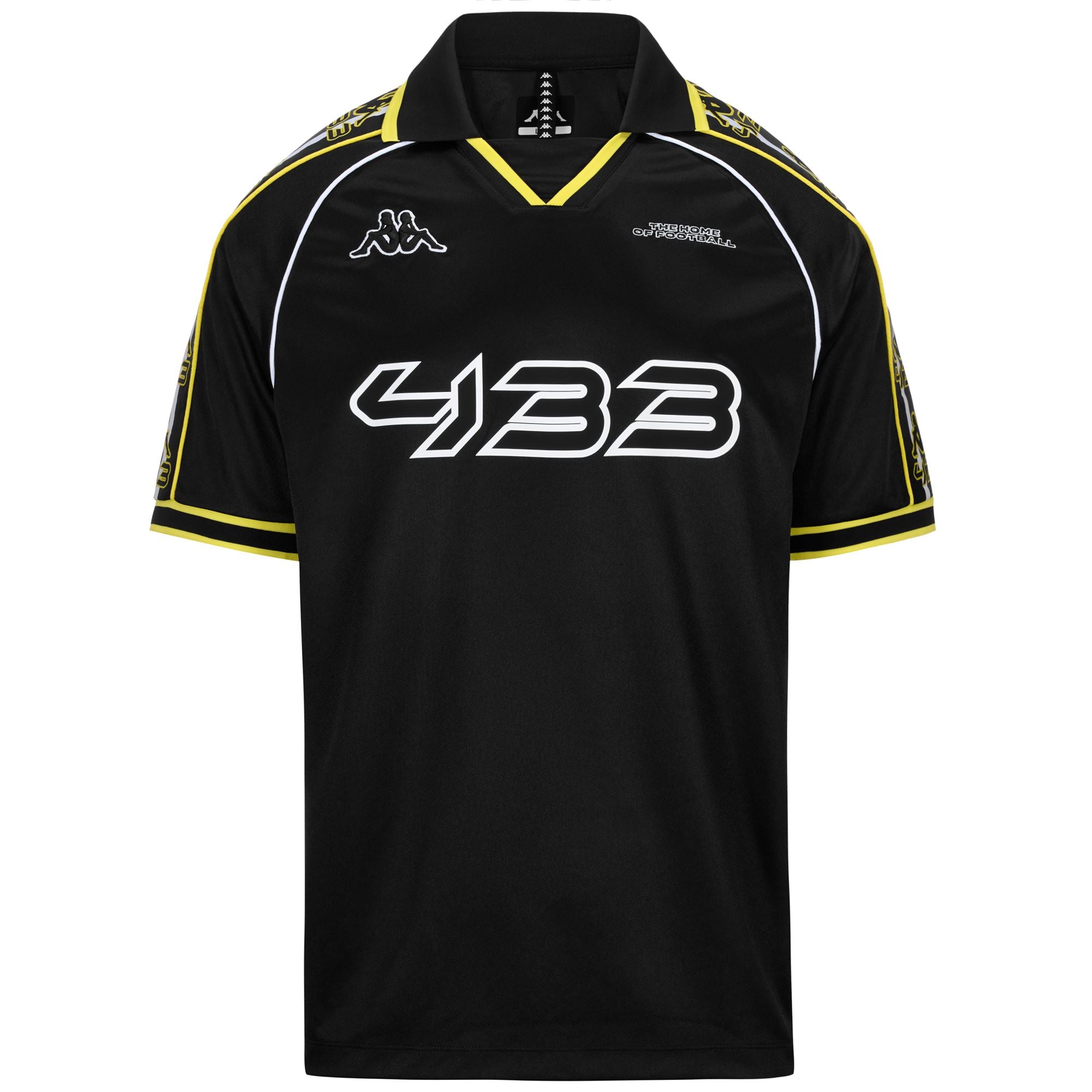 GARA.Shirt for man in shiny polyester fabric.OVERSIZE FIT.Short sleeve.polo neck and rib sleeve bottoms.Omini logo in 3D embroidery and THE HOME OF FOOTBALL logo embroidered on chest.Jacquard Banda on sleeves.433.