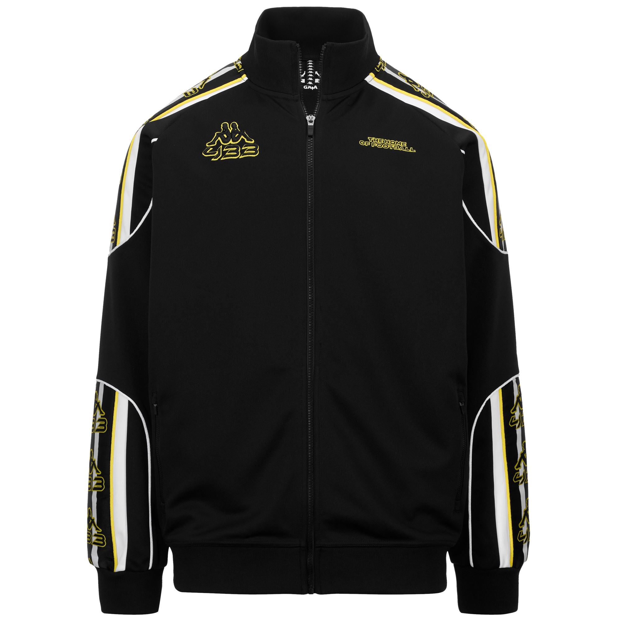 GARA.Man jacket in polyester.RELAXED FIT.1X1 rib cuffs and collars.full zip in front and two front pockets with zip.Inserts on sleeves with jacquard Banda.Omini 433 logo in 3D embroidered on chest.Omini 433 logo in outline embroidered on back.THE HOME OF FOOTBALL logo in 3D embroidered on chest.433.