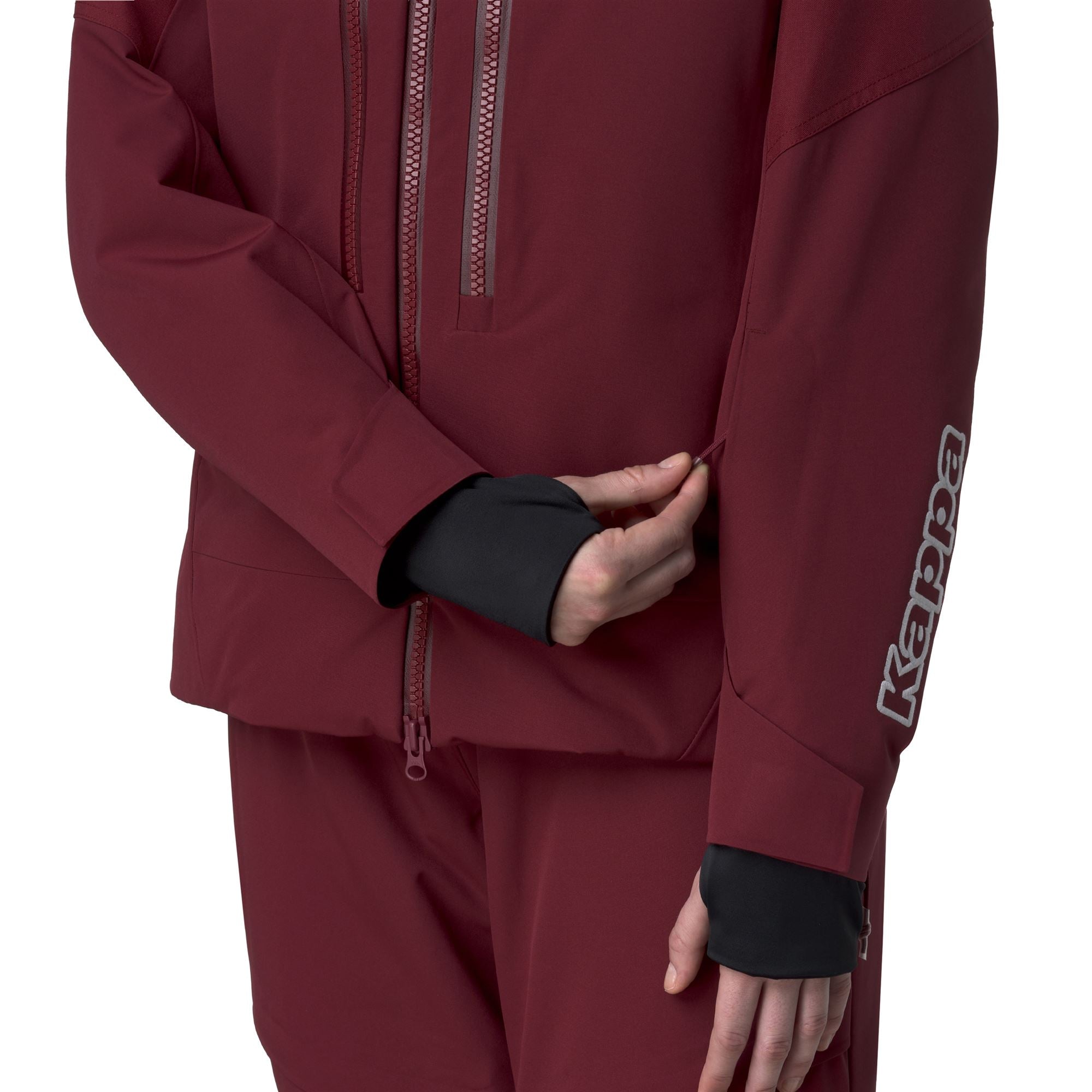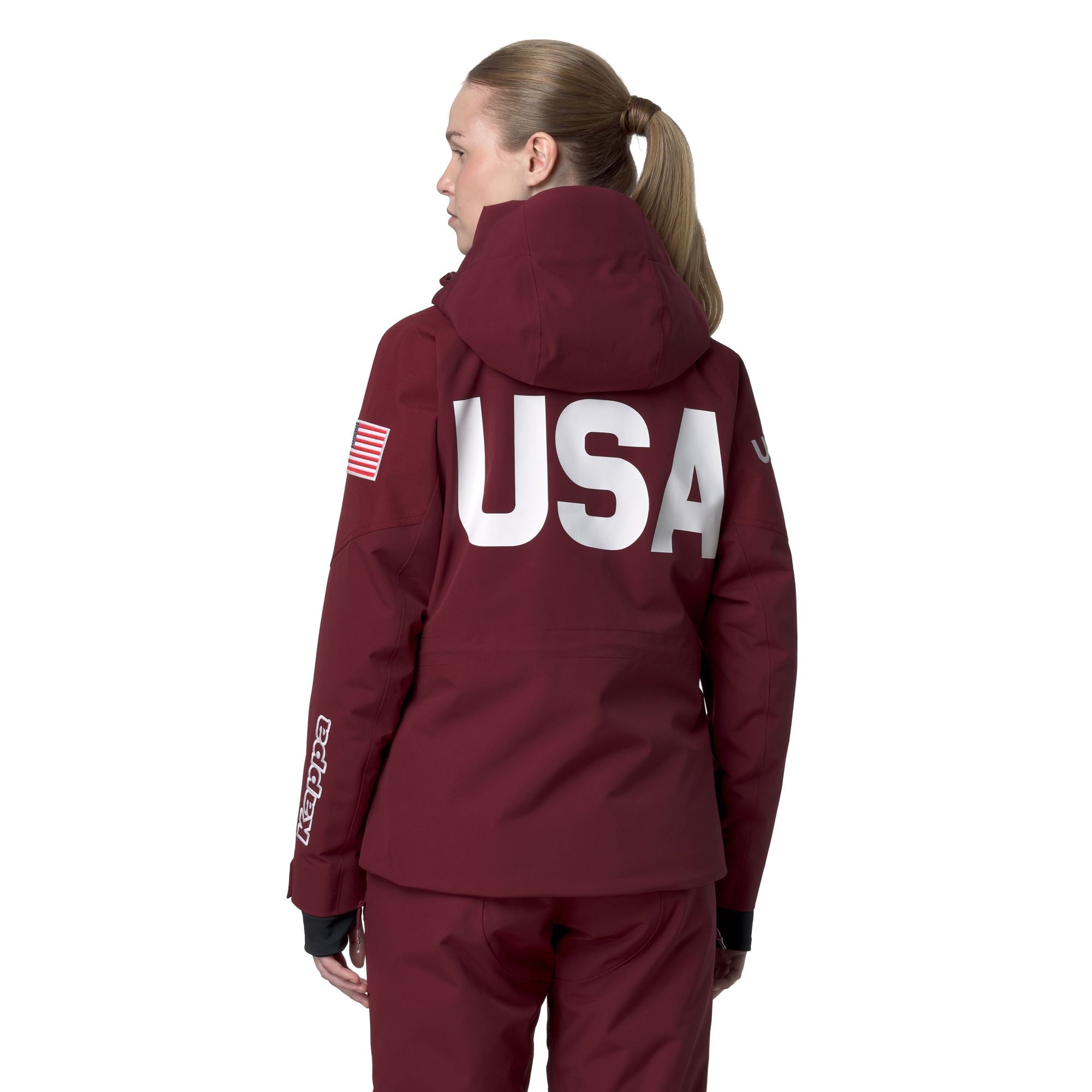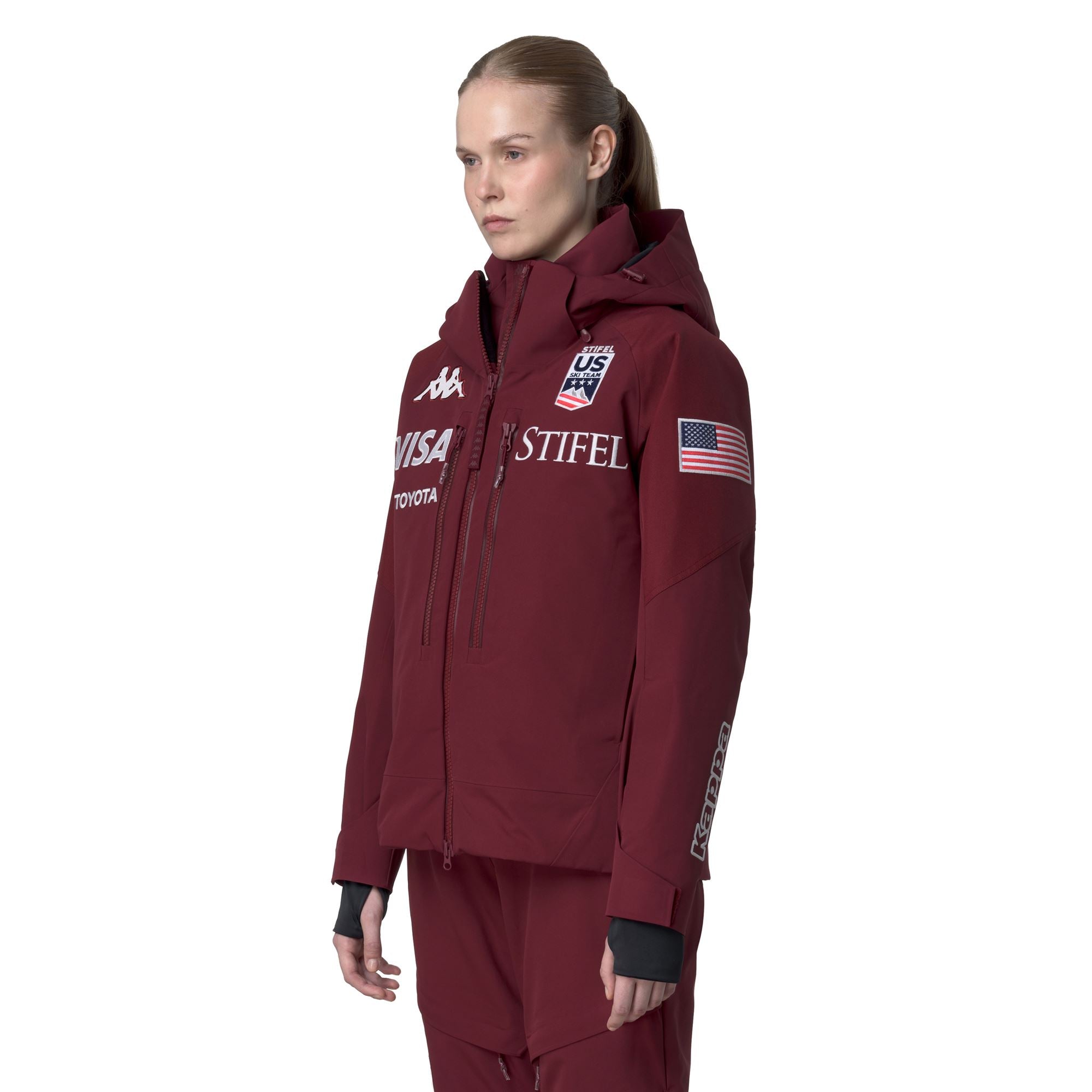 Women’s padded jacket made from 2-layer mechanical stretch fabric. offering optimal protection thanks to WATERPROOF PROTECTION 20.000 mm H?O and BREATHABILITY 20.000 g/m2/24h. enhanced with a PFC-free water-repellent treatment. The 180 g insulation provides lightweight warmth without weighing you down.The regular fit ensures freedom of movement. while reinforced shoulders and hem increase durability and protection against the elements. Additional features include a detachable hood. flap pockets with zip closure. ventilation zips. internal snow gaiter. elastic cuffs. taped seams. and customizable adjustment systems. Distinctive details include the Omini logo and US Ski and Snowboard Team customizations.