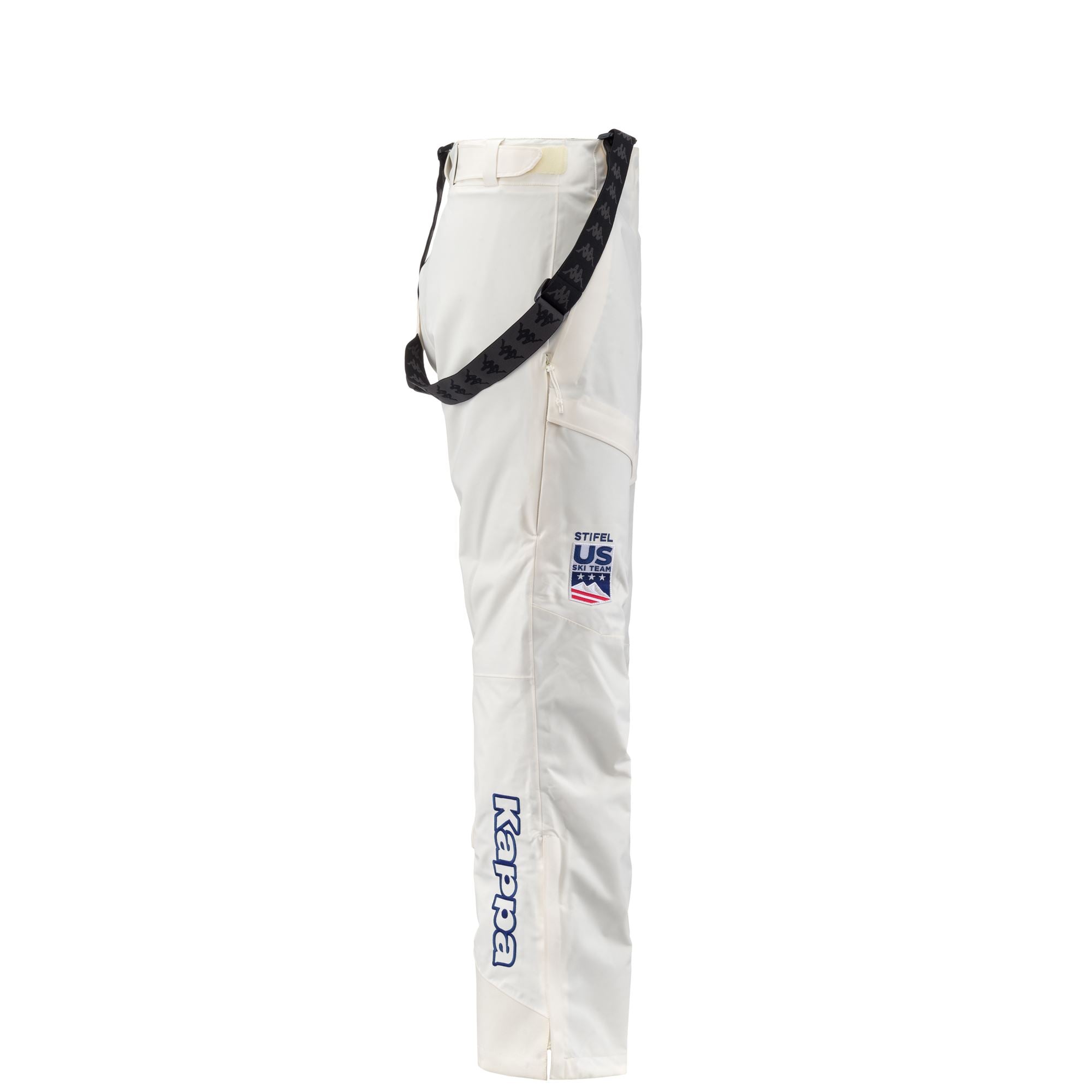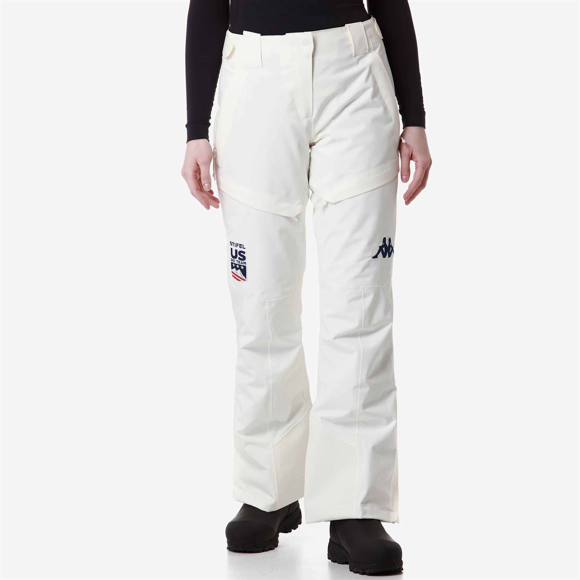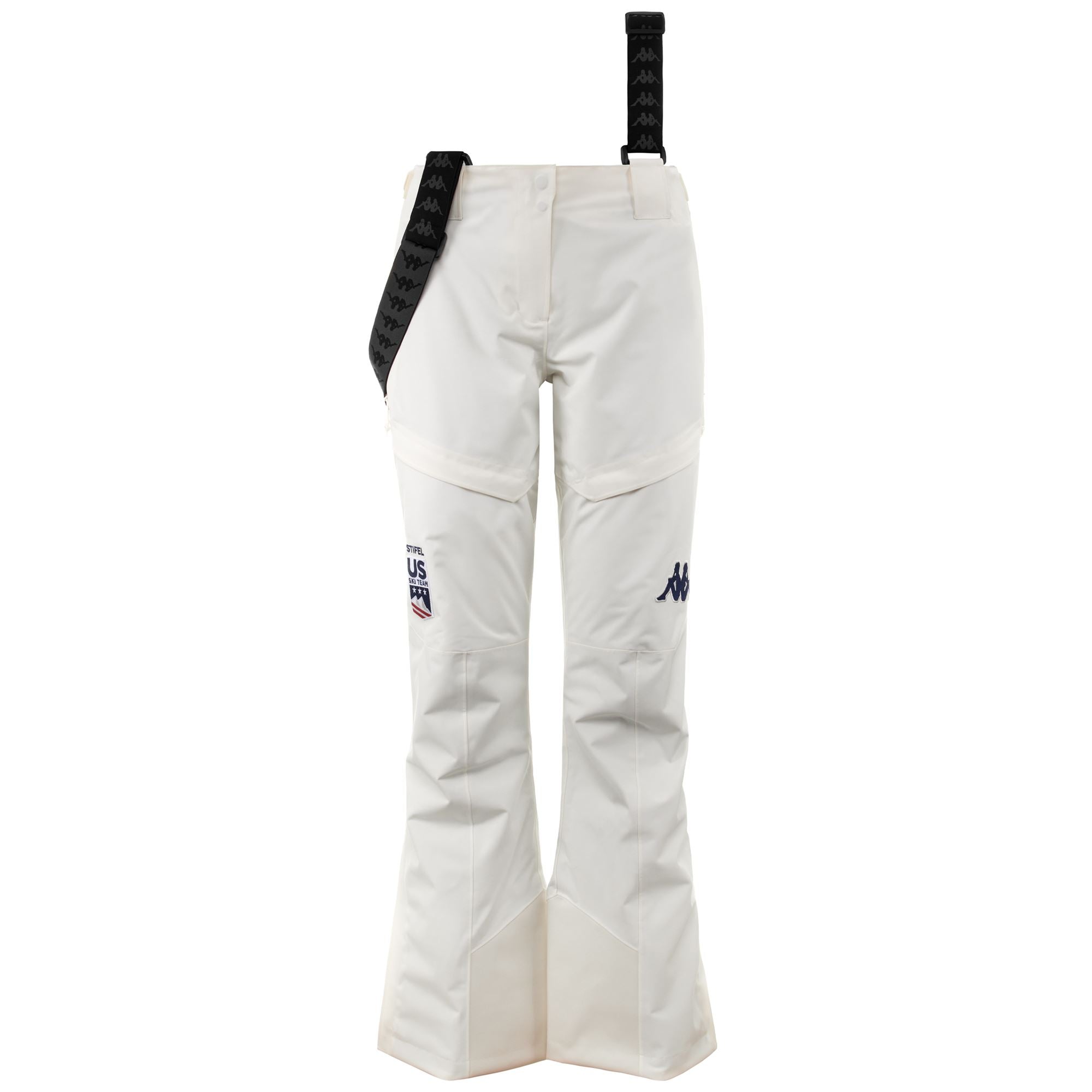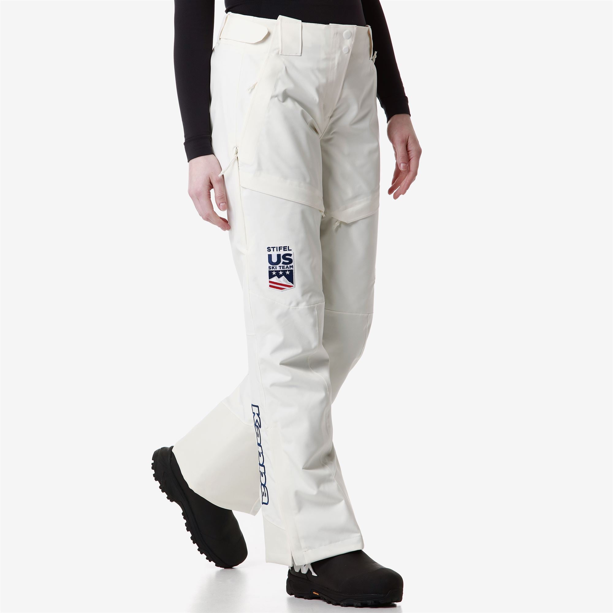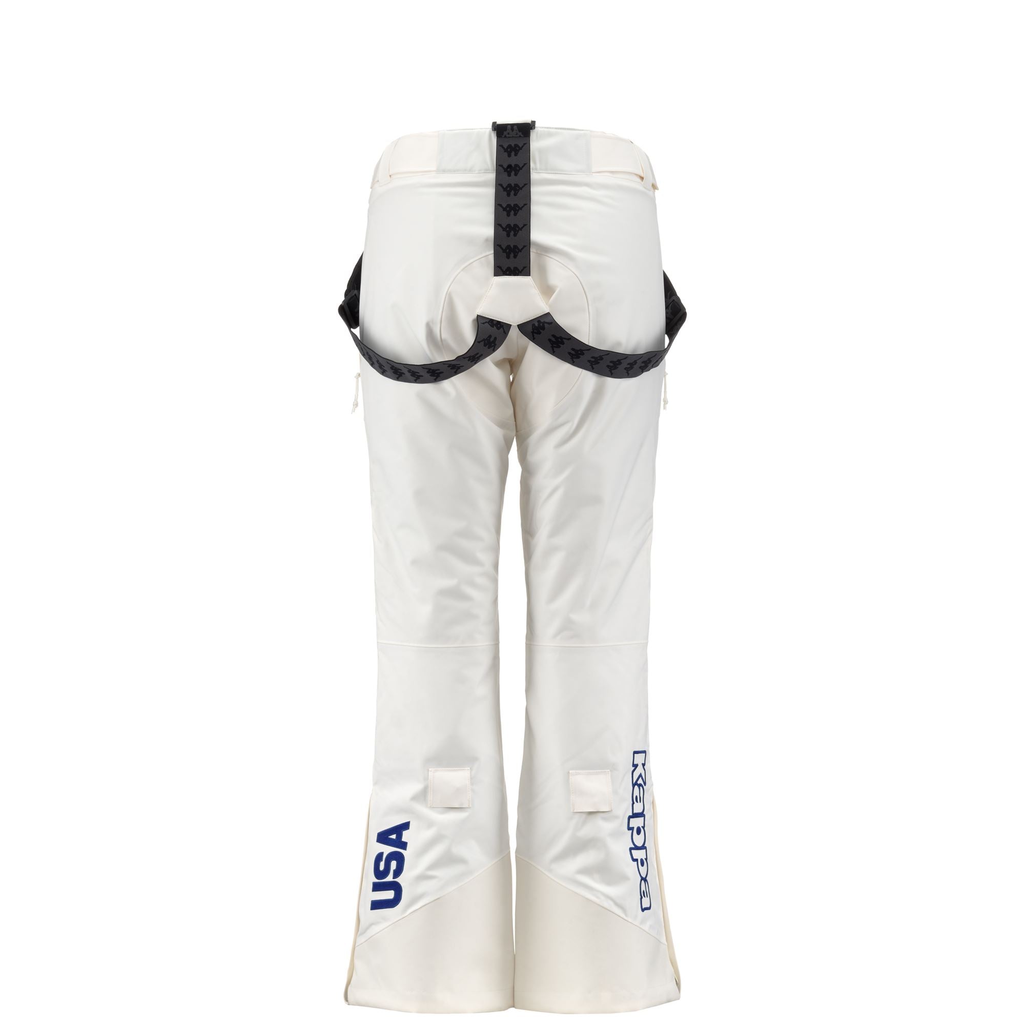 Women’s padded half-zip pants. made from 2-layer mechanical stretch fabric with WATERPROOF PROTECTION 20.000 mm H?O and BREATHABILITY 20.000 g/m2/24h. enhanced with a PFC-free water-repellent treatment. The 80 g insulation provides lightweight warmth and freedom of movement.The regular fit is designed to perfectly follow the body’s shape. Additional technical features include waterproof zip leg openings. adjustable waist. zippered and flap pockets. reinforced lower legs. internal boot gaiters. and taped seams for complete protection against the elements. Distinctive details include the Omini logo and US Ski and Snowboard Team customizations.