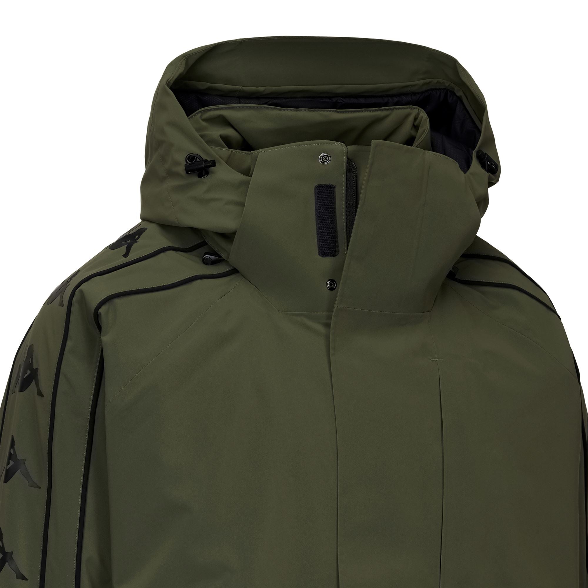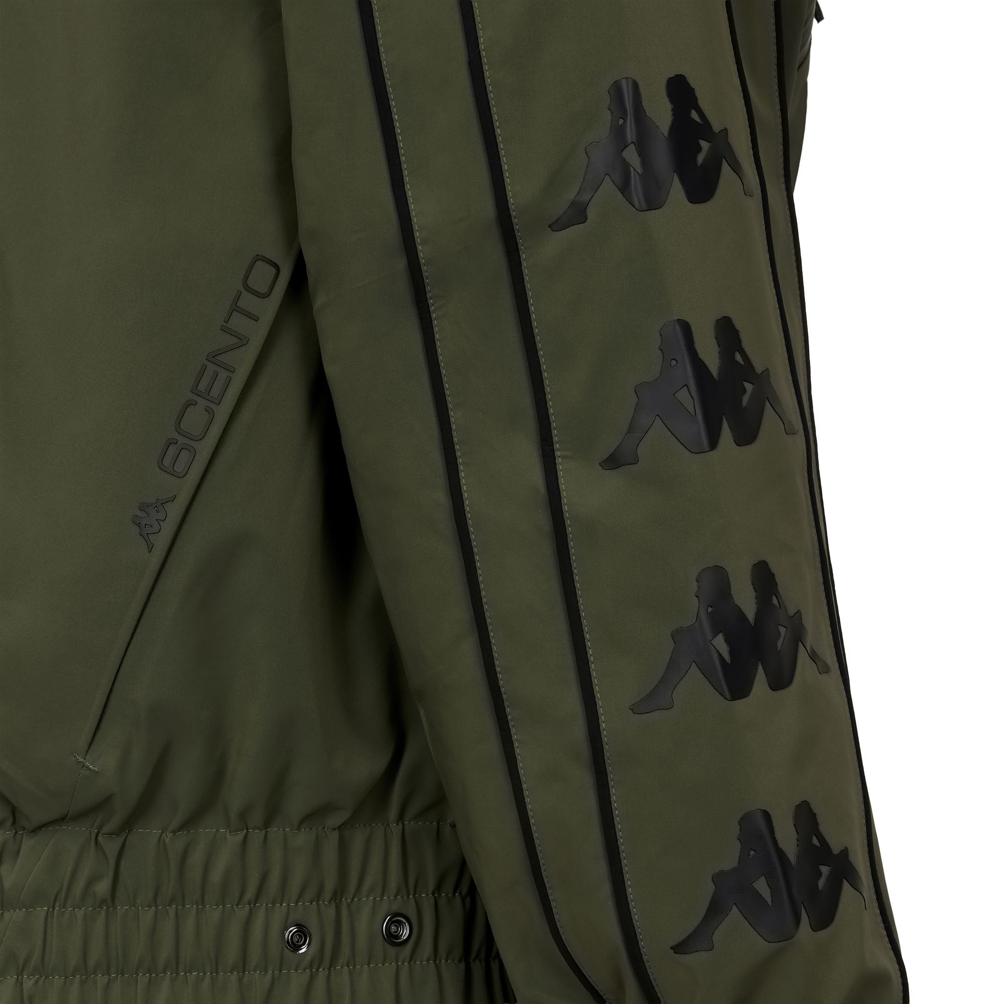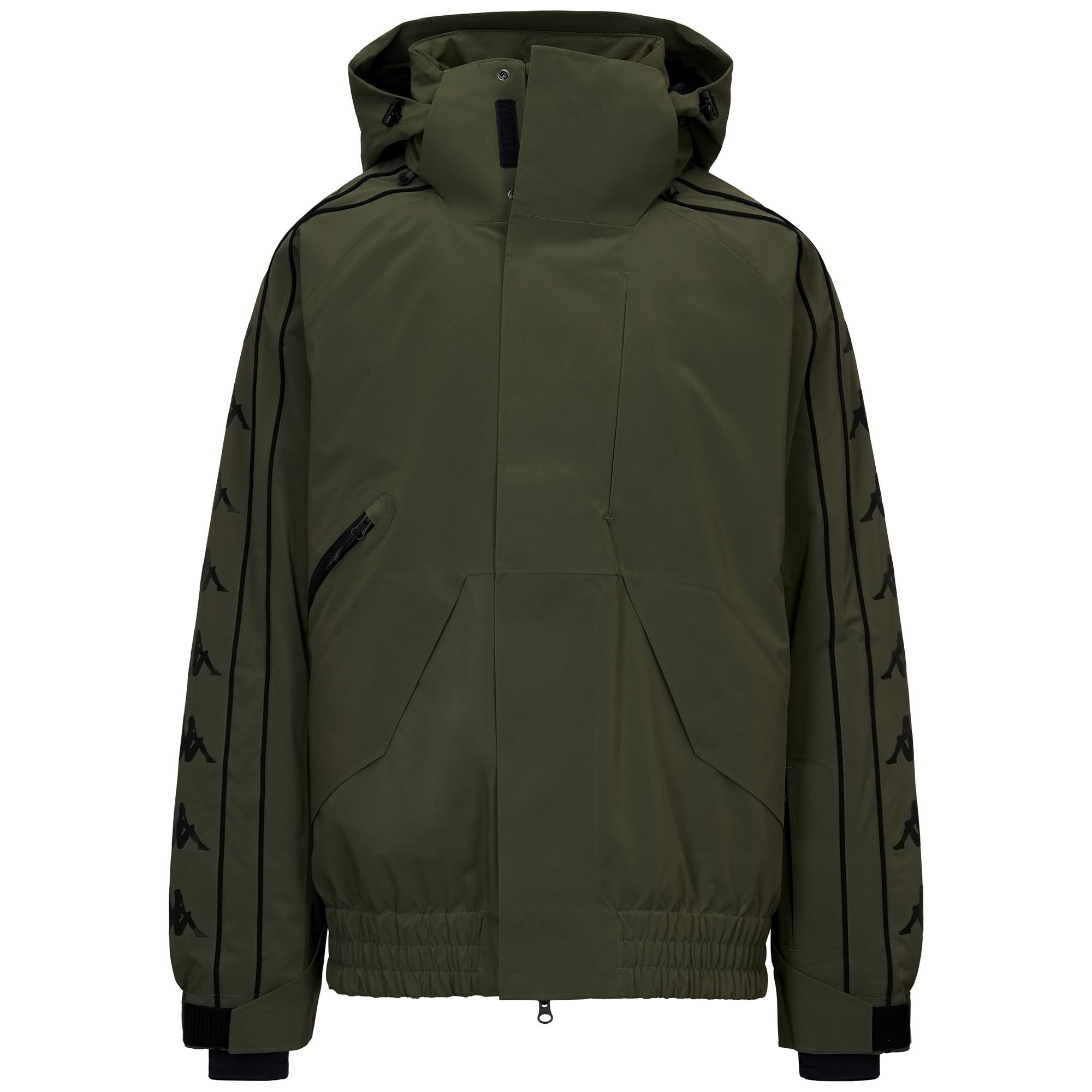 Men’s padded jacket made from recycled polyester. featuring WATERPROOF PROTECTION 20.000 mm H?O and BREATHABILITY 20.000 g/m2/24h. enhanced with a PFC-free water-repellent treatment. Fellex? 180 g insulation provides optimal warmth without weighing you down. Oversize fit ensures a roomy and comfortable fit.Features include 222 Band on shoulders and hem with elastic. detachable hood. chest pocket. side pockets. flap pockets with zip closure. ventilation zips. elastic cuffs. taped seams. and customizable adjustments. Distinctive details include the applied 6CENTO logo and applied 222 Band Kappa.