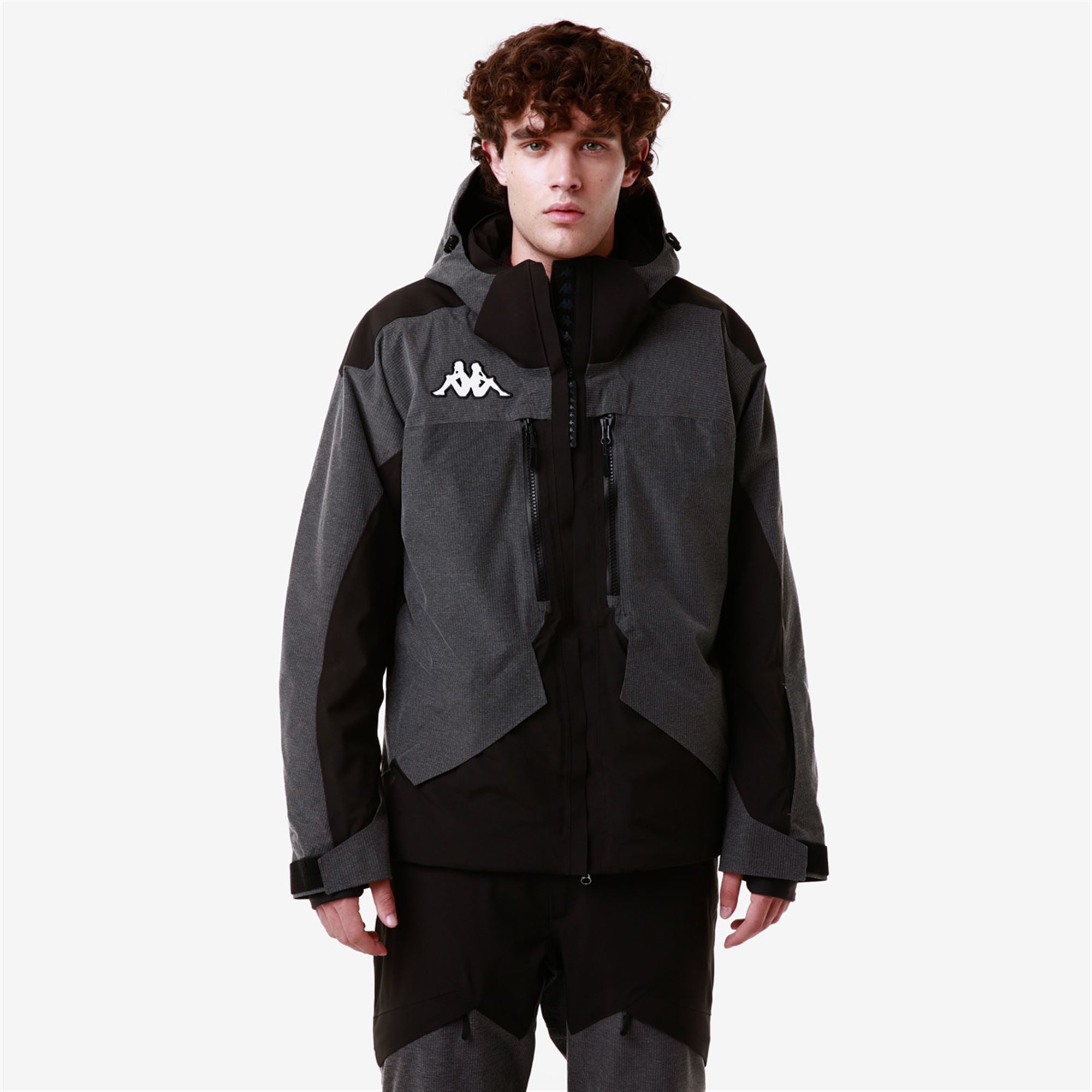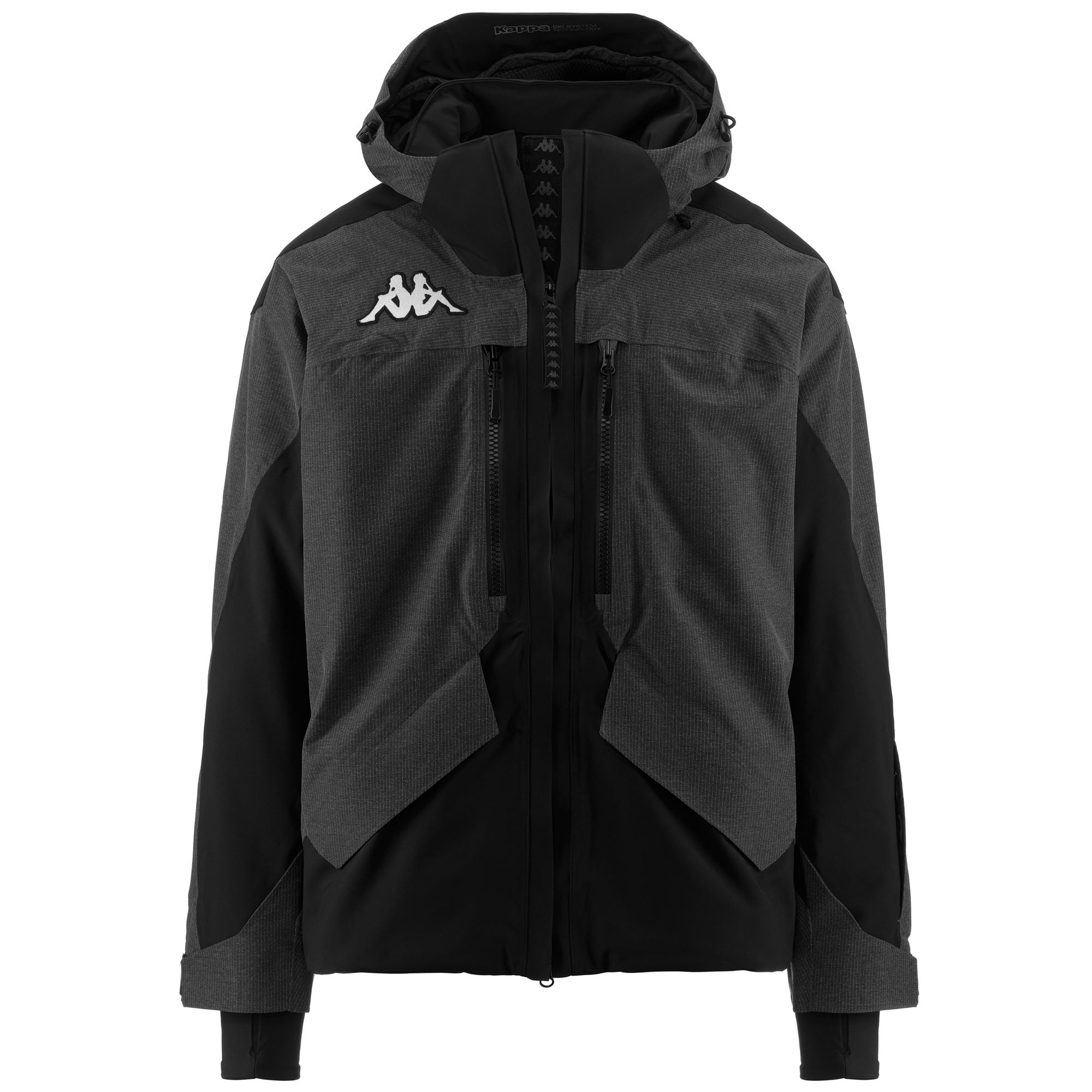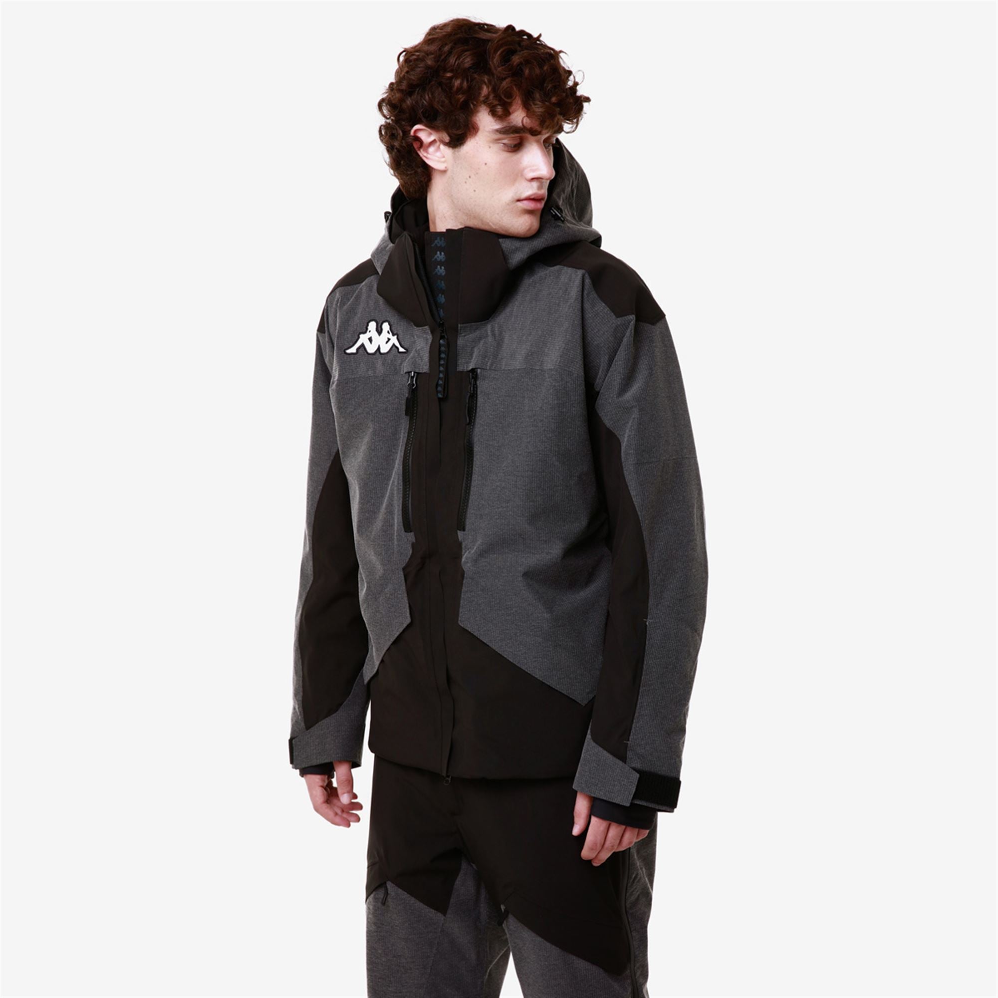 SPORT.Man padded jacket made by two fabrics. ripstop stretch. with technology WATER PROTECTION. CLIMA PROTECTION. membrane WATERPROOF PROTECTION 20000 mm. BREATHABILITY 20000gr/m2/24. padding Fellex??. body 180G. sleeves 120G.inner jacket technology KAPPA SKI SYSTEM TECHNOLOGY ???.SLIM FIT. Detachable hood. waterproof zip pockets. reinforced shoulder. ventilation zip. inner gaiter. cuff gaiters in stretch fabric. heat sealed seams. regulation adjustments.Logo Omini embroidery.