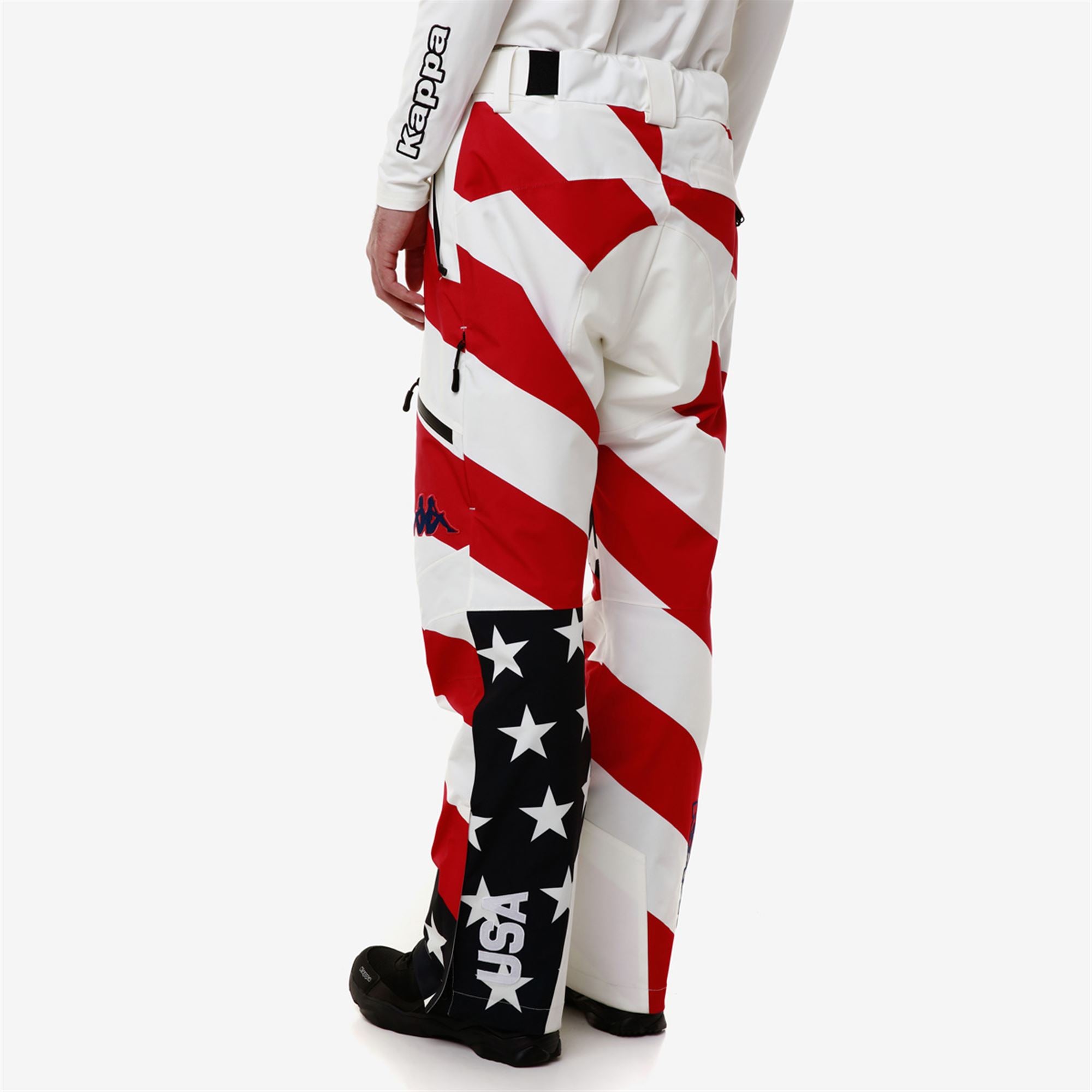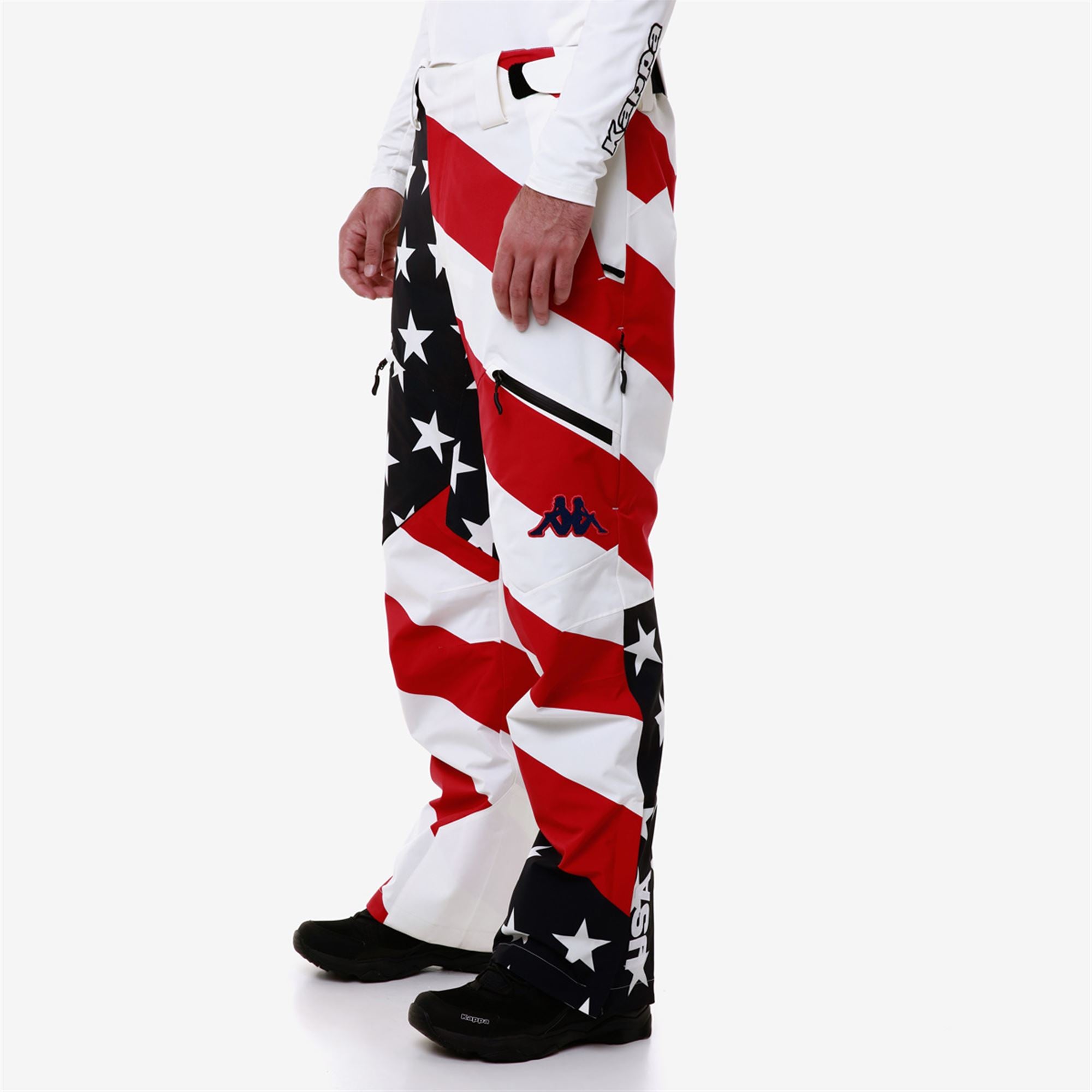 GARA.Man padded in mechanical stretch fabric with WATER PROTECTION. CLIMA PROTECTION. WATERPROOF PROTECTION 20000 mm. BREATHABILITY 20000gr/m2/24. padding Thermolite? Micro 60gr.REGULAR FIT.Detachable braces with Banda tape with logo Omini personalization. adjustable waist. pockets with waterproof zip clousure. bottom leg zip opening. bottom leg reinforced. boots gaiters. ventilation opening. heat sealed seams.Embroidered Kappa and Omini logos plus embroidered US logo.US SKI AND SNOWBOARD.