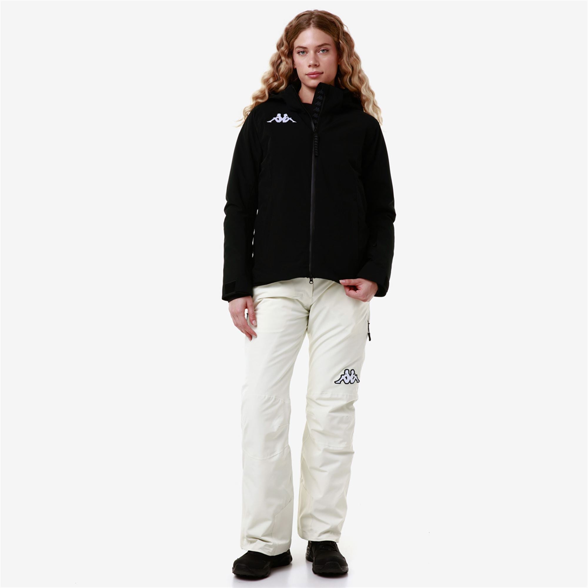 SPORT.Woman padded in stretch fabric with WATER PROTECTION. CLIMA PROTECTION. WATERPROOF PROTECTION 10000 mm. BREATHABILITY 10000gr/m2/24. padding 60gr.SLIM FIT.Detachable braces with Banda tape with logo Omini personalization. adjustable waist. pockets with waterproof zip clousure. bottom leg zip opening. bottom leg reinforced. boots gaiters. ventilation opening. heat sealed seams.Logo Omini embroidery.