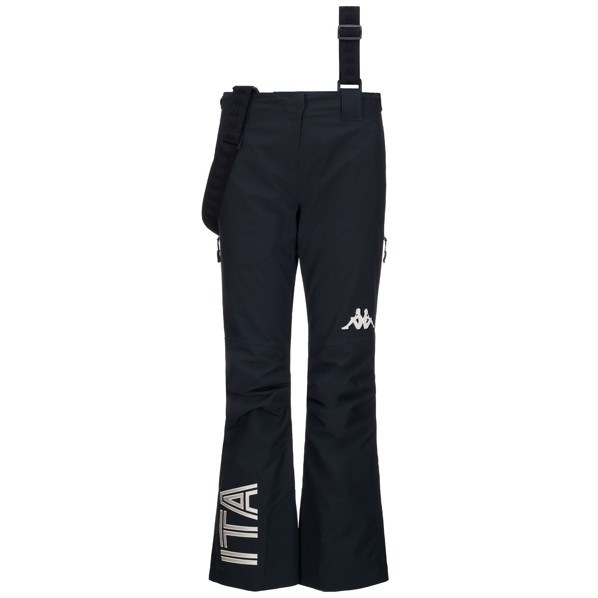 SPORT.Woman padded pant in mechanical stretch fabric with WATER PROTECTION. CLIMA PROTECTION. WATERPROOF PROTECTION 20.000 mm H2O. BREATHABILITY 20.000 gr/m2/24h. with water repellent treatment PFC-Free. padding Thermolite?? Micro 60gr.SLIM FIT.Detachable braces with Banda tape with logo Omini personalization. adjustable waist. pockets with waterproof zip clousure. bottom leg zip opening. bottom leg reinforced. boots gaiters. ventilation opening. heat sealed seams.Embroidered Omini logo and Italy personalizations.