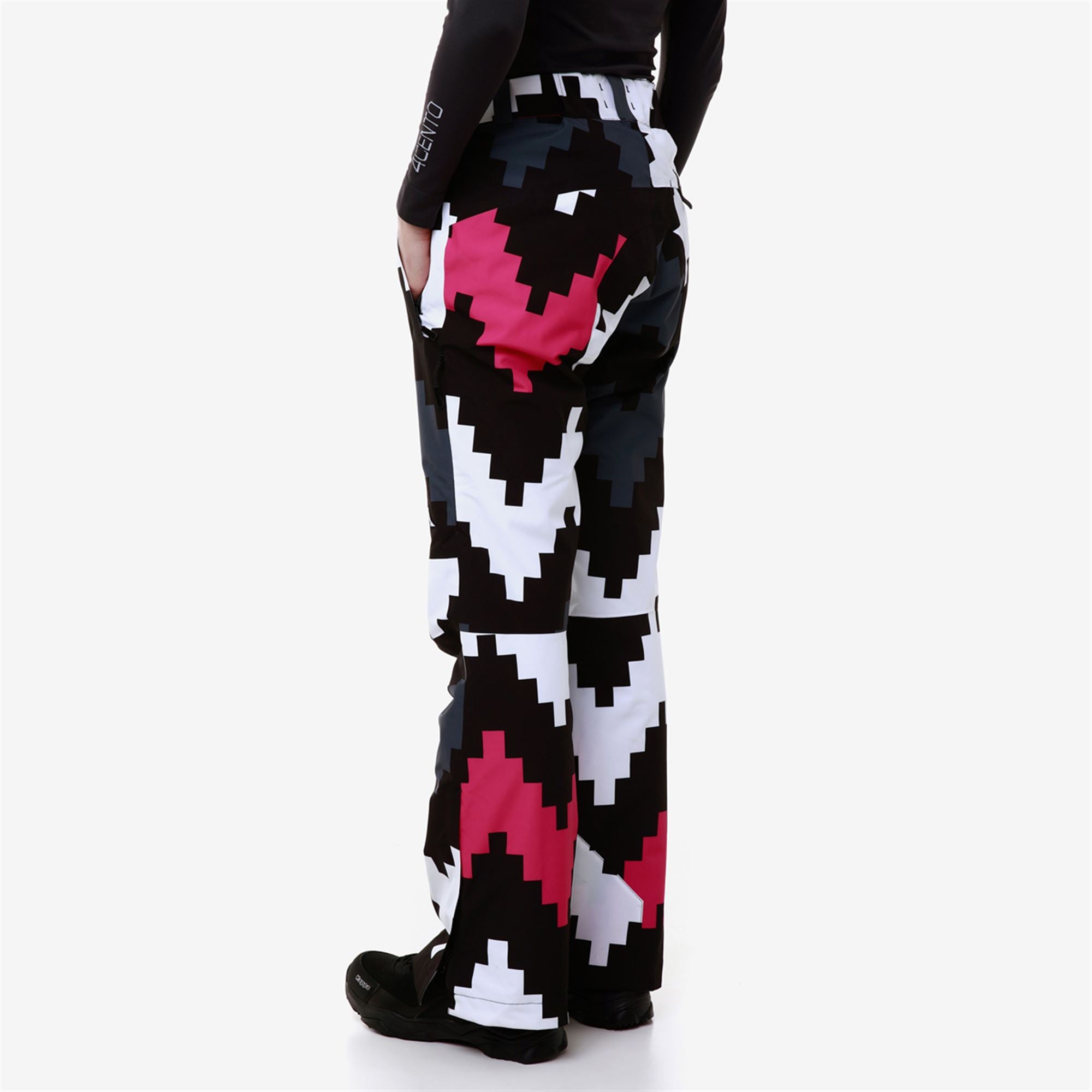 SPORT.Woman padded in mechanical stretch fabric with WATER PROTECTION. CLIMA PROTECTION. WATERPROOF PROTECTION 20000 mm. BREATHABILITY 20000gr/m2/24. padding Fellex?? 60gr.SLIM FIT.Detachable braces with Banda tape with logo Omini personalization. adjustable waist. pockets with waterproof zip clousure. bottom leg zip opening. bottom leg reinforced. boots gaiters. ventilation opening. heat sealed seams.Random all over graphic printed. Logo Omini embroidery.