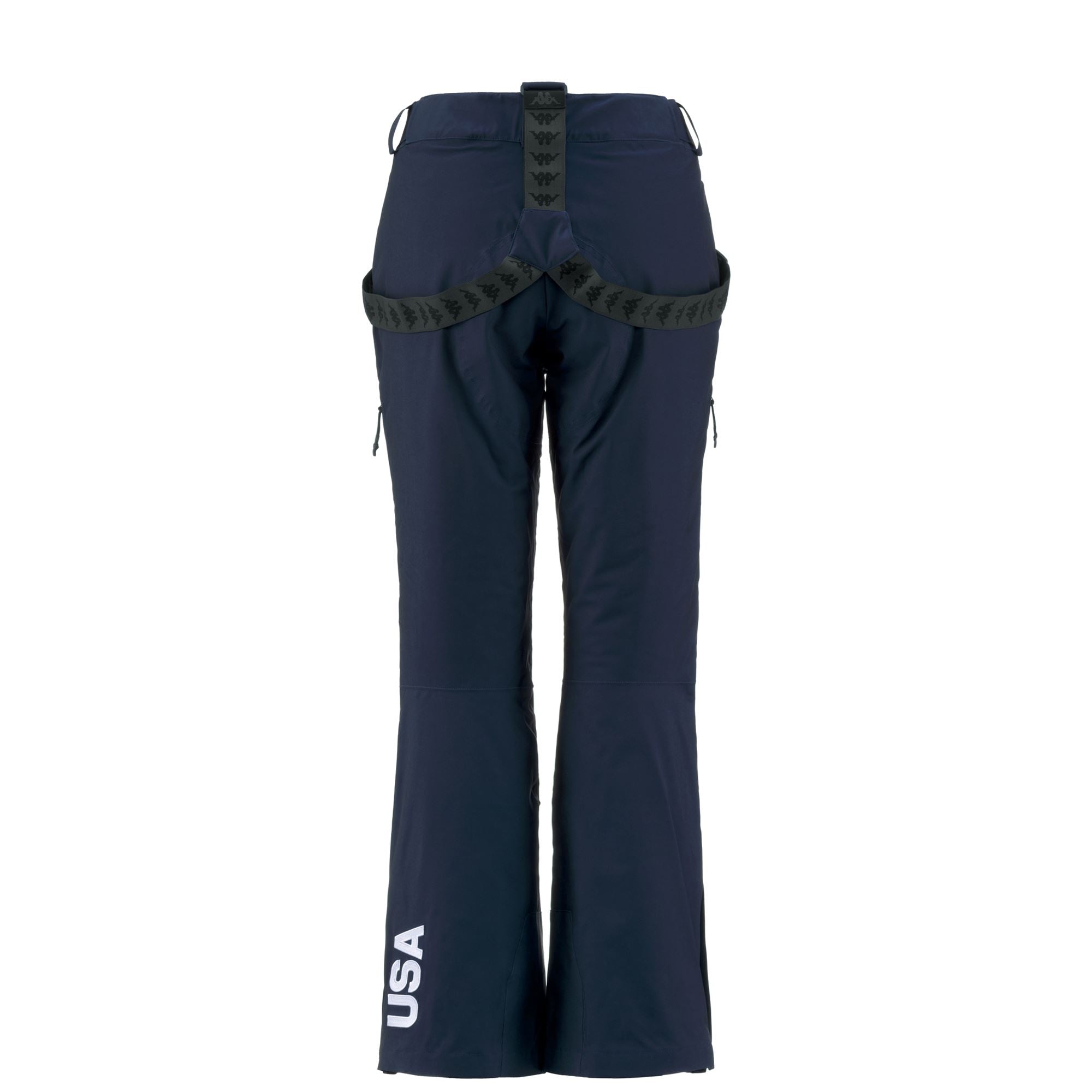 GARA.Woman padded in 2 layers stretch fabric with WATERPROOF PROTECTION 10000 mm H2O. BREATHABILITY 10000 g/m2/24h. with water repellent treatment PFC-Free. padding 60gr.SLIM FIT.Detachable braces with Banda tape with logo Omini personalization. adjustable waist. pockets with waterproof zip clousure. bottom leg zip opening. bottom leg reinforced. boots gaiters. ventilation opening. heat sealed seams.Logo Omini embroidered.US SKI & SNOWBOARD.