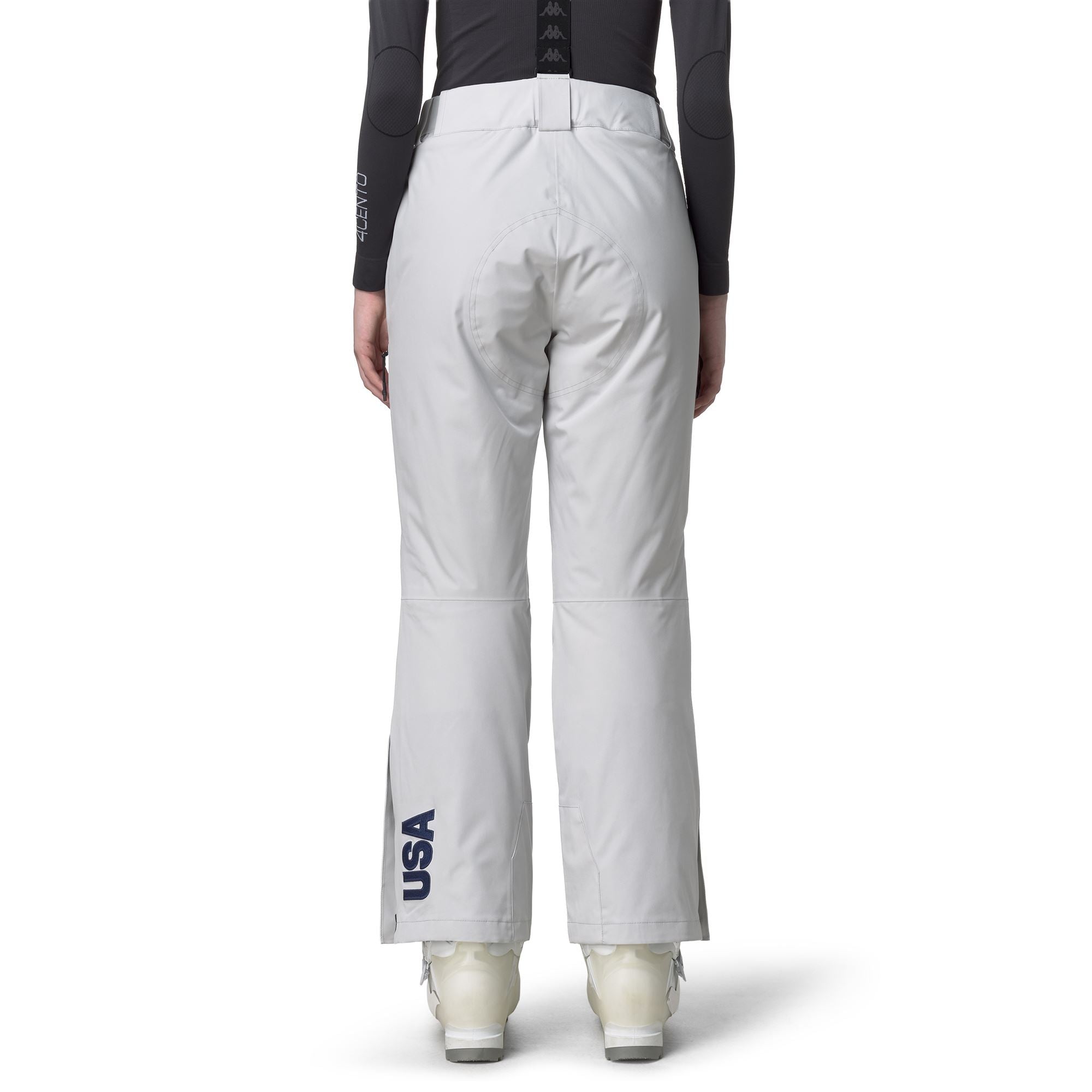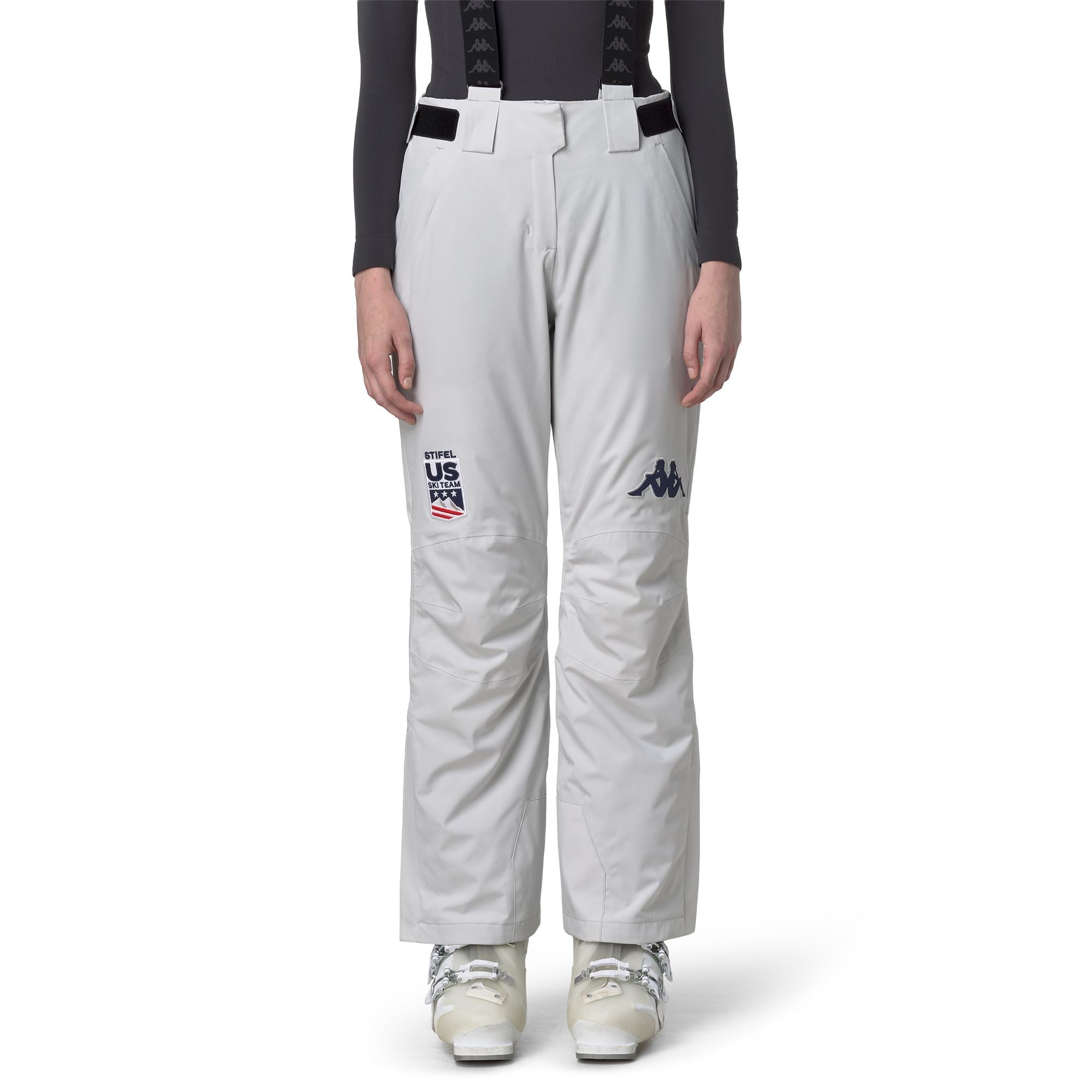 GARA.Woman padded in 2 layers stretch fabric with WATERPROOF PROTECTION 10000 mm H2O. BREATHABILITY 10000 g/m??/24h. with water repellent treatment PFC-Free. padding 60gr.SLIM FIT.Detachable braces with Banda tape with logo Omini personalization. adjustable waist. pockets with waterproof zip clousure. bottom leg zip opening. bottom leg reinforced. boots gaiters. ventilation opening. heat sealed seams.Logo Omini embroidered.US SKI & SNOWBOARD.