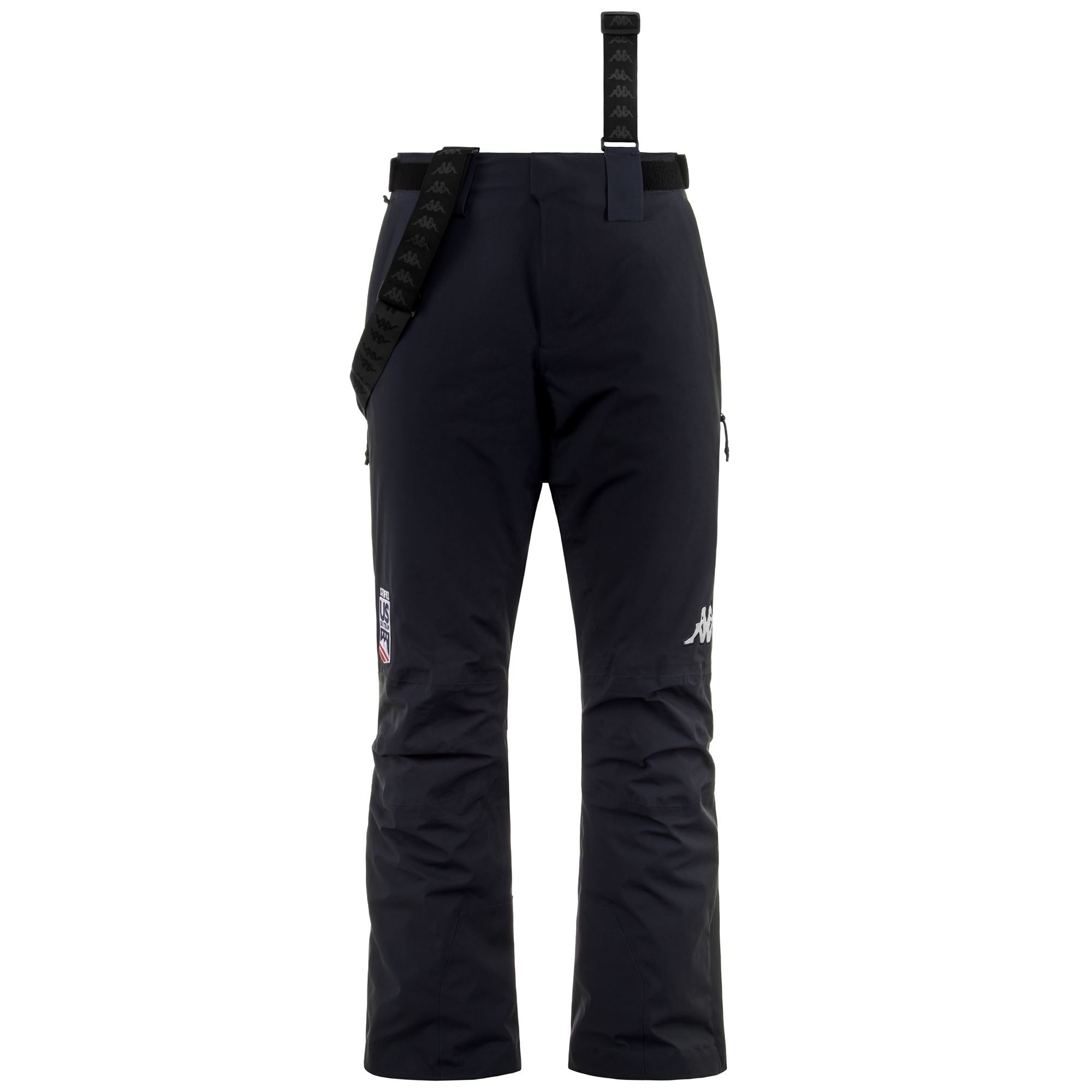 GARA.Man padded in 2 layers stretch fabric with WATERPROOF PROTECTION 10000 mm H2O. BREATHABILITY 10000 g/m2/24h. with water repellent treatment PFC-Free. padding 60gr.REGULAR FIT.Detachable braces with Banda tape with logo Omini personalization. adjustable waist. pockets with waterproof zip clousure. bottom leg zip opening. bottom leg reinforced. boots gaiters. ventilation opening. heat sealed seams.Logo Omini embroidered.US SKI & SNOWBOARD.