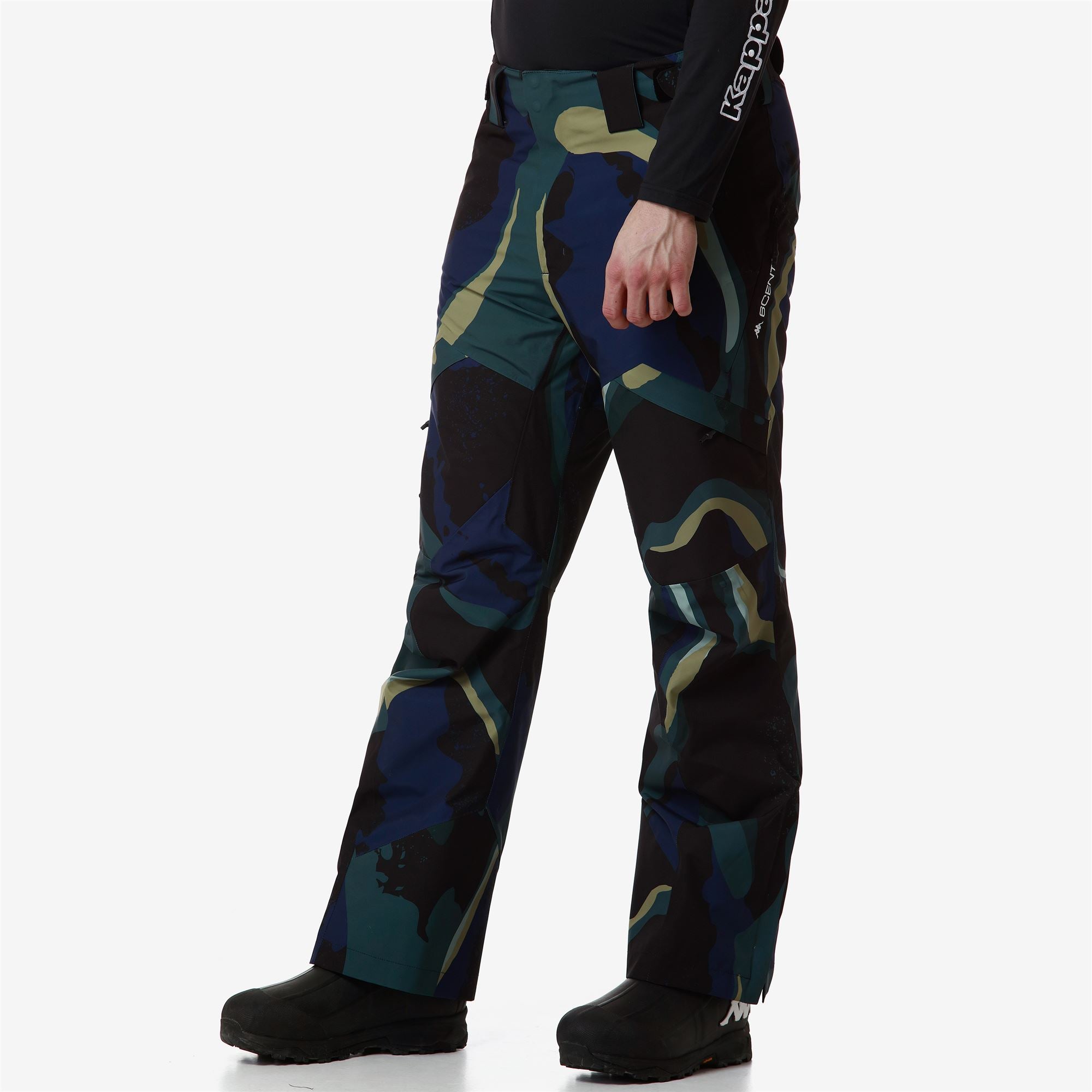 SPORT.Man padded pant in 2 layers stretch fabric with WATERPROOF PROTECTION 10000 mm H2O. BREATHABILITY 10000 g/m??/24h. with water repellent treatment PFC-Free. padding 60gr.REGULAR FIT.Detachable braces with Banda tape with logo Omini personalization. adjustable waist. pockets with waterproof zip clousure. bottom leg zip opening. bottom leg reinforced. boots gaiters. ventilation opening. heat sealed seams.All-over printed fabric.Logo 8CENTO applied. Logo Omini applied.