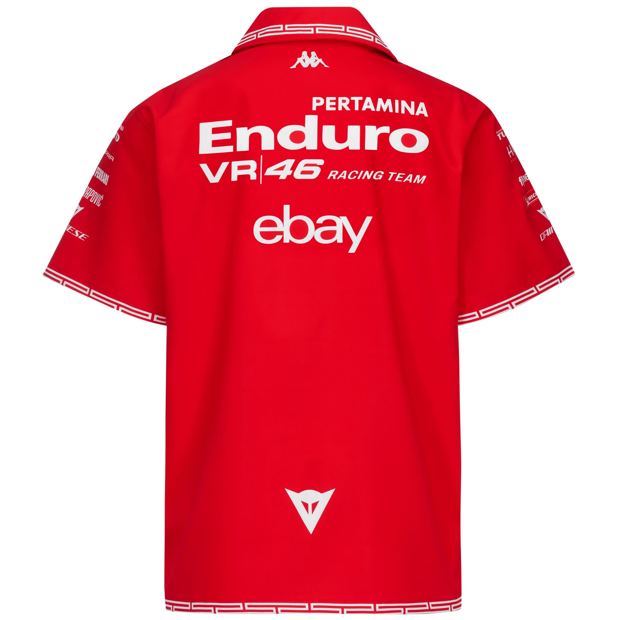 GARA.Shirt for man in polyester fabric.REGULAR FIT.Short sleeve. shirt collar. open with buttons and sublimated graphic. Omini logo on chest applied with heat transfe and Team logo in transfer.INDONESIA VR46.