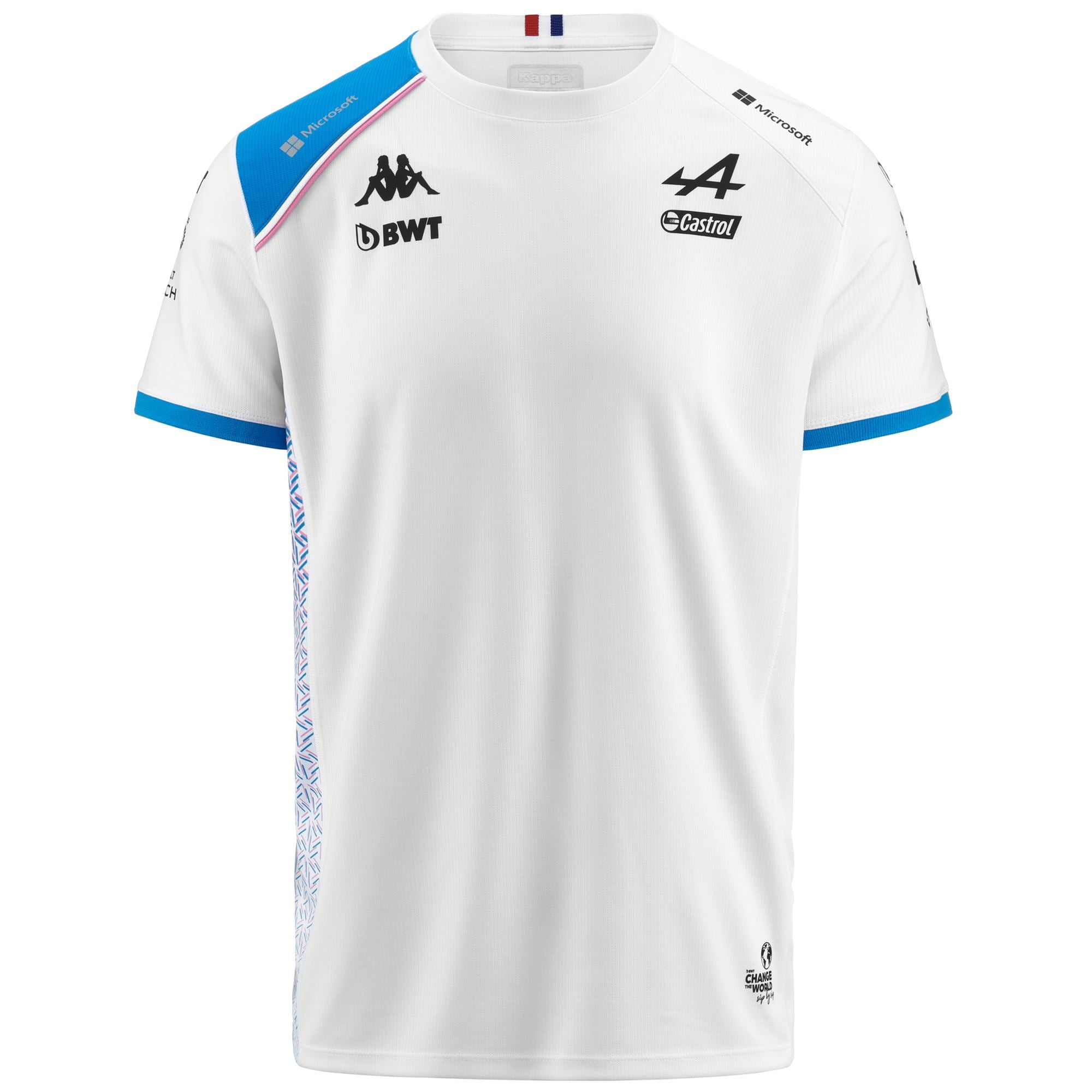 GARA.T-shirt for man in polyester fabric and with HYDRO-WAY PROTECTION technology.SLIM FIT.Short sleeve. roundcollar. inserts on shoulders and in contrast color on right shoulder. piping in contrast on right shoulder. right side with printed graphic.Omini logo. Team personalizations and sponsors applied with heat transfer.ALPINE F1 TEAM.