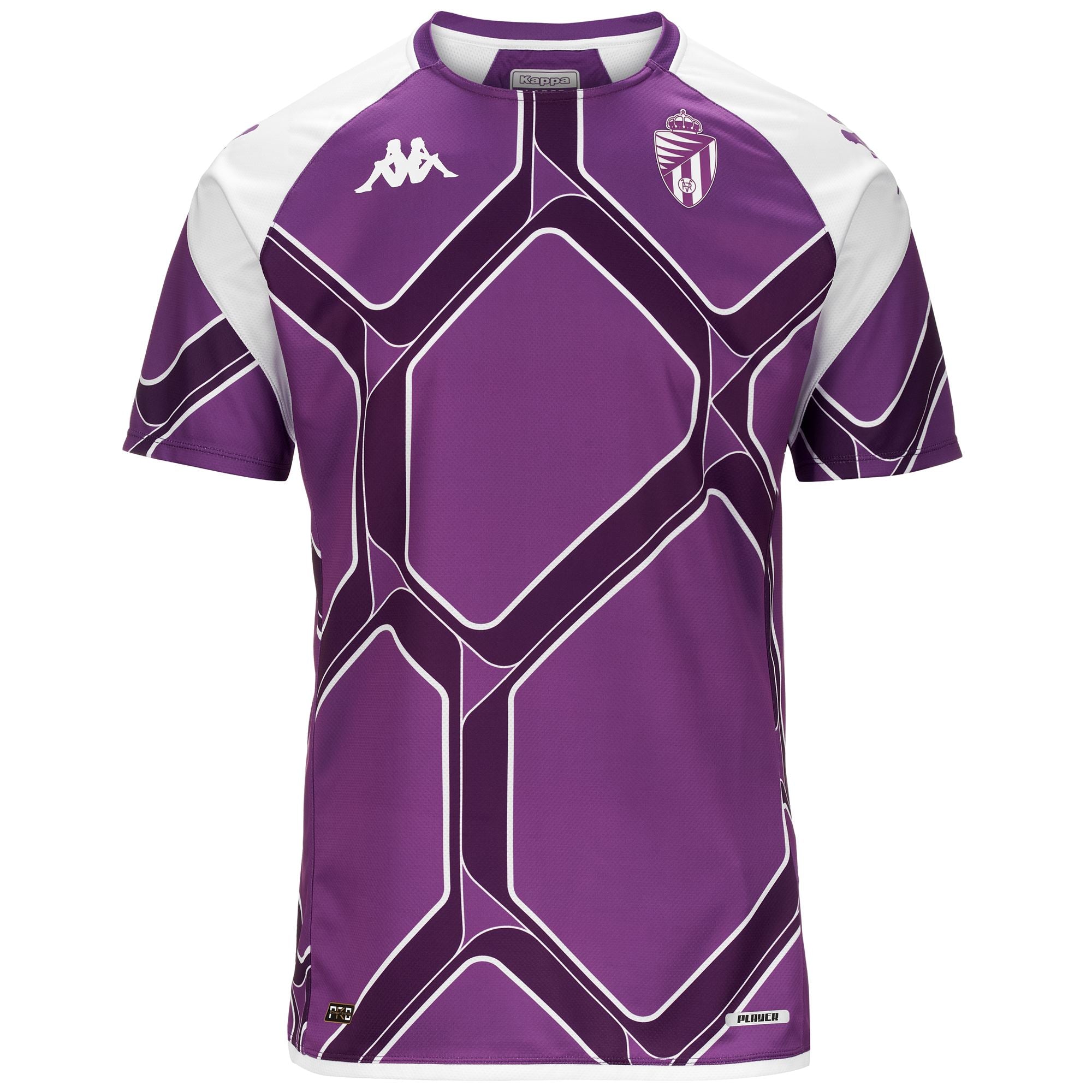 GARA.Pre-match shirt for man in recycled textured interlock fabric and with HYDRO-WAY PROTECTION technology.SLIM FIT.Short sleeve. round neck. inserts on sleeves and on bottom border and printed graphic on front. back and on sleeves.Omini logo on chest. on sleeves and on back printed.REAL VALLADOLID.