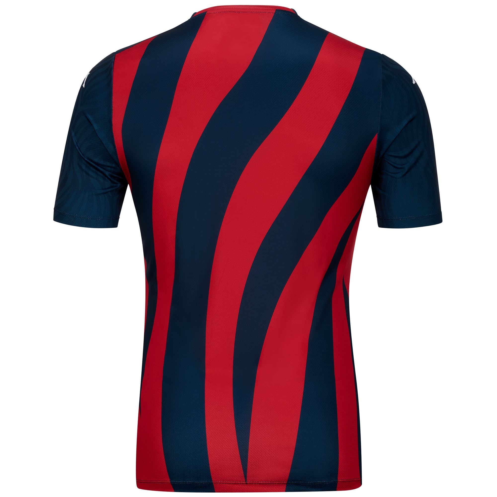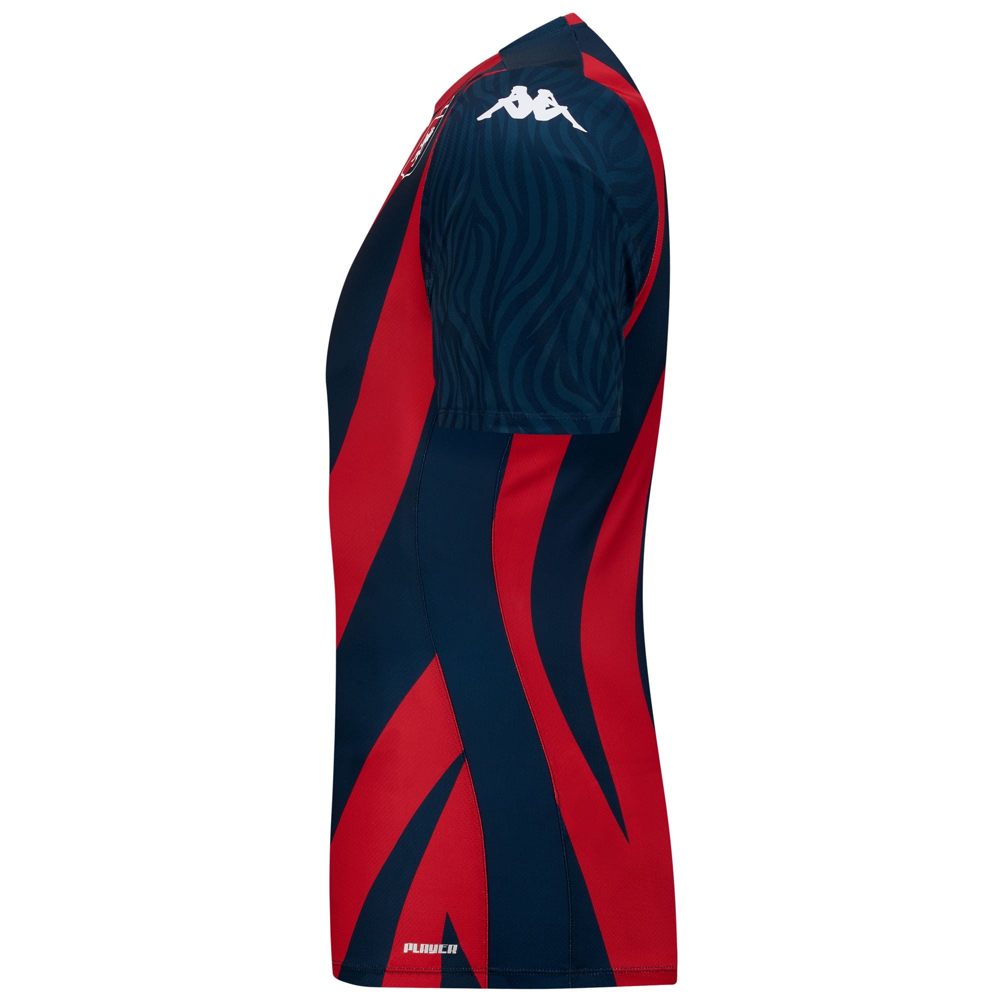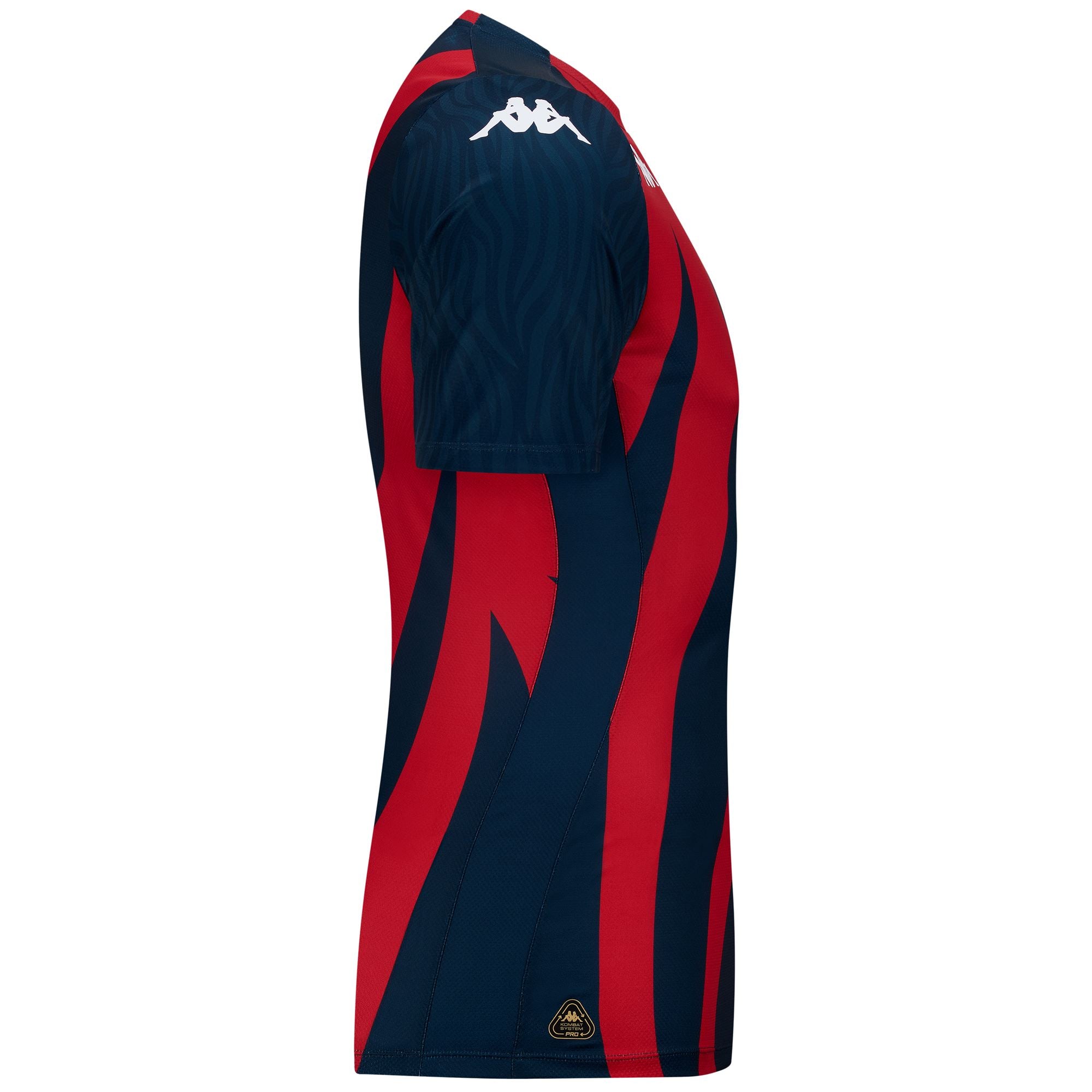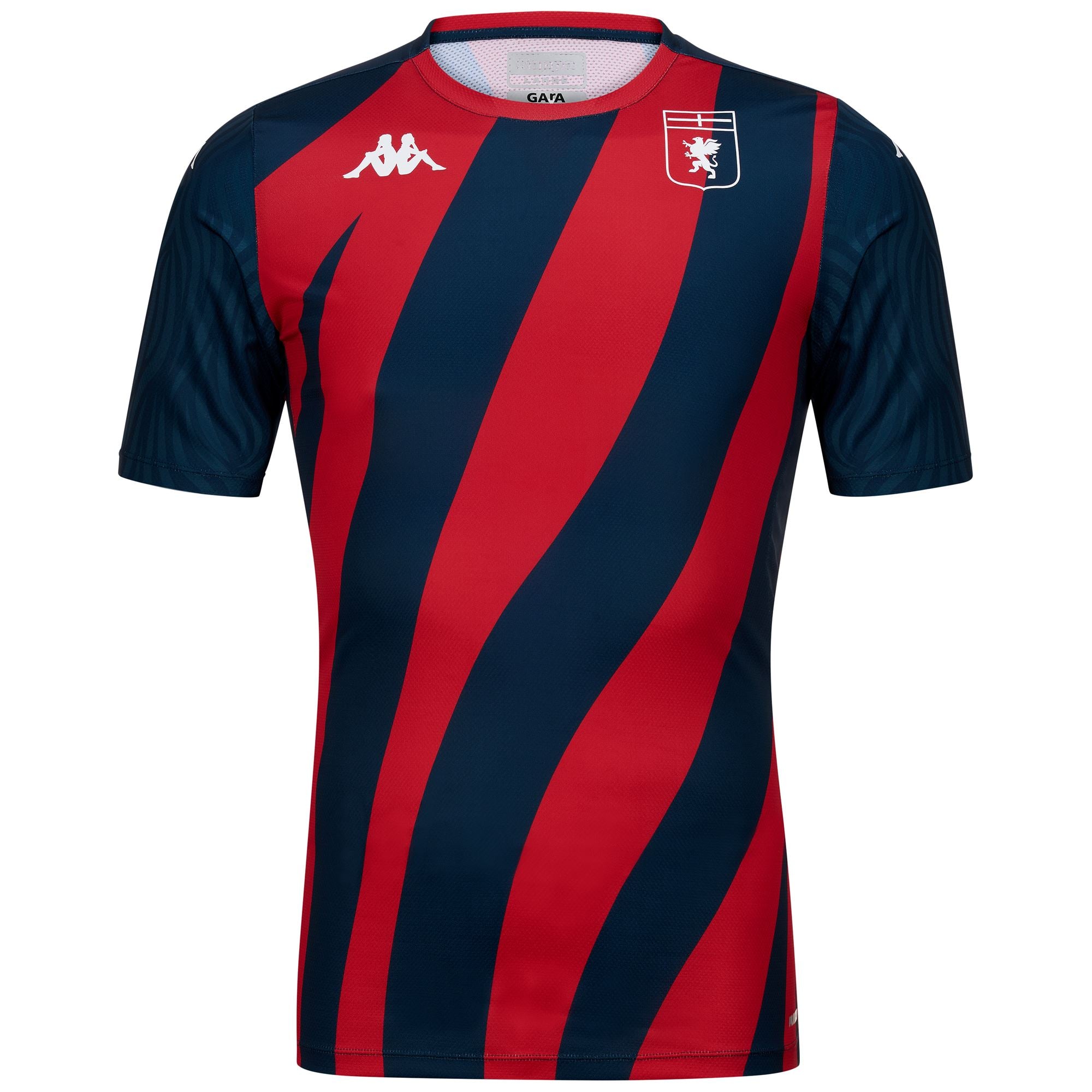 GARA.Pre-match shirt for man in recycled textured interlock fabric and with HYDRO-WAY PROTECTION technology.SLIM FIT.Short sleeve. round neck. inserts on shoulders and on sides. embossed graphic on sleeves. printed graphic on front and on back.Omini logo on chest and on sleeves and Team logo on front applied with heat transfer.GENOA CFC.