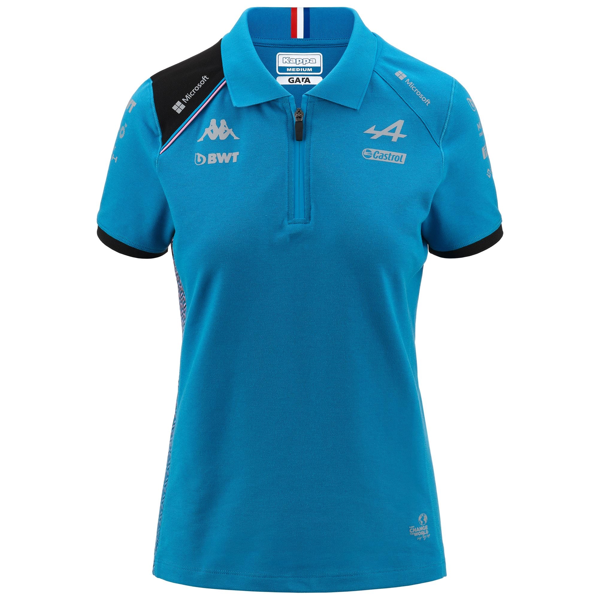 GARA.Polo for man in piqu?? fabric and with HYDRO-WAY PROTECTION technology.SLIM FIT.Short sleeve. polo collar with zip. inserts on shoulders and in contrast color on right shoulder. piping in contrast on right shoulder. right side with printed graphic.Omini logo. Team personalizations and sponsors applied with heat transfer.ALPINE F1 TEAM.