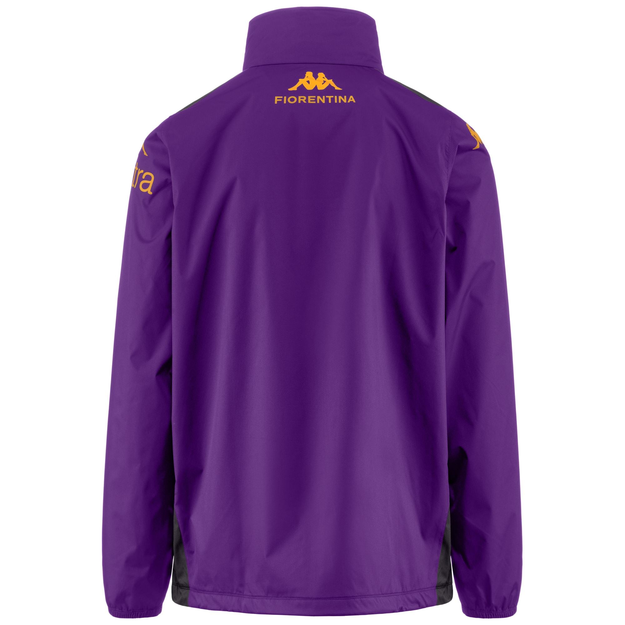 GARA.Training rain jacket for man in textured woven fabric and with WATER PROTECTION technology.REGULAR FIT.Inner lining in mesh. inner collar hood. front full zip opening. pockets with zip. elasticated cuffs. inserts on shoulders and on sides and elastic drawcord on bottom.Omini logo on chest. on sleeves and on back applied with heat transfer. Team logo high density printed.ACF FIORENTINA.