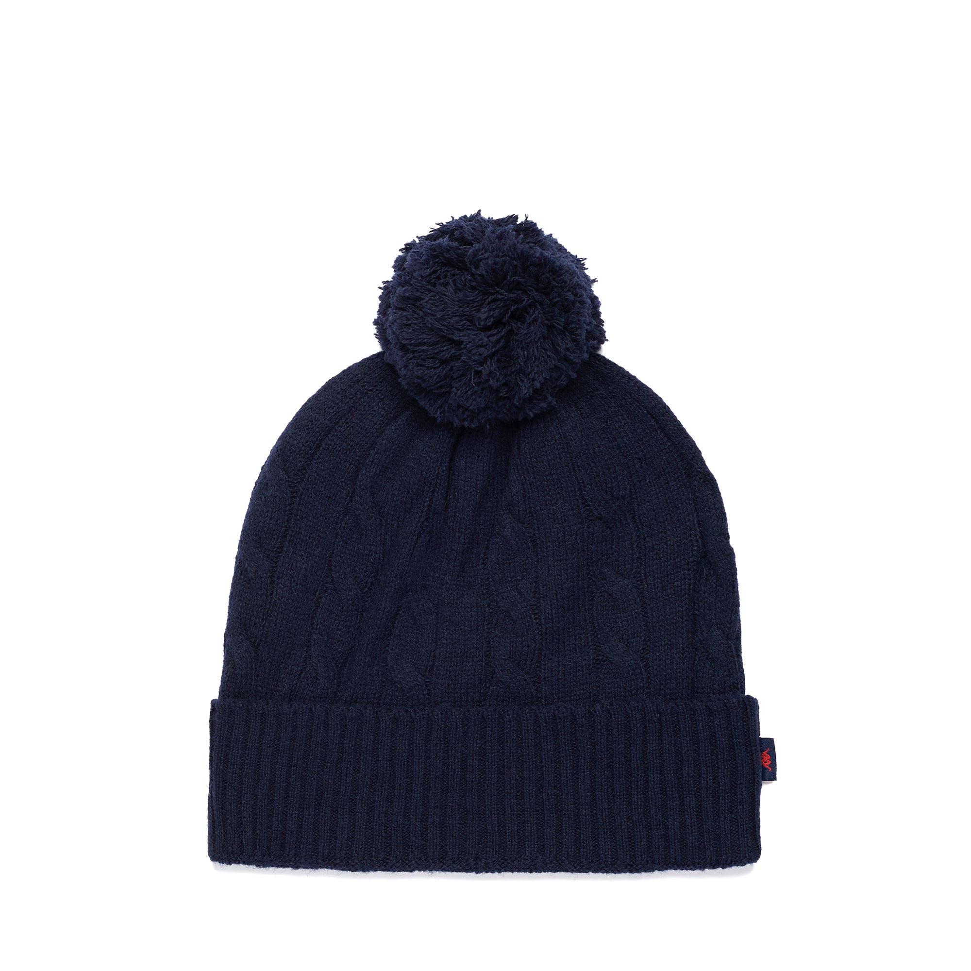 CLASSICO.Pon pon hat in lambswool.Cable knit.Flag logo.