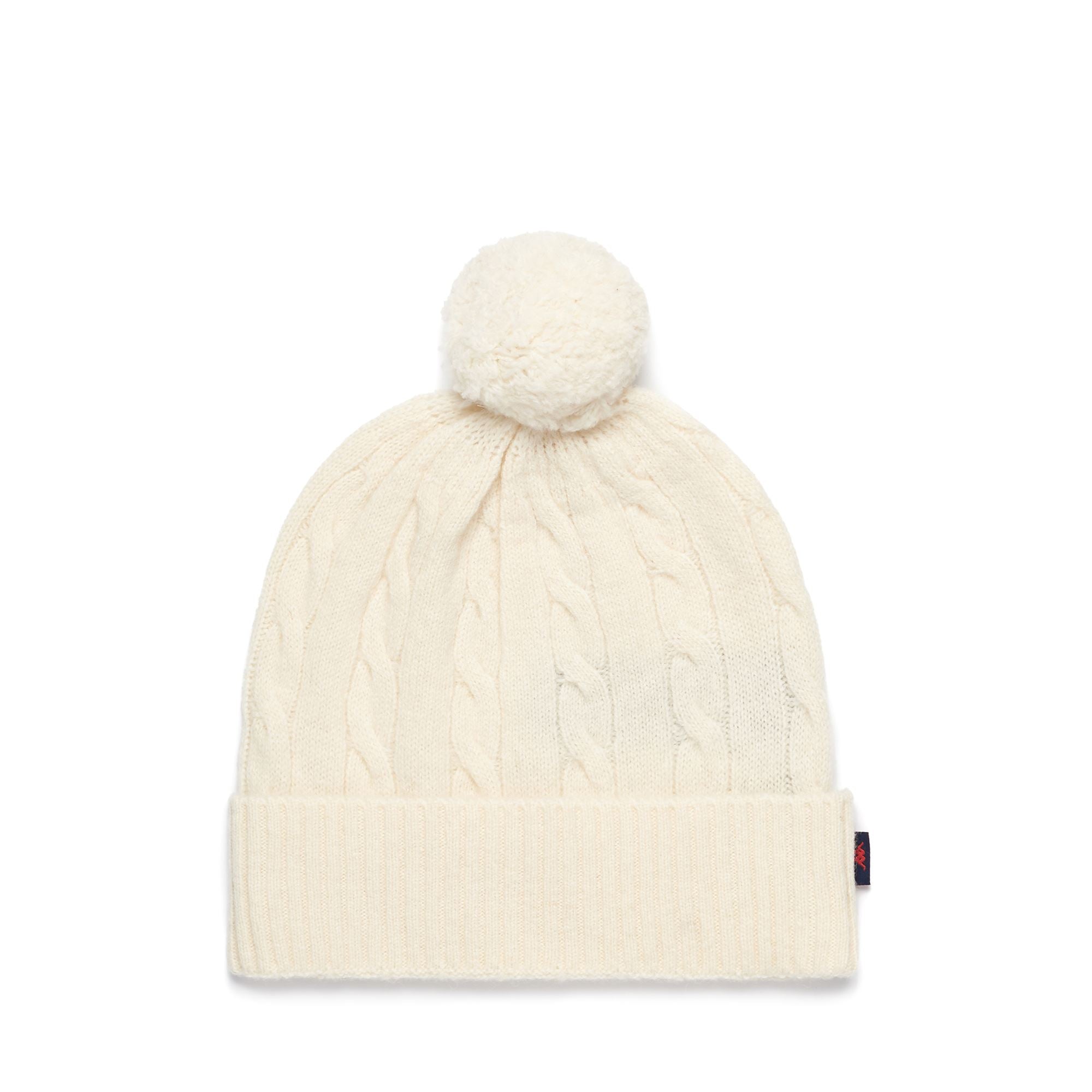 CLASSICO.Pon pon hat in lambswool.Cable knit.Flag logo.
