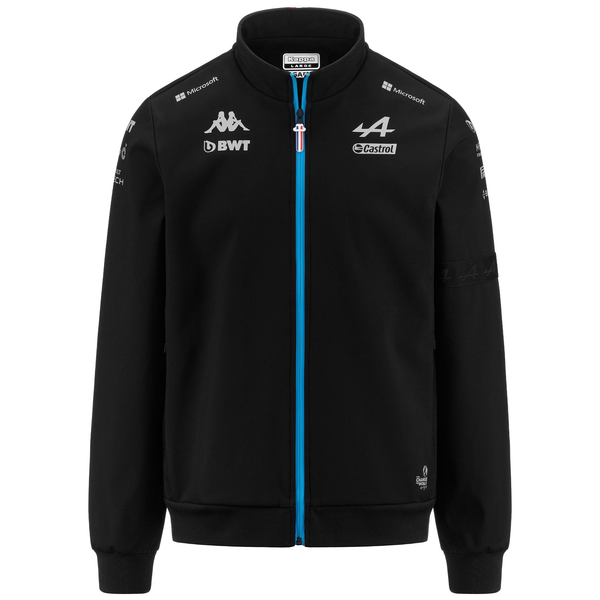 GARA.Softshell for man in bonded woven fabric with lining in polar fleece.SLIM FIT.Front full zip opening. side pockets with zip. rib on cuffs and bottom body.Omini logo. Team personalizations and sponsors applied with transfer.ALPINE F1 TEAM.