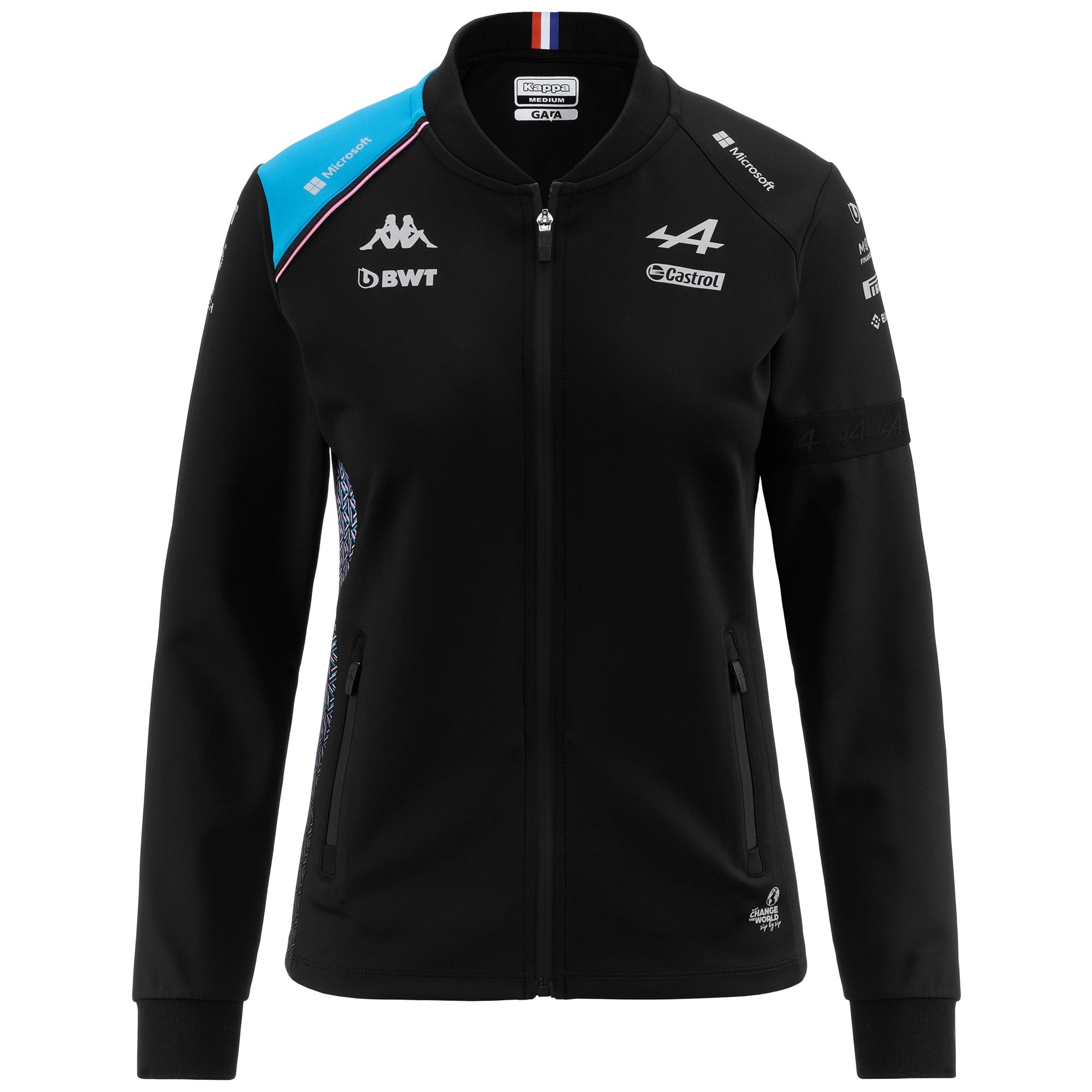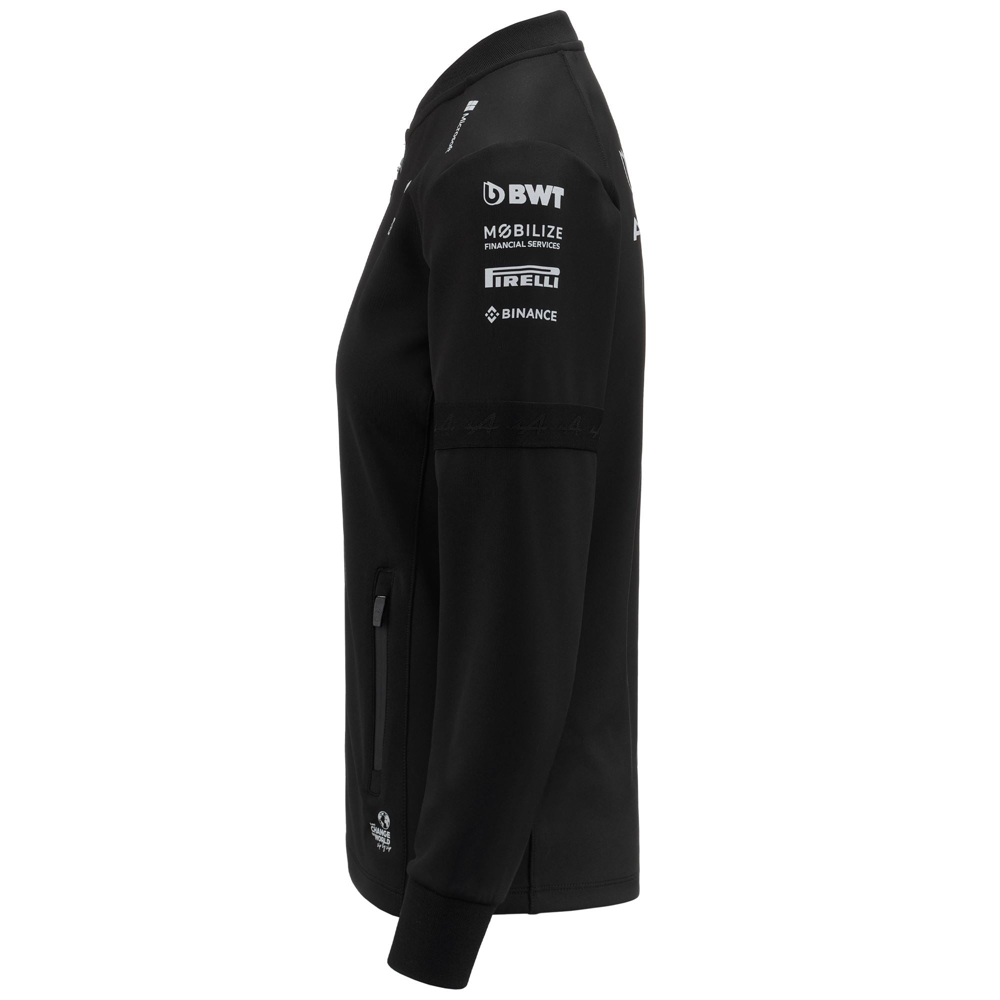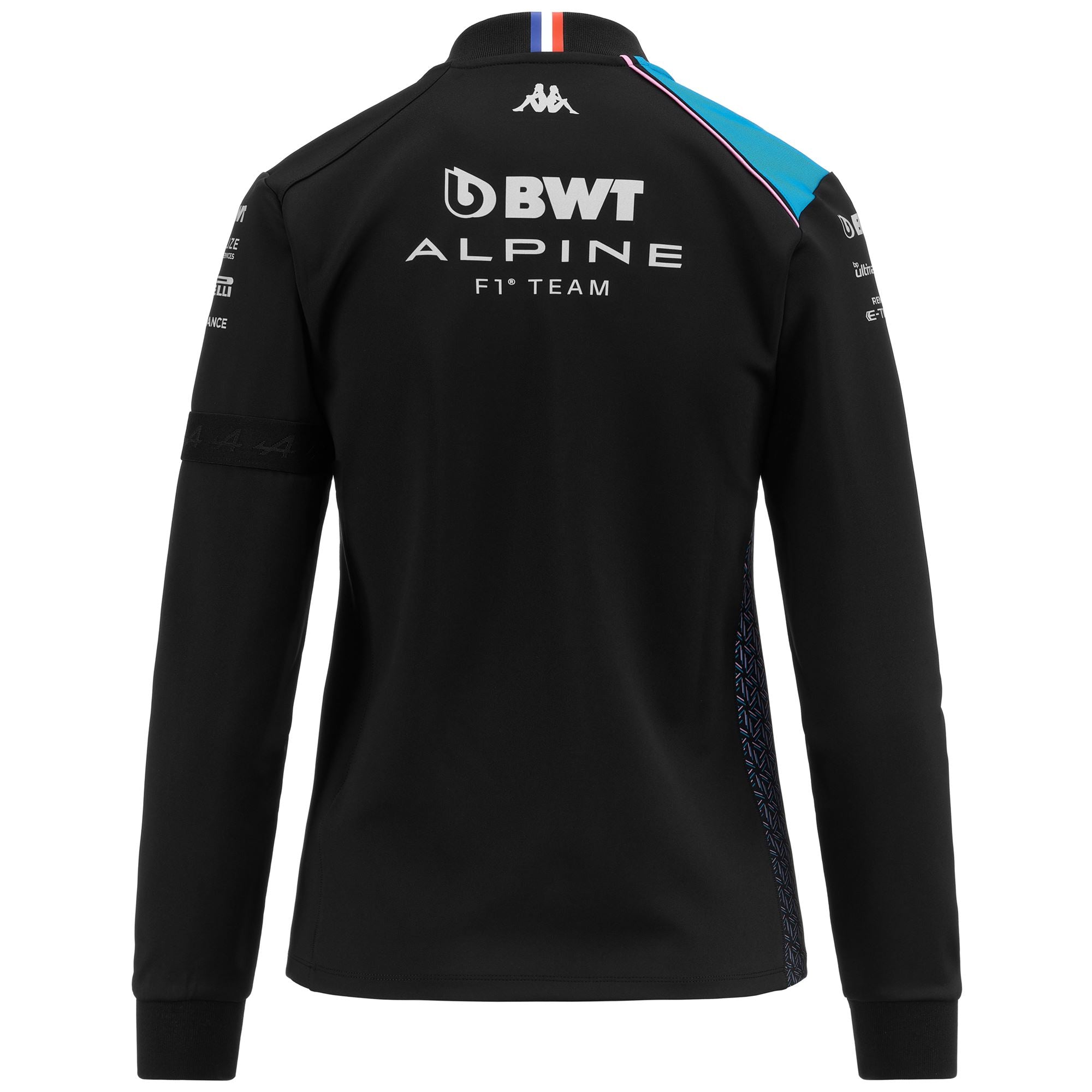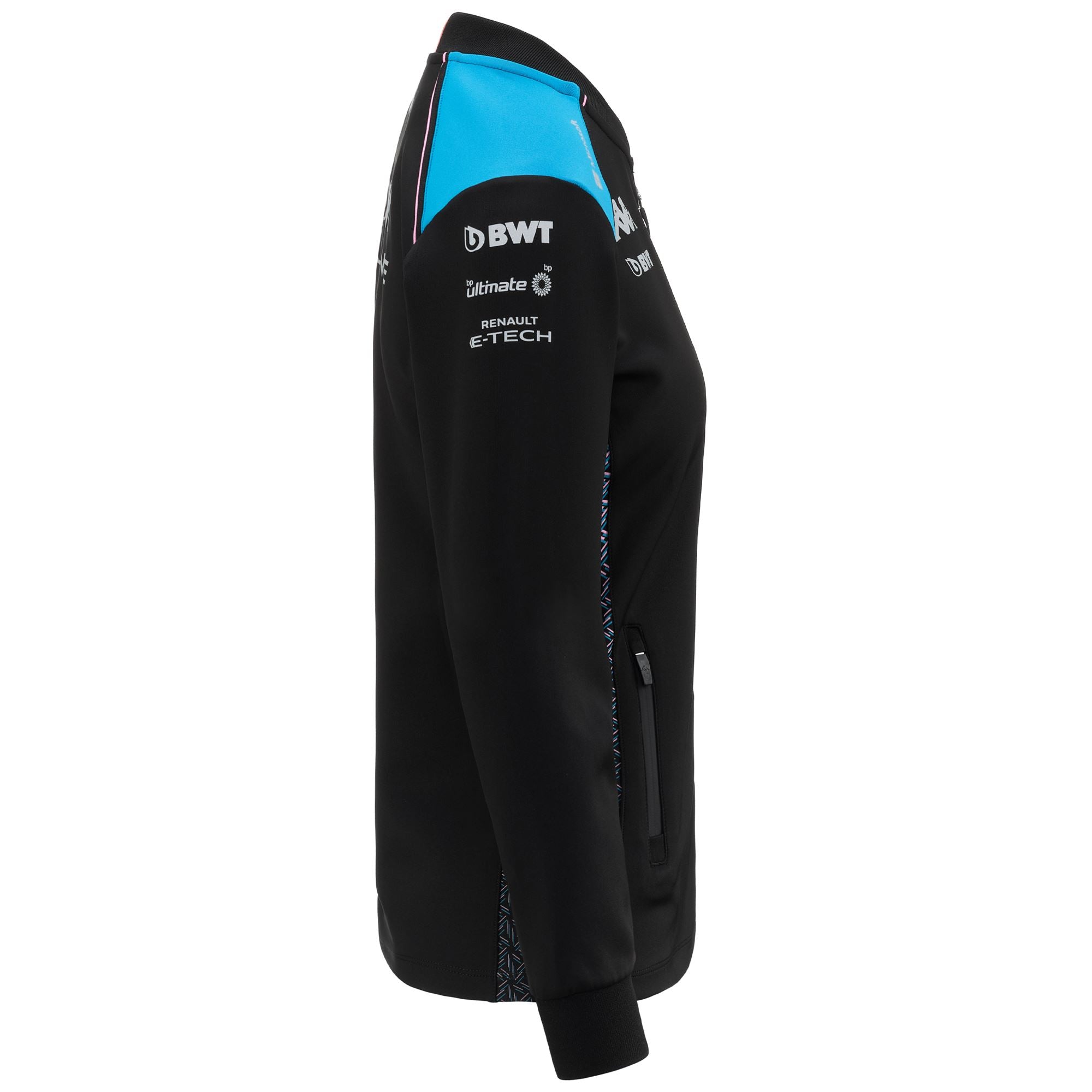 GARA.Sweat for woman in stretch interlock fabric.SLIM FIT.Front full zip opening. side pockets with zip. collar in rib. inserts on shoulders and in contrast color on right shoulder. piping in contrast on right shoulder. right side with printed graphic.Omini logo. Team personalizations and sponsors applied with heat transfer.ALPINE F1 TEAM.
