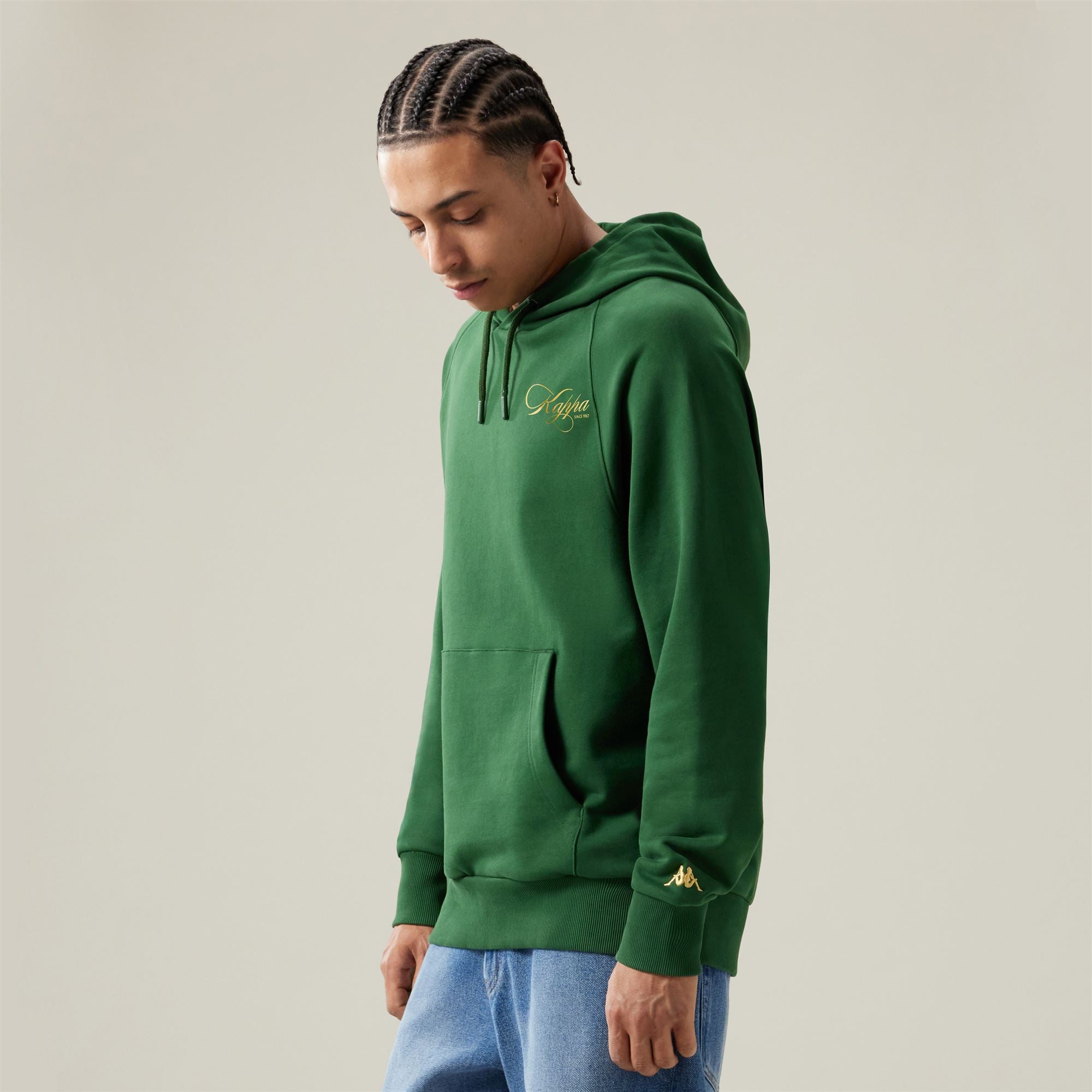 AUTHENTIC.Man hoodie in organic cotton french terry.OVERSIZE FIT.Raglan sleeves. ribbed cuffs and lower border. kangaroo pocket.Printed graphic. embroidered omini logo.