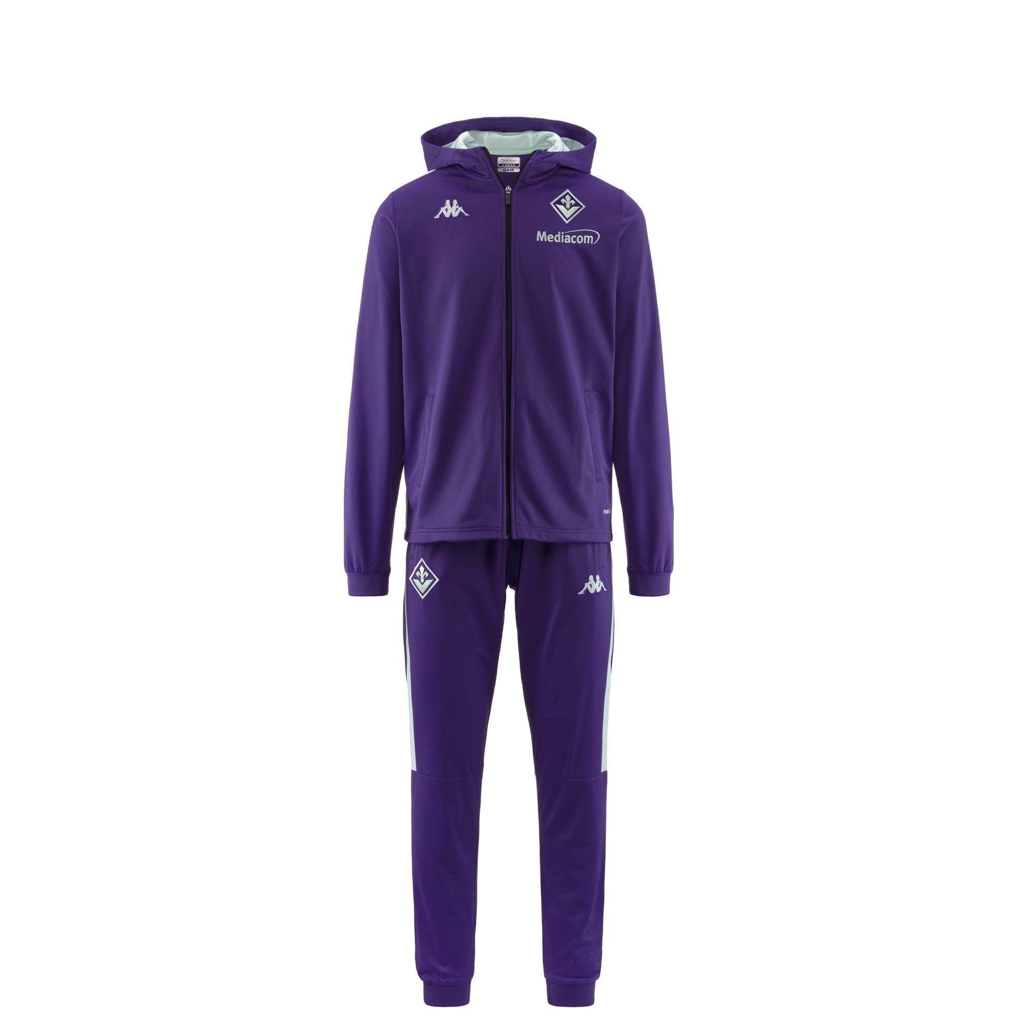 GARA.Tracksuit for man in recycled stretch heavy interlock fabric and with HYDRO-WAY PROTECTION technology.SLIM FIT.Hooded with front full zip opening. insert on shoulders and on sides; pant with waist elastic with inner drawcord. pockets with zip. insert on sides and bottom with elastic fabric.Omini logo on chest and on back embroidered. back lettering printed and Team logo patch in gabardine.ACF FIORENTINA.