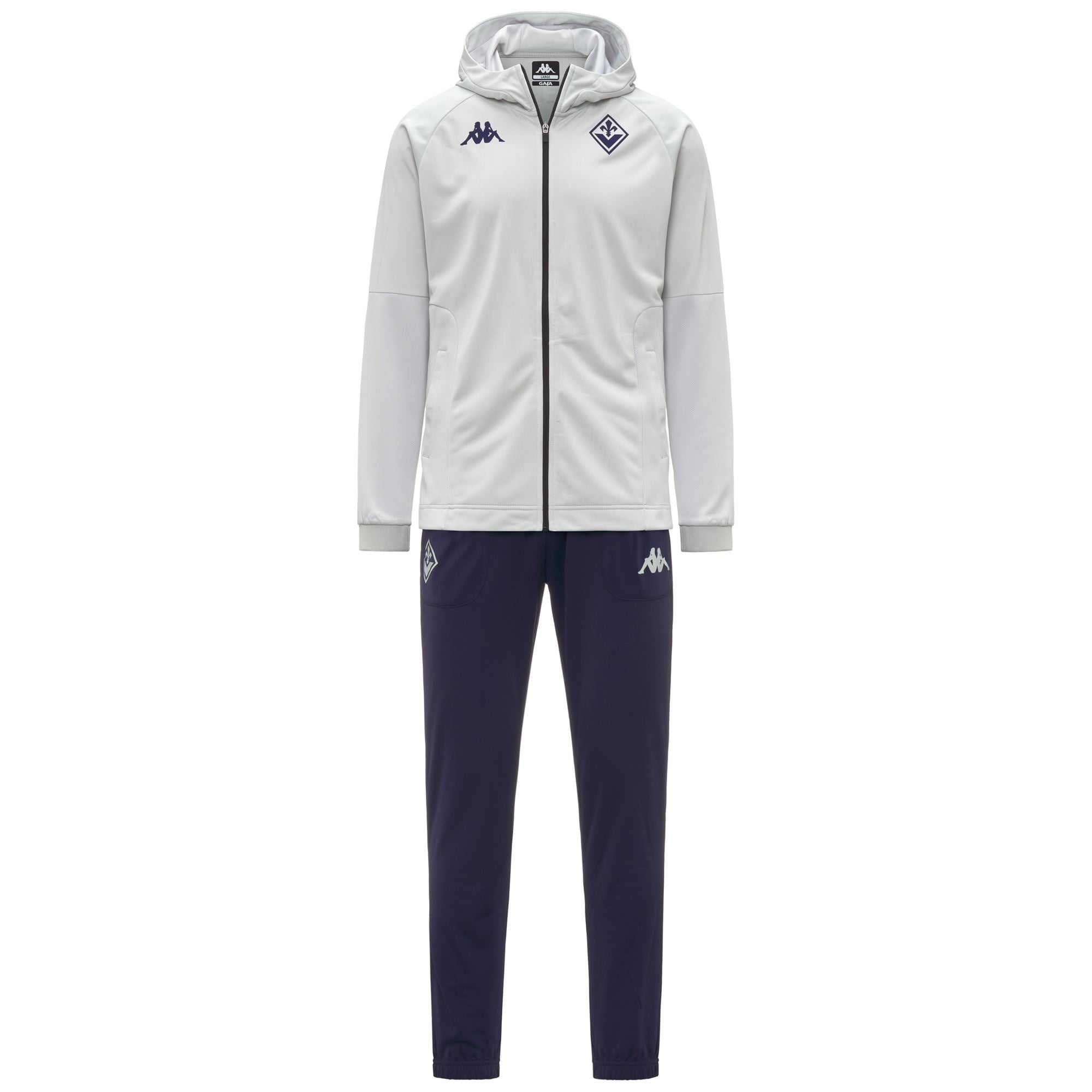 GARA.Tracksuit for man in recycled french terry fabric and with HYDRO-WAY PROTECTION technology.SLIM FIT.Hooded with front full zip opening and pockets without zip; pant with waist elastic with inner drawcord. pockets with zip and bottom with elastic fabric.Omini logo on chest. on sleeves and Team Patch applied with heat transfer. Lettering on back applied with heat transfer.ACF FIORENTINA.