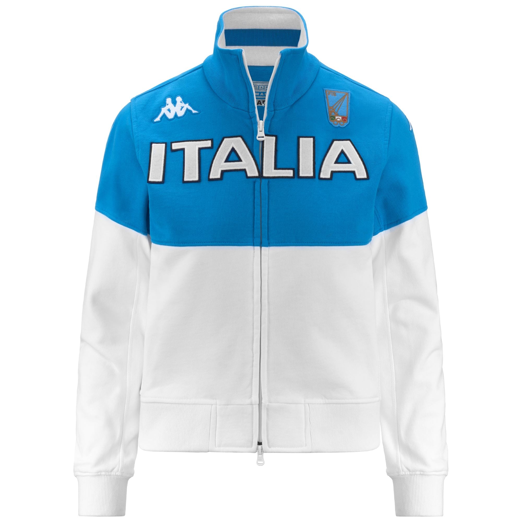 GARA.Brushed fleece for woman.SLIM FIT.Neck. bottom and cuffs in rib. full zip opening.Emby Omini logo on chest and on left sleeve . lettering ‘ITALIA’ in felt applied on front. Federation logo in felt applied on front. Stylized icon embroidered on right sleeve.FEDERAZIONE ITALIANA SCHERMA.