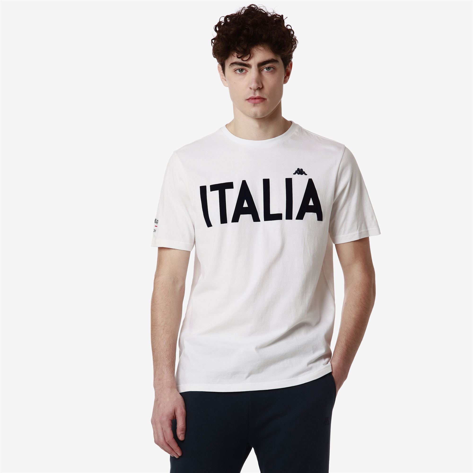 COLLEZIONE.T-shirt in cotton jersey. SLIM FIT.Short sleeve. flocked lettering on chest.Omini logo in contrast color or matching color applied on chest.