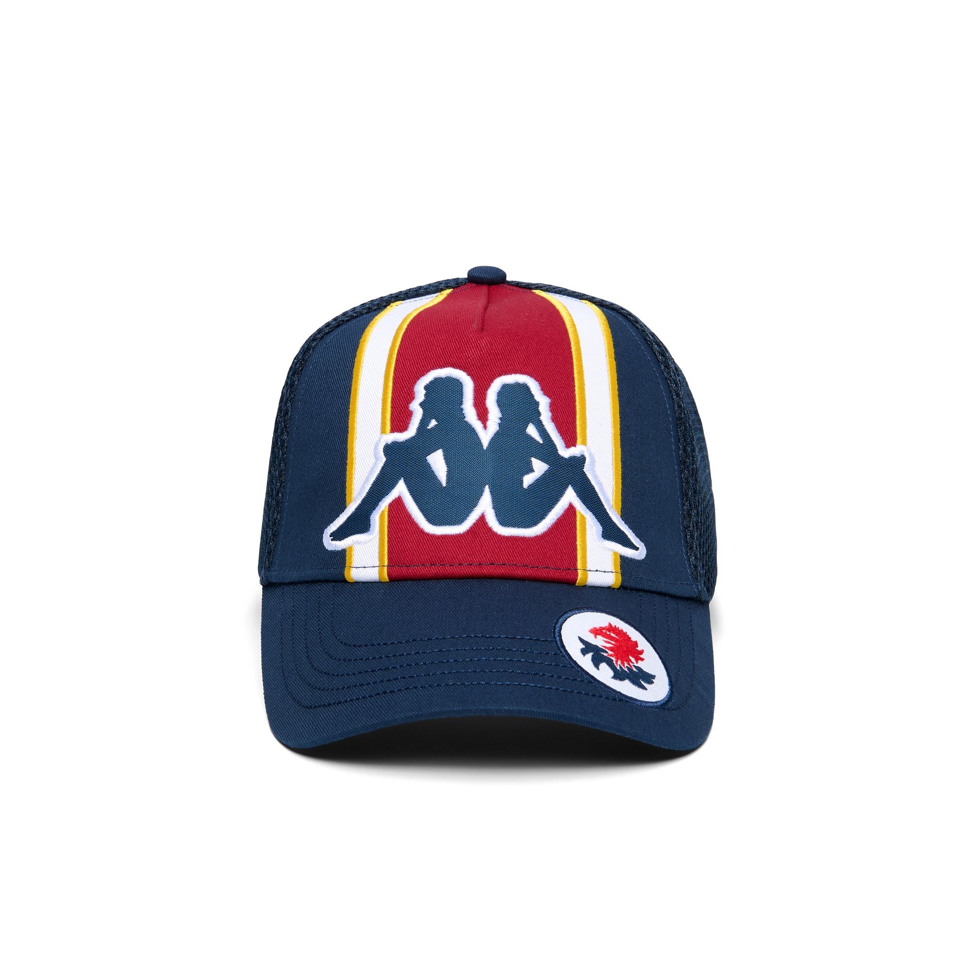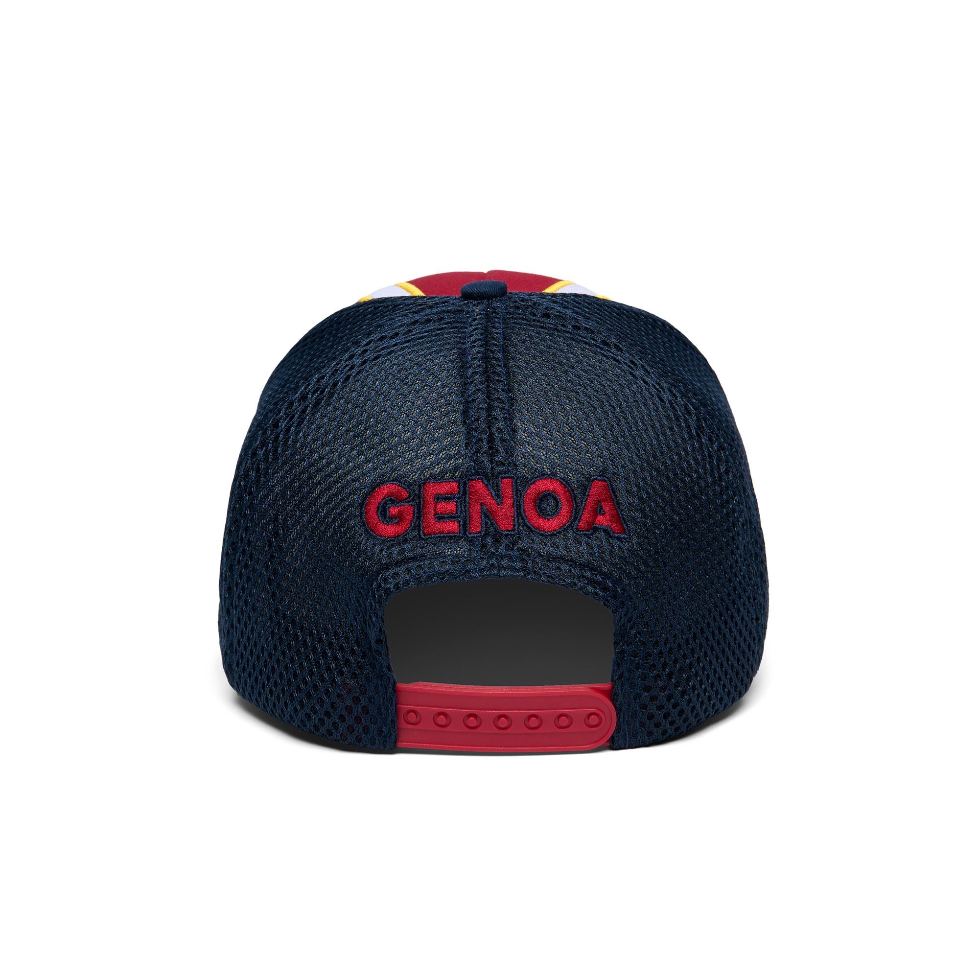 GARA.Cap man in twill and mesh fabric.Baseball visor. back adjustable plastic closure.Gabardine Omini logo embroidered on front. Team logo embroidered on visor and Team lettering embroidered on back.GENOA CFC.