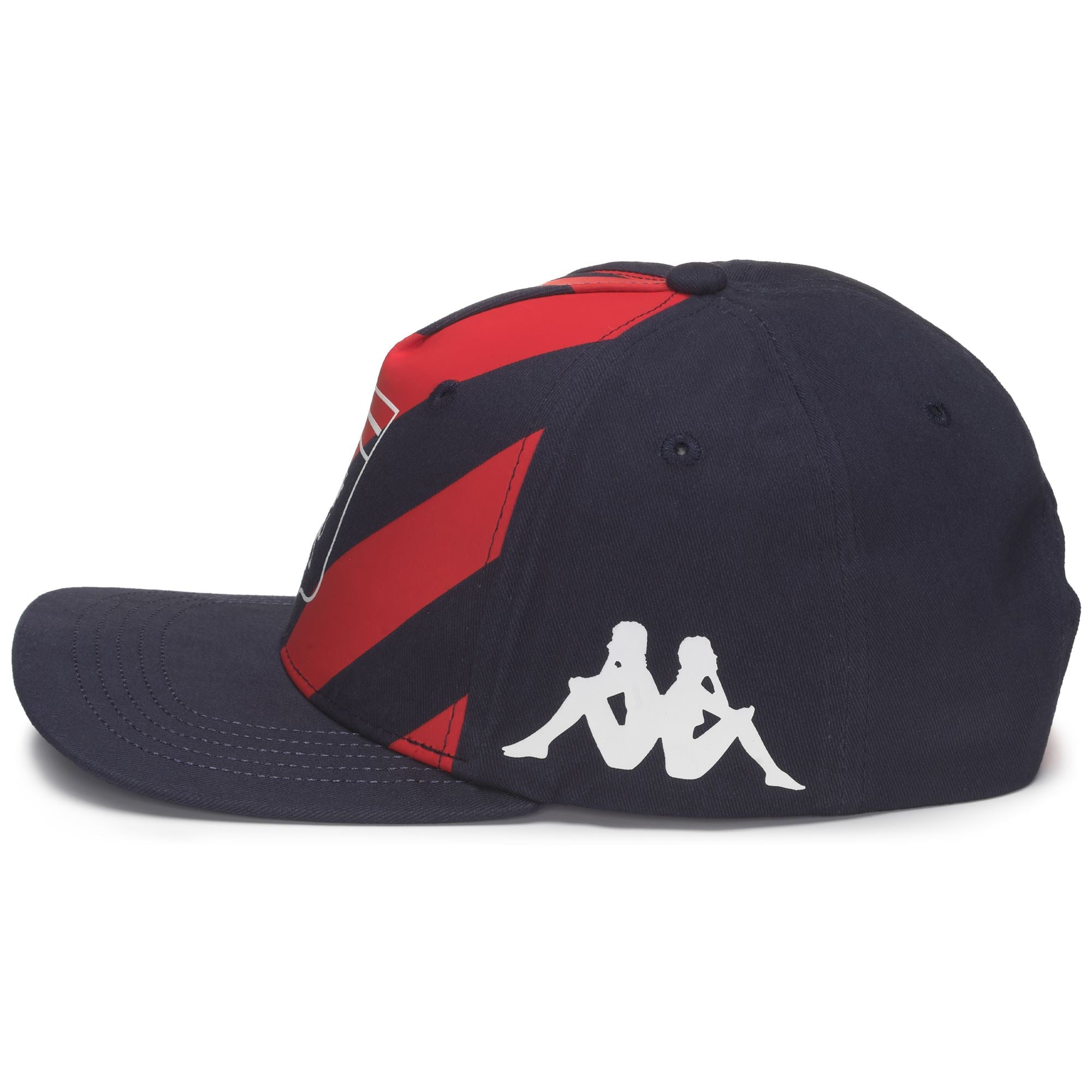 GARA.Cap with flat visor in brushed twill fabric.Back plastic snap closure.Embroidered Omini logo and jacquard Team logo on sides and Team logo in 3D embroidery on front .GENOA FC.