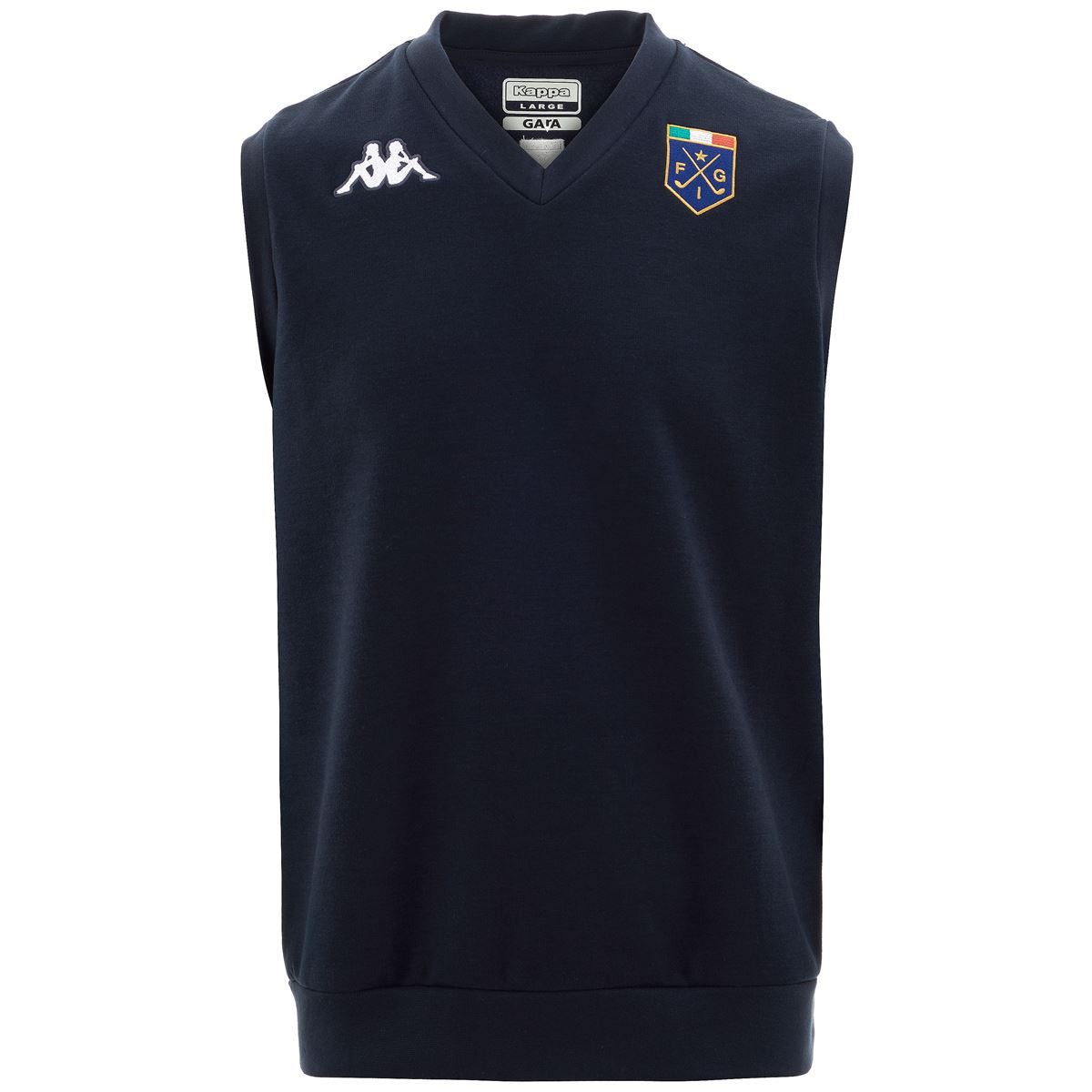 GARA.Man gilet sports jumper in technical fabric.BREATHEABILITY PROTECTION. CLIMA PROTECTION. BACTERIAL PROTECTION & HYDROWAY PROTECTION.REGULAR FIT. V neck and ribbed borders.Omini logo in gabardine embroidered on chest and FIG logo embroidery on back. Team logo patch embroidery on chest.FEDERAZIONE ITALIANA GOLF.