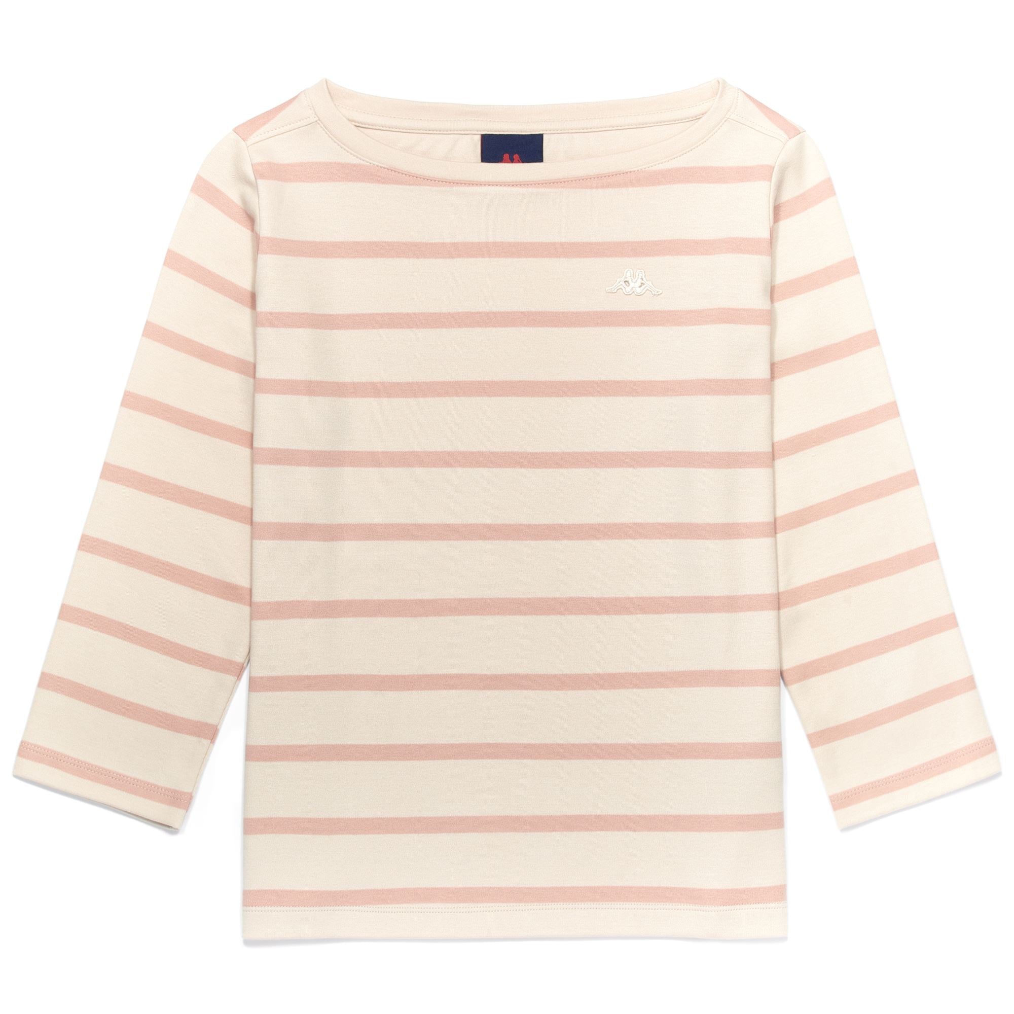 CLASSICO.Woman t-shirt in y/dyed striped cotton interlock.REGULAR FIT.Boat neck. 3/4 length sleeve.Omini logo on chest.