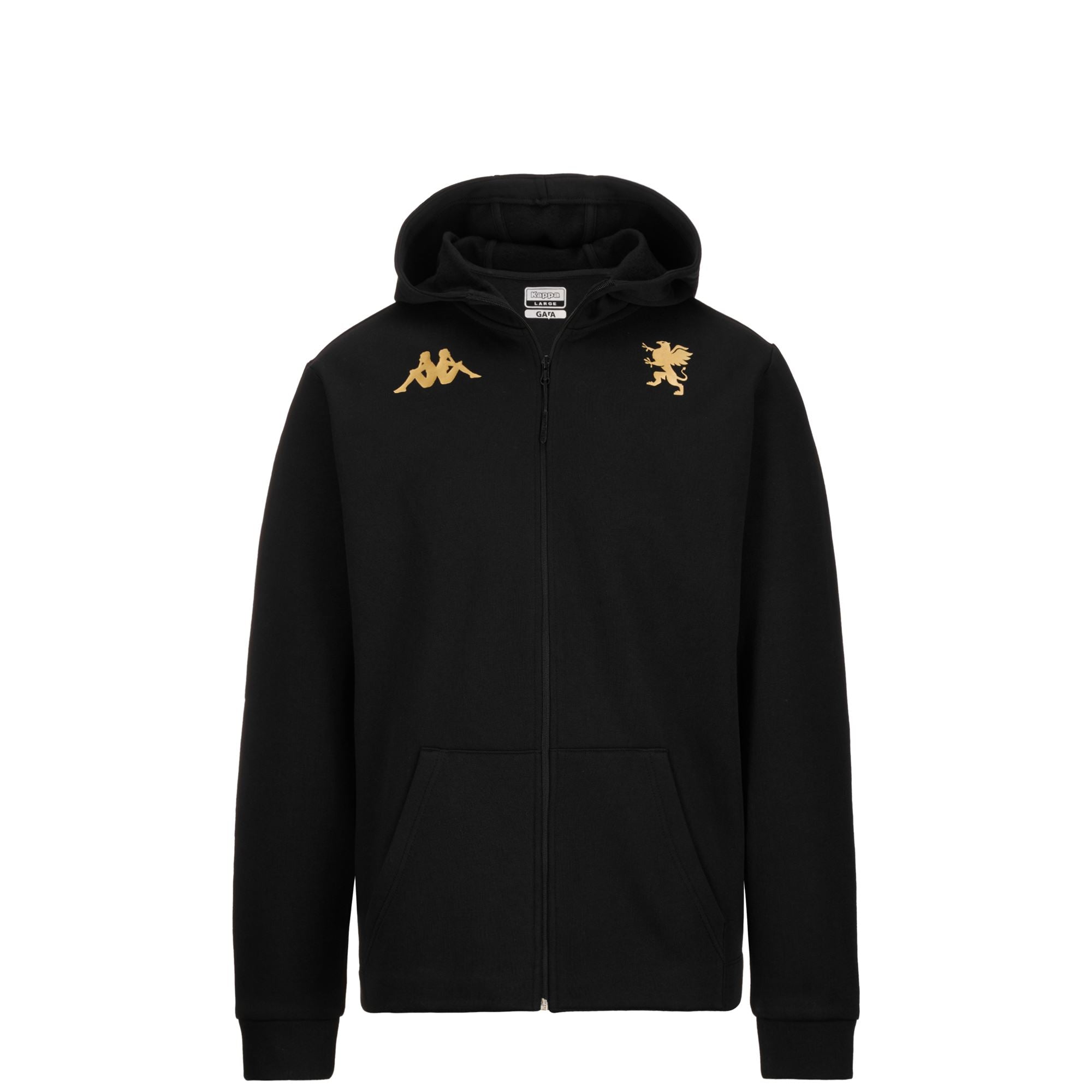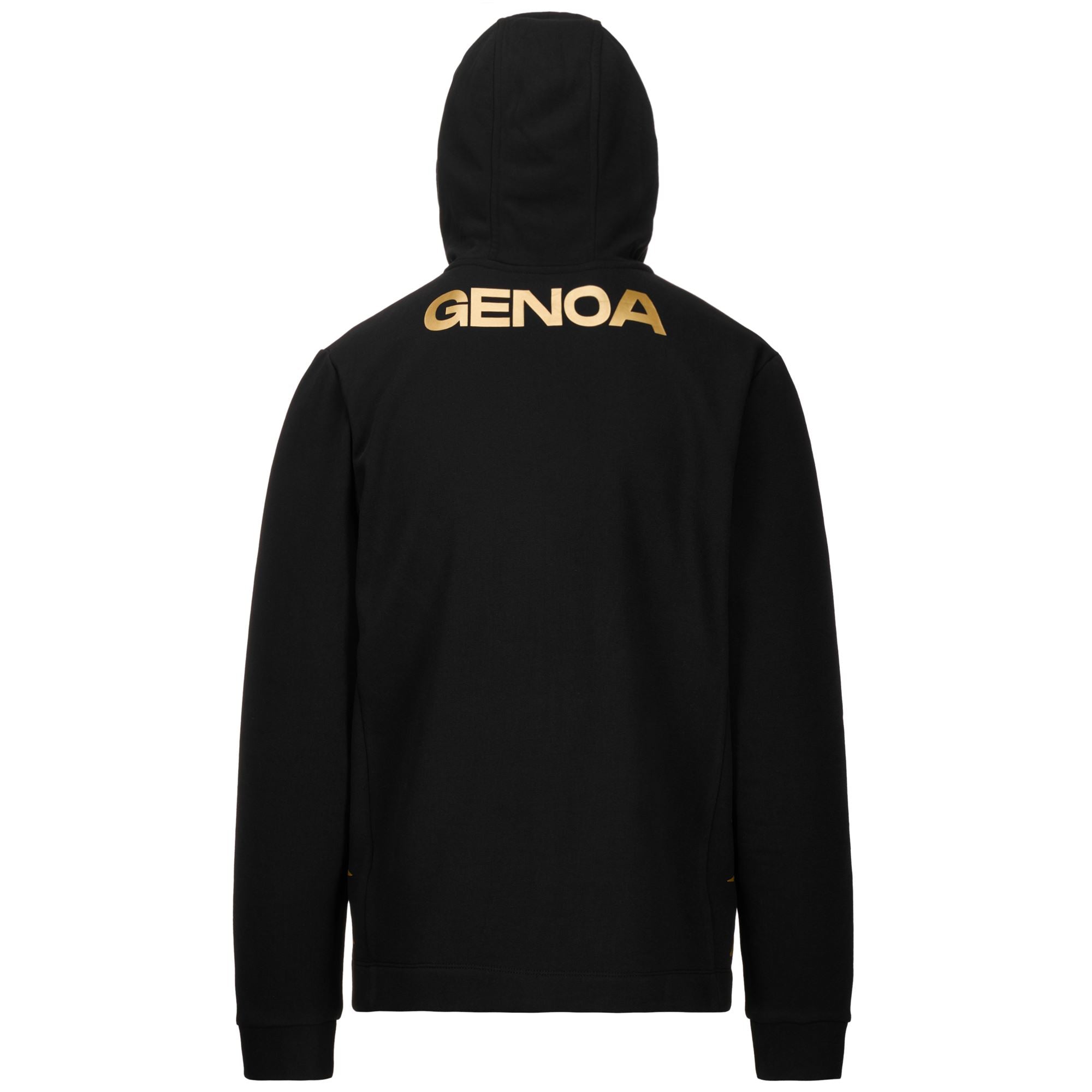 GARA.Sweat for man in brushed fleece fabric.SLIM FIT.Hooded. full zip opening. pockets on front.Omini logo and Team logo on front and Omini banda on sides printed. gabardine lettering on back applied with emby. GENOA FC.