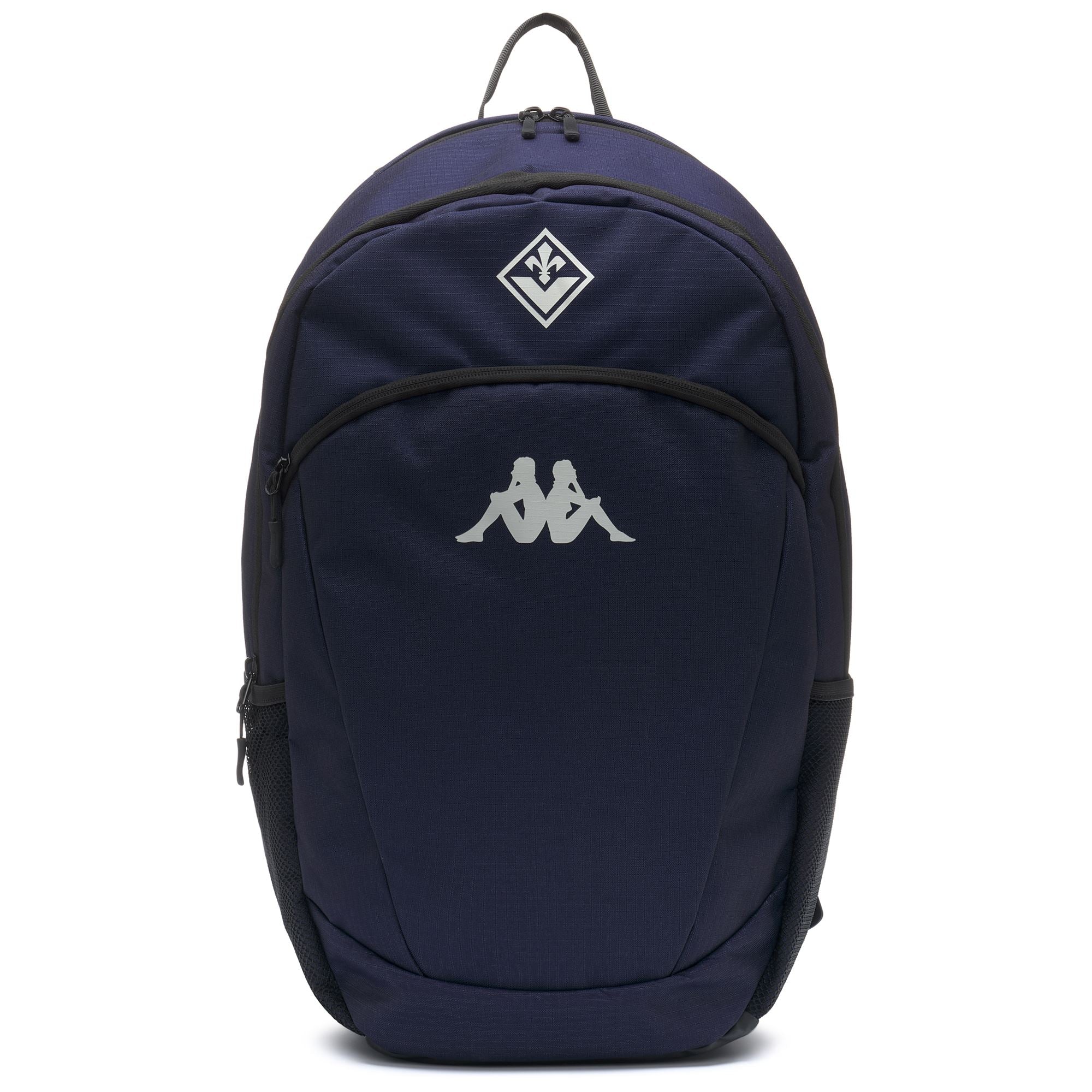 GARA.Backpack in Ripstop woven fabric.M:53 cm X 34 cm X 20 cm.Preformed and padded backpart. Three compartment with different pocket with zip. Internal compartment to containe the laptop. Lateral pockets in mesh.Logo Omini and logo Team printed.ACF FIORENTINA.
