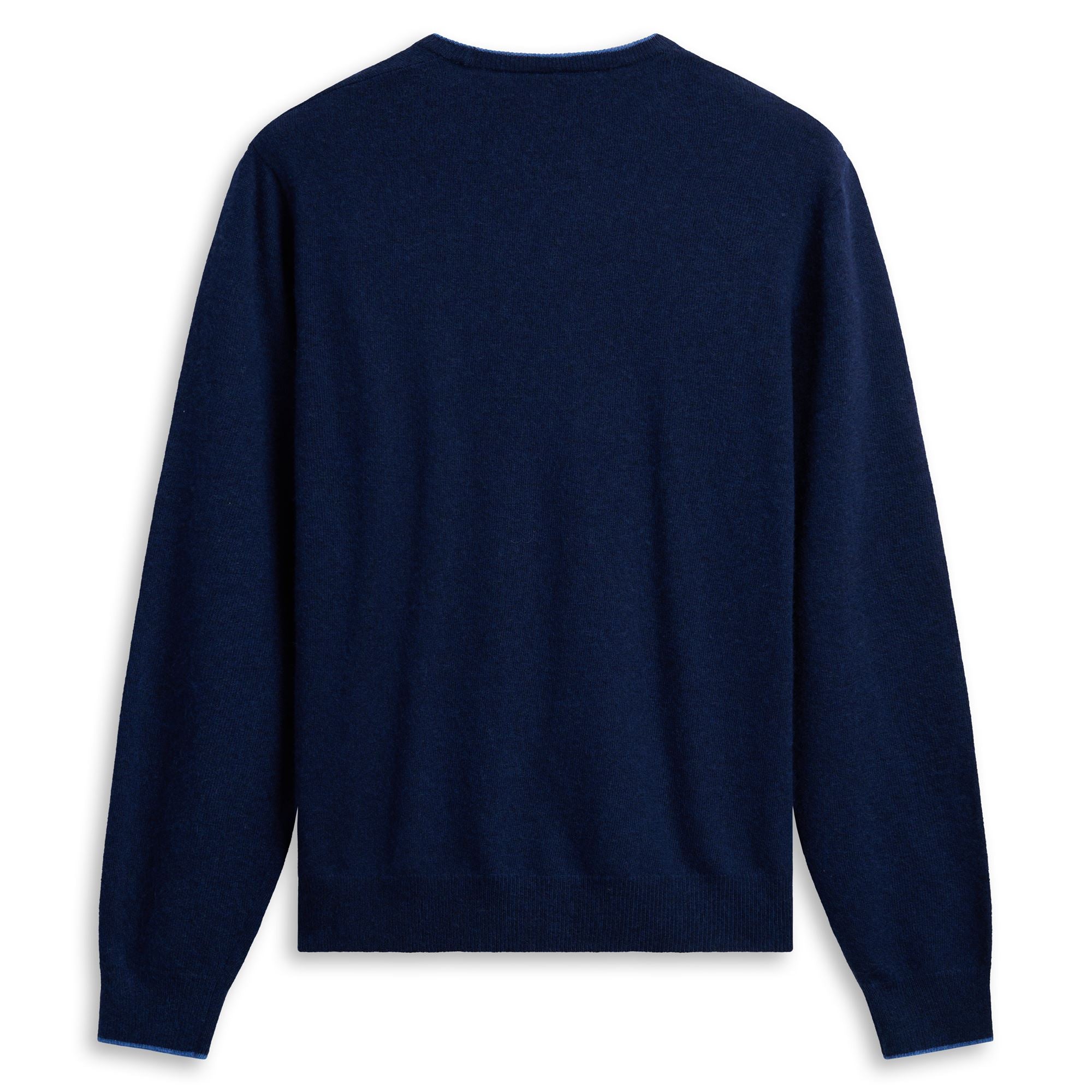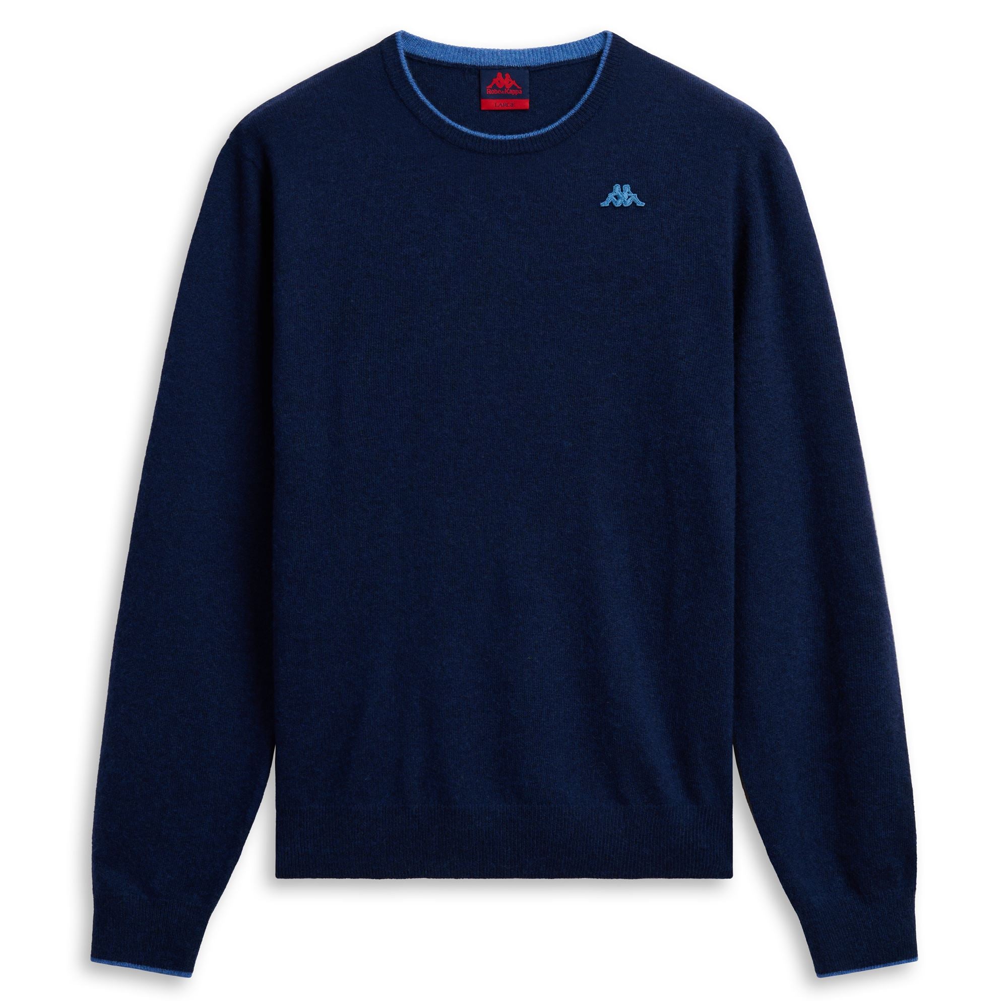 CLASSICO.Roundneck pullover in mixed yarn.SLIM FIT.Stripes’ details in contrast color.Rib borders.Omini patch in contrast color. applied on chest.