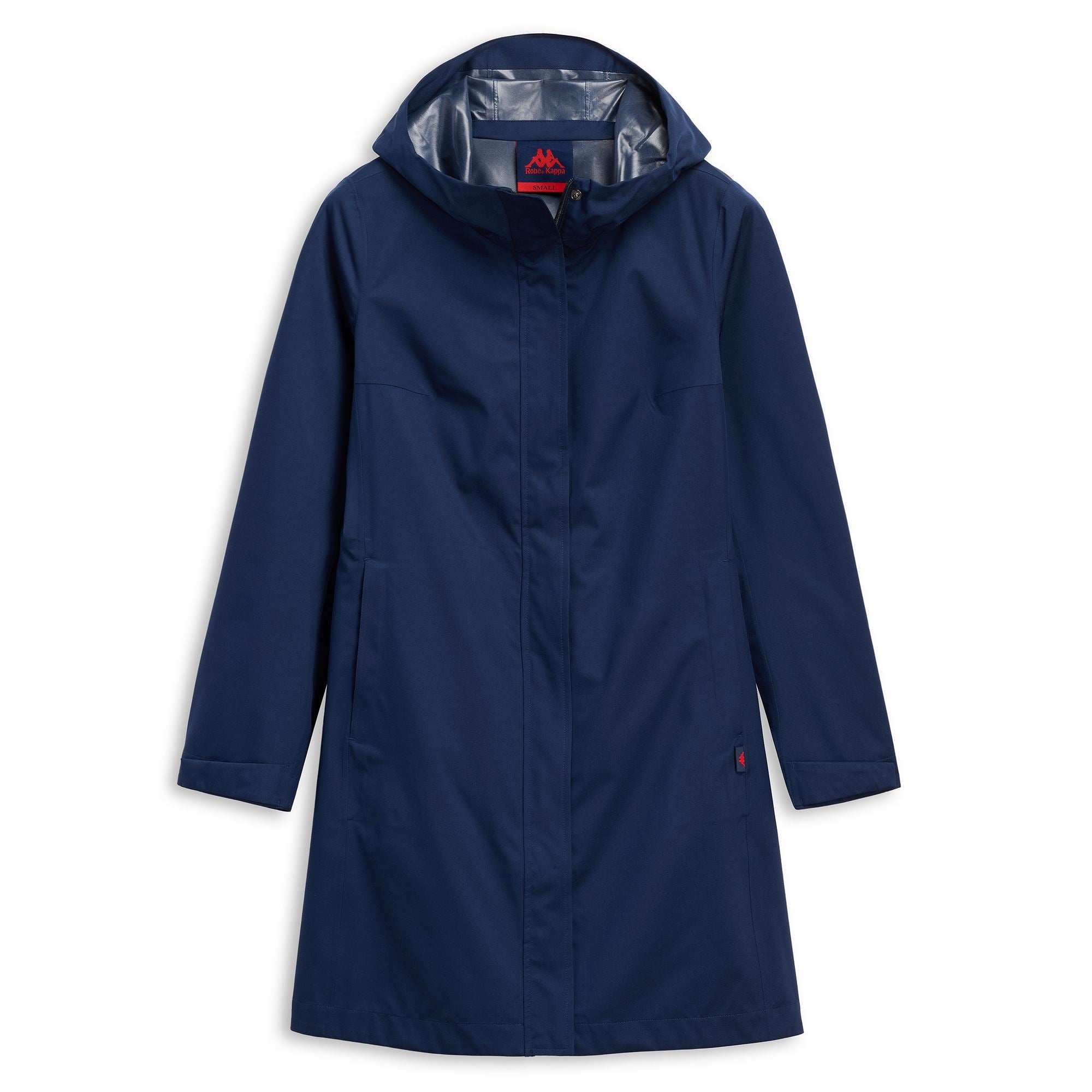CLASSICO.Woman long jacket in nylon.REGULAR FIT.Front opening with hidden buttons and zip.Flag logo.