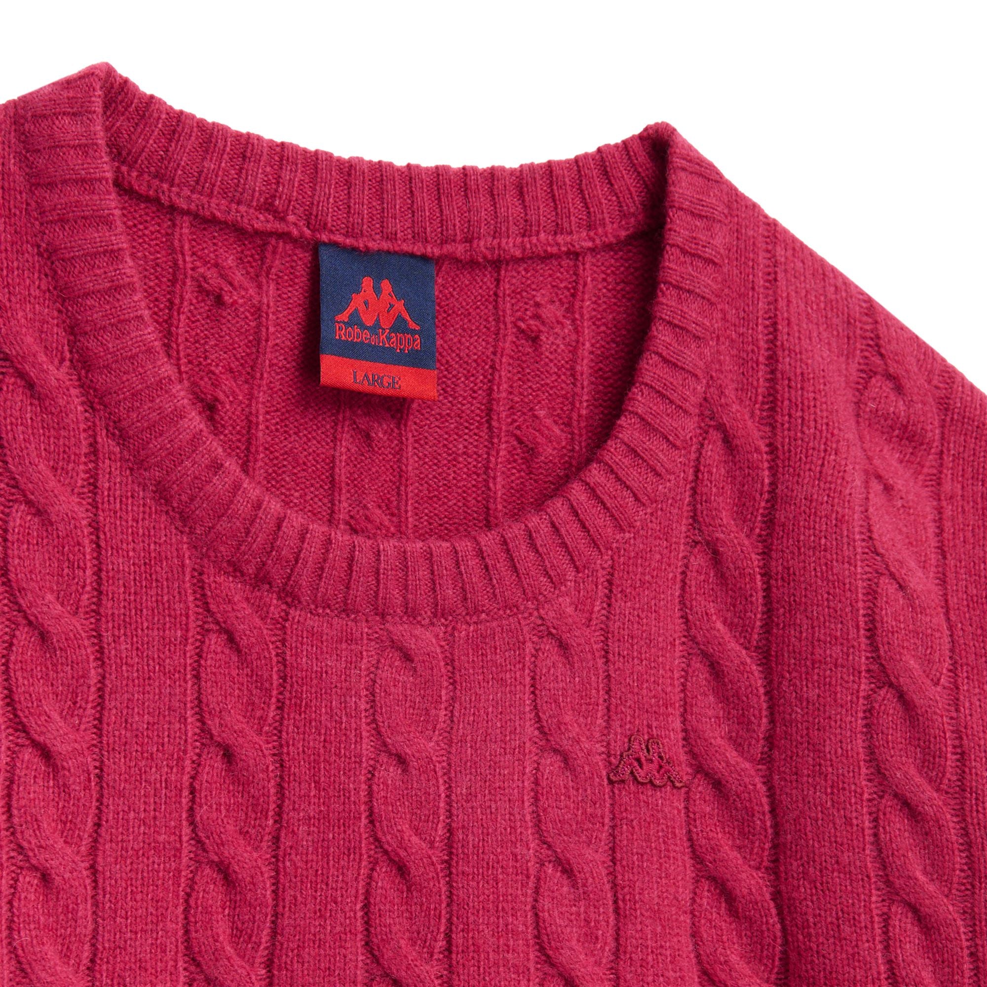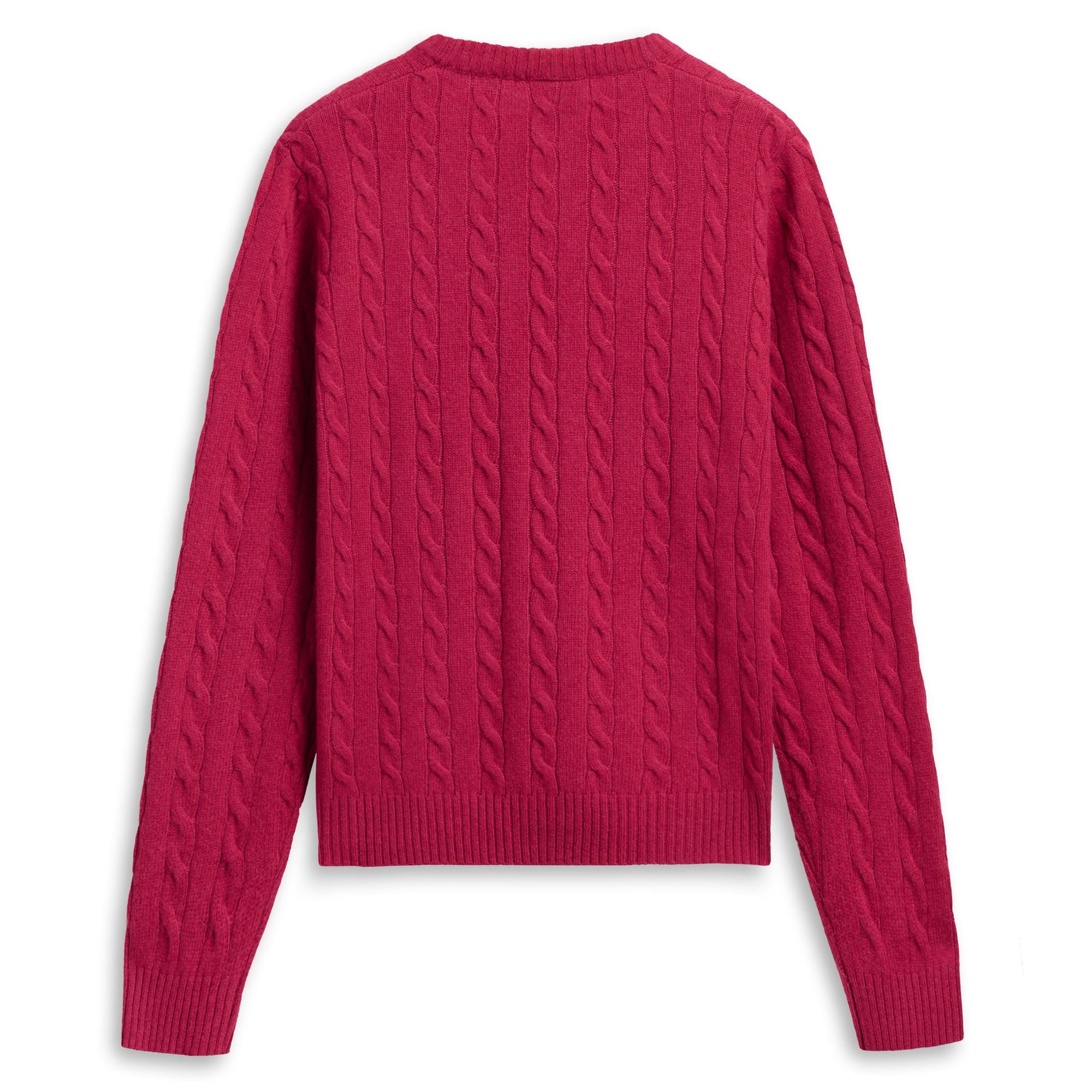 CLASSICO.Woman roundneck pullover in lambswool.CLASSIC FIT.Cable knit.Rib borders.Omini patch on chest.
