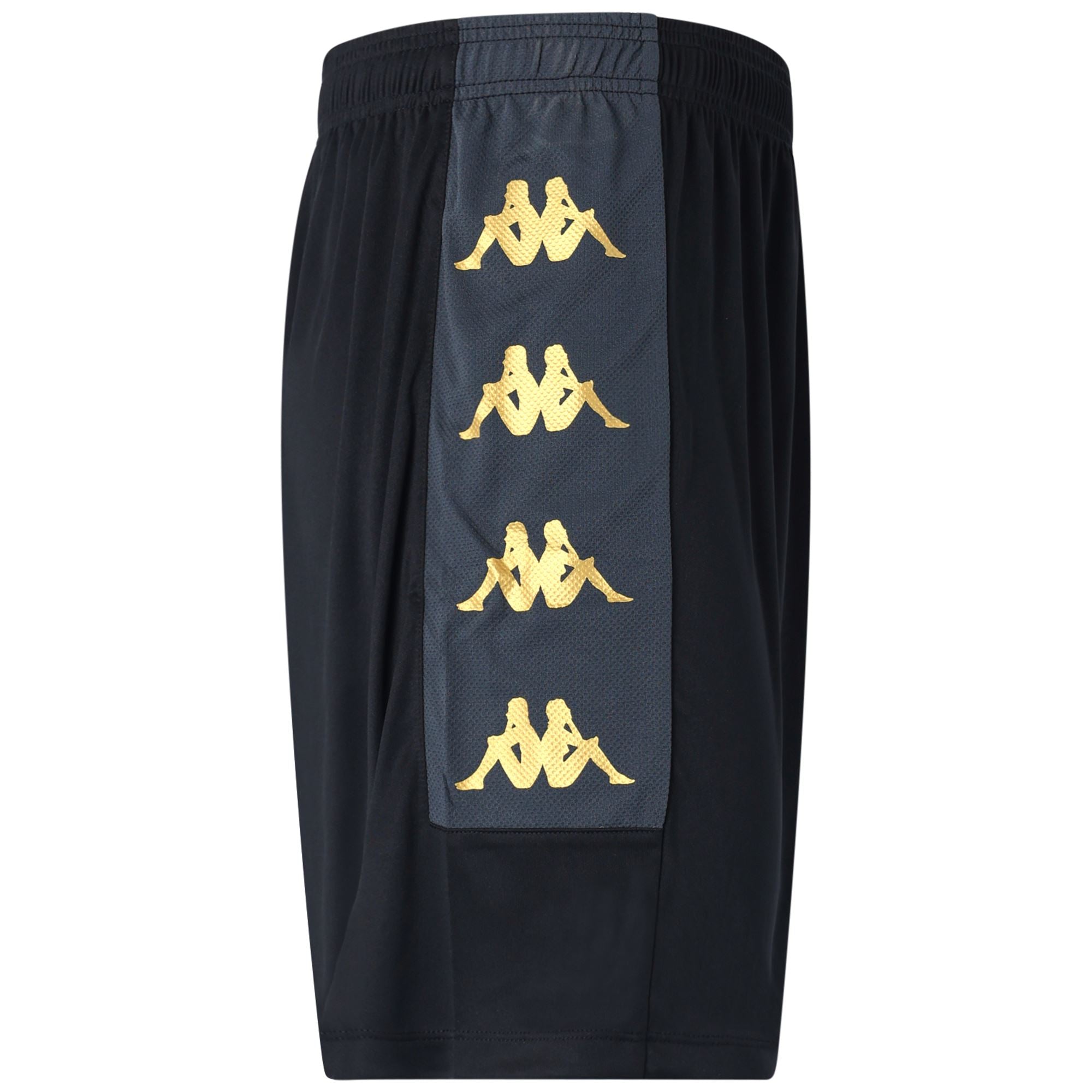 KAPPA4TEAM.Game or training short for man in interlock and mesh fabrics.SLIM FIT.Waist elastic with inner drawcord. insert on sides in mesh fabric.Omini Banda on sides printed.