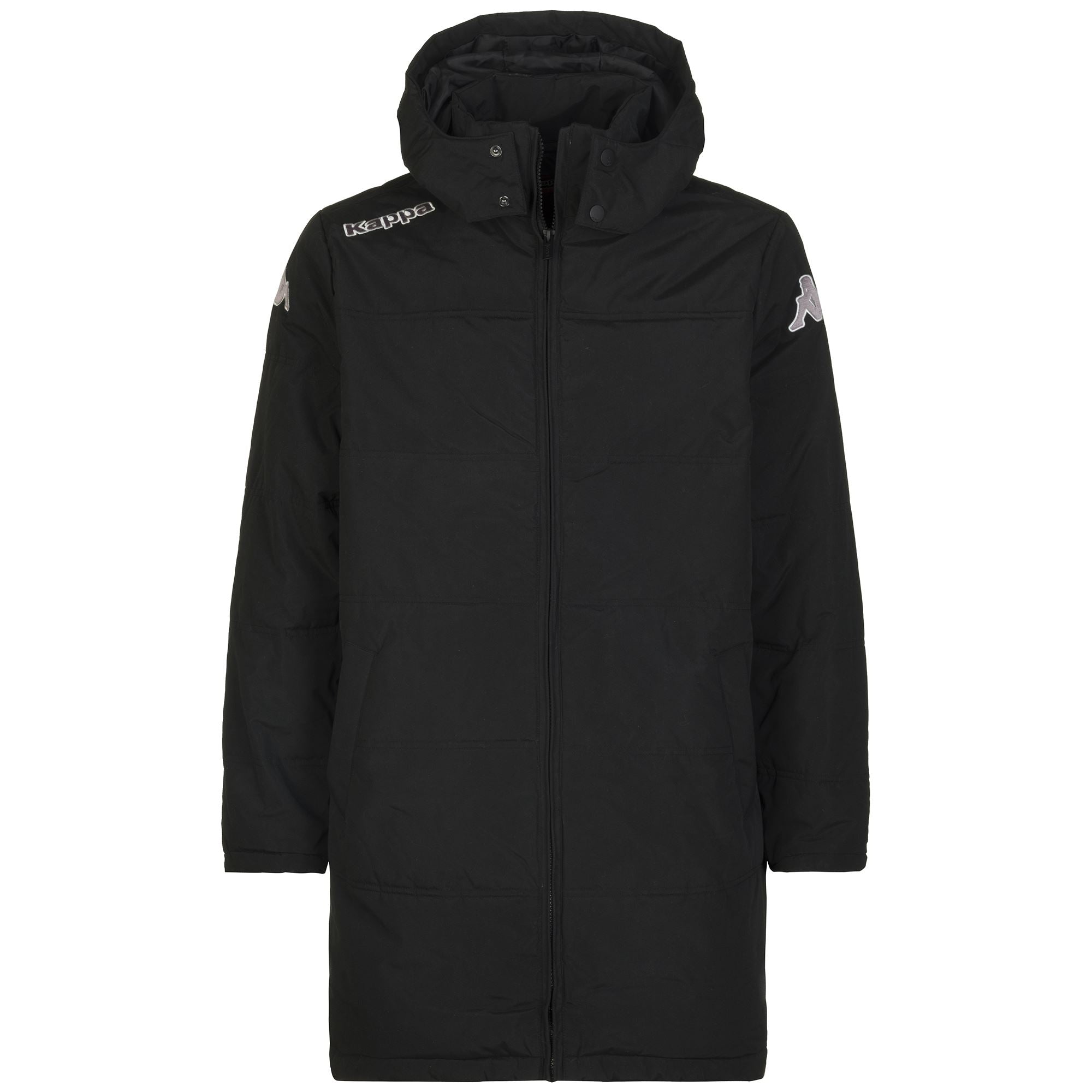 KAPPA4TEAM.Training padded jacket for man in woven fabric.REGULAR FIT.Hooded with button closure. front full zip opening and pockets without zip.Omini logo on sleeves and Kappa lettering on front embroidered.