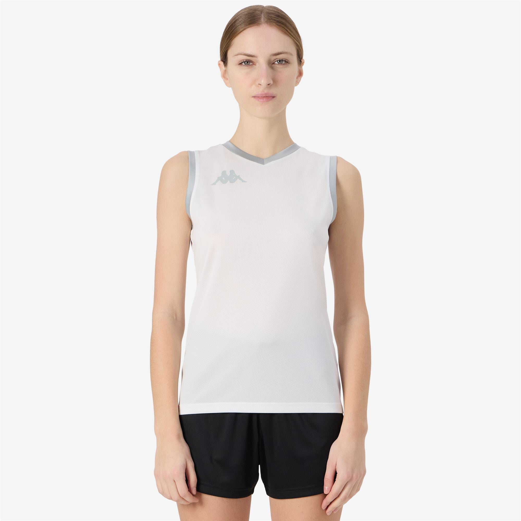 KAPPA4TEAM.Volleyball game or training shirt for woman in textured fabric.SLIM FIT.Sleeveless. V neck and insert on armholes.Omini logo on front printed.