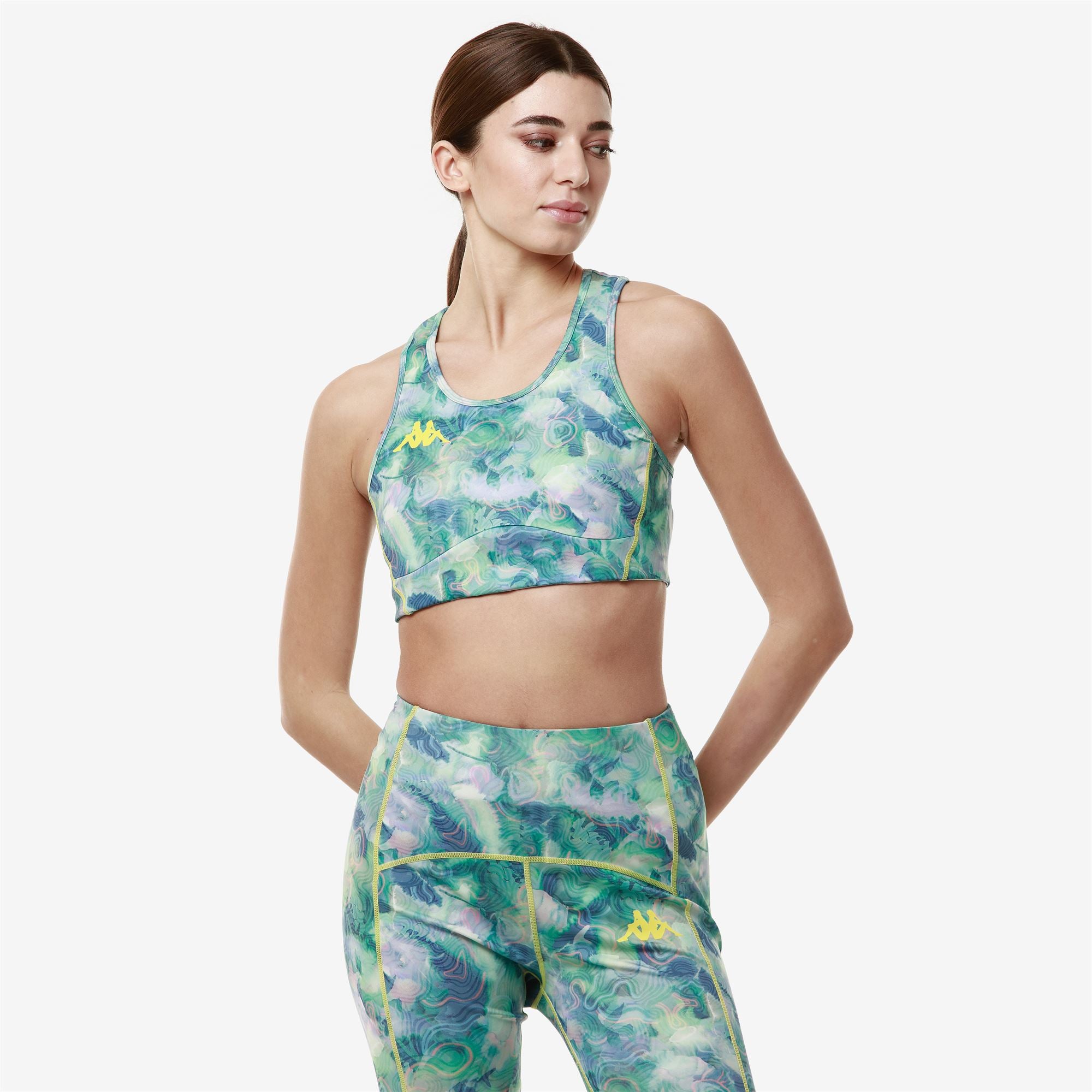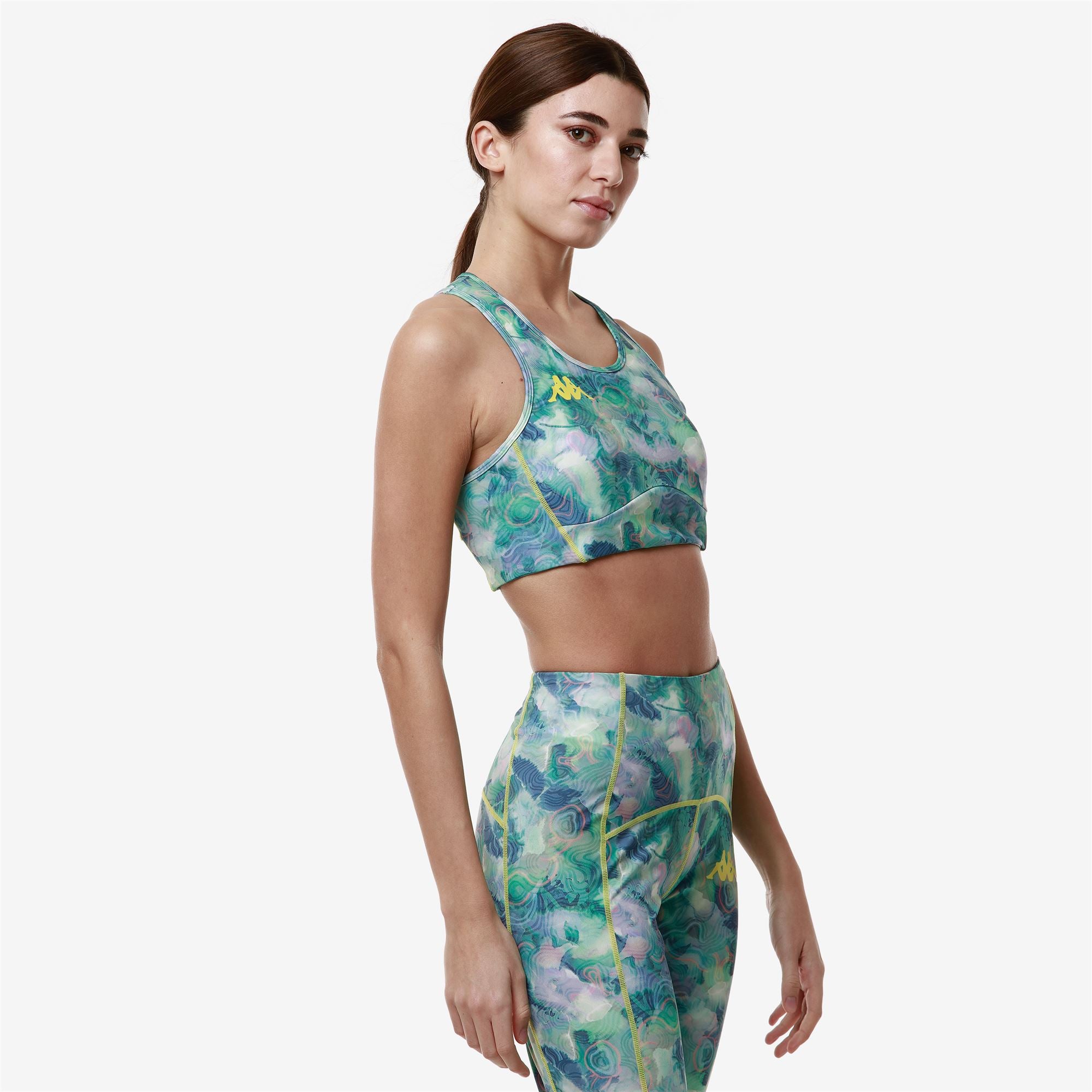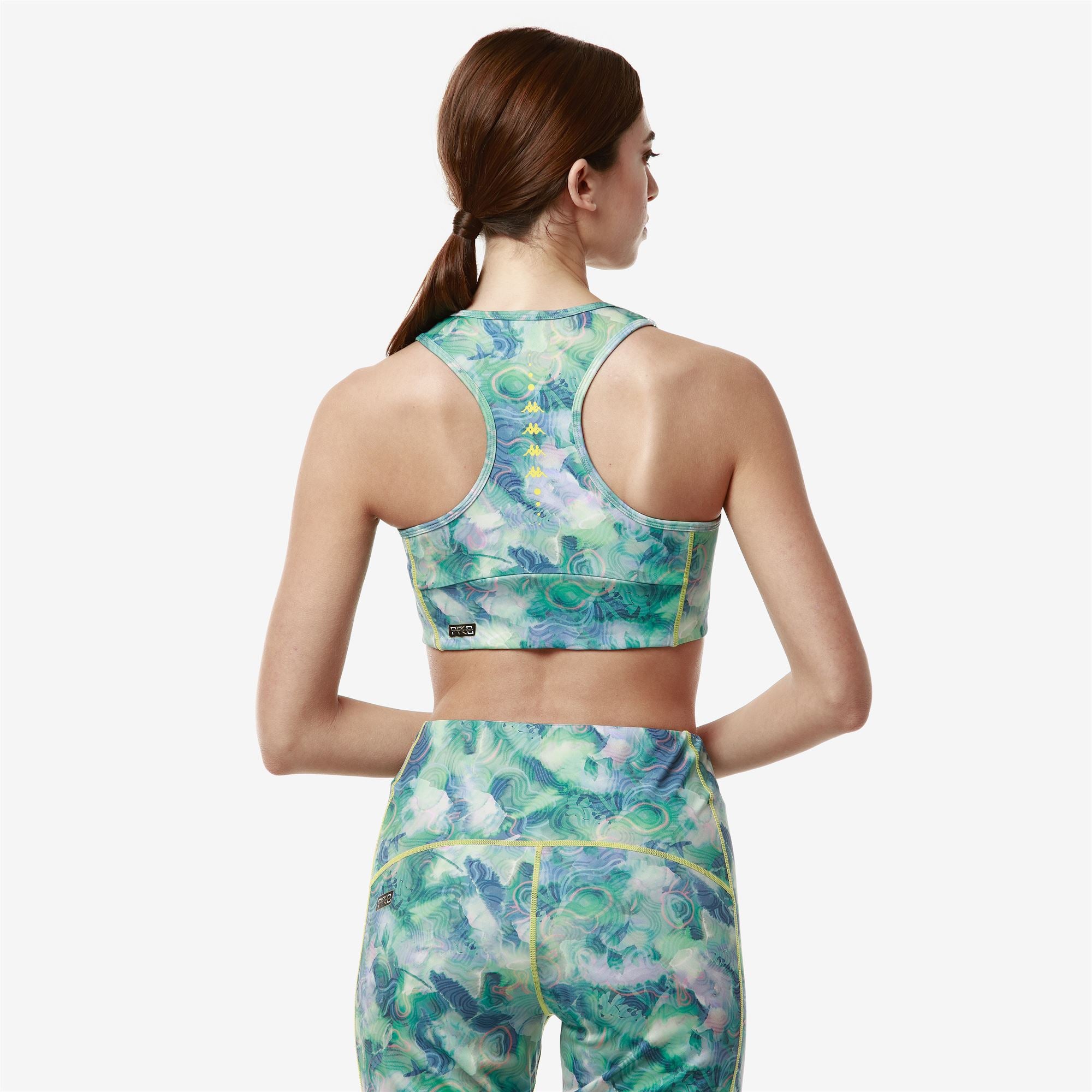 SPORT.Woman top in stretch jersey fabric.SKIN FIT. Round neckline on front. removable cups.Logo Omini printed on front. Kombat Pro System logo on back. Omini Graphic printed. allover print.