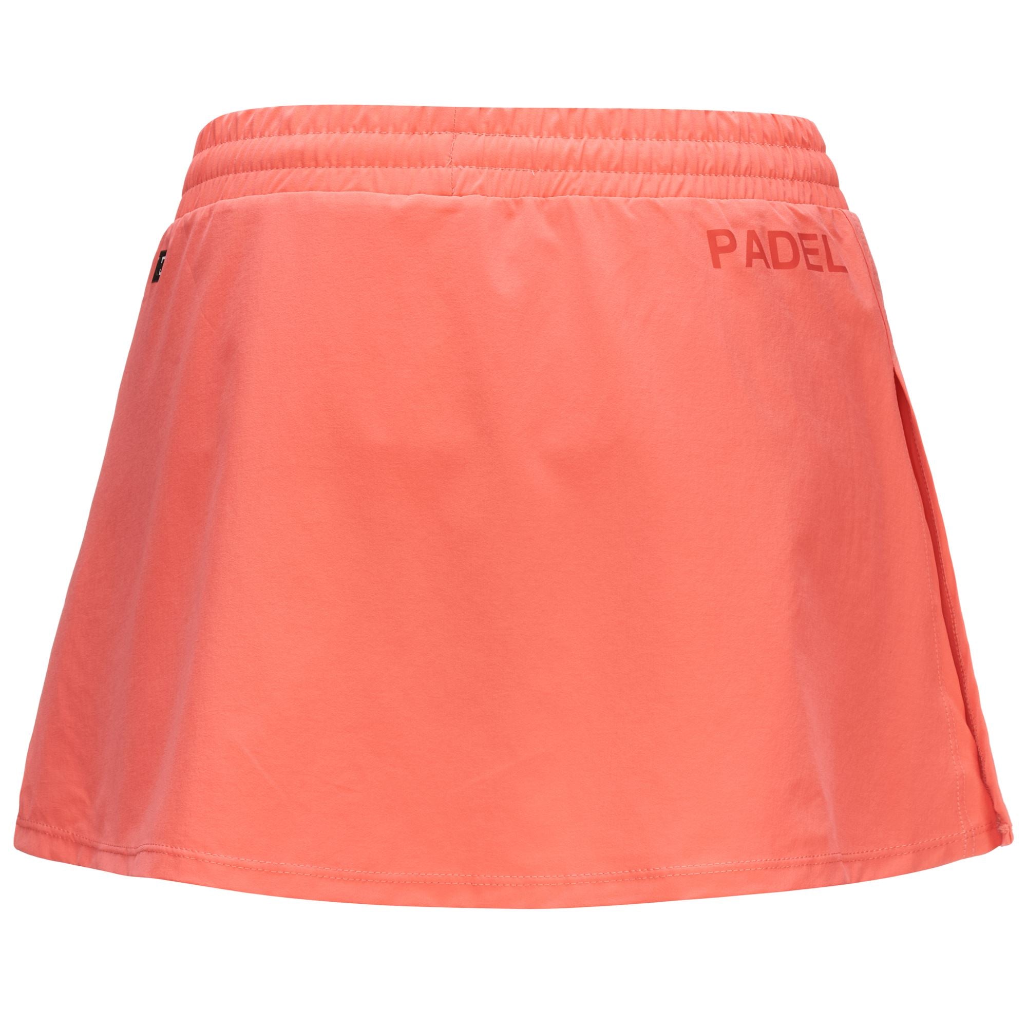 SPORT.Woman skirts realized in woven stretch.SLIM FIT.Inner light jersey stretch shorts with pockets on sides. elasticated waist with drawcord. split on side skirts.Omini Padel logo printed on front. Padel lettering printed on back. logo Kombat Pro System printed on back.