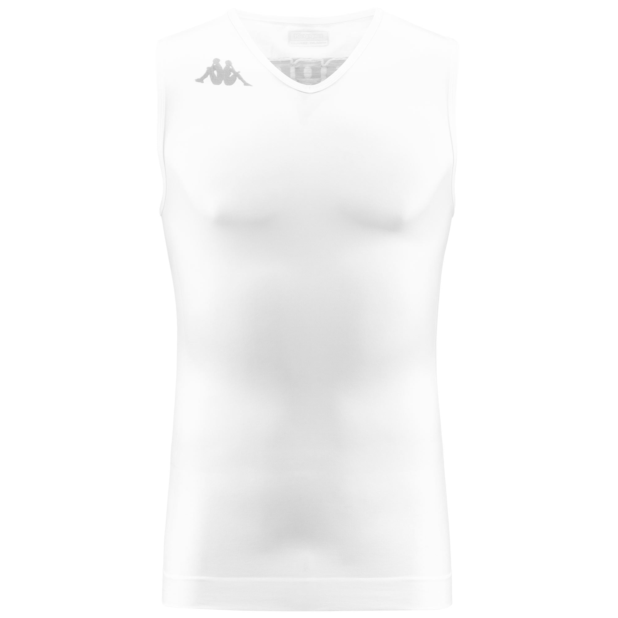 SPORT.KOMBAT?.Underwear shirt in polyammide elastic fiber with BACTERIAL. BREATHEABILITY and HYDRO-WAY PROTECTION technology. partecipating to Textile and Health Project promoted by the Italian Ministry of Health.SKIN FIT.Seamless technology.Sleeveless and V neck.Omini logo on chest and Kappa lettering on back in jacquard without seams.