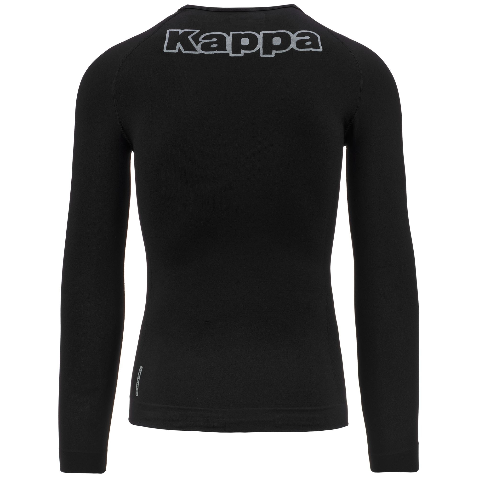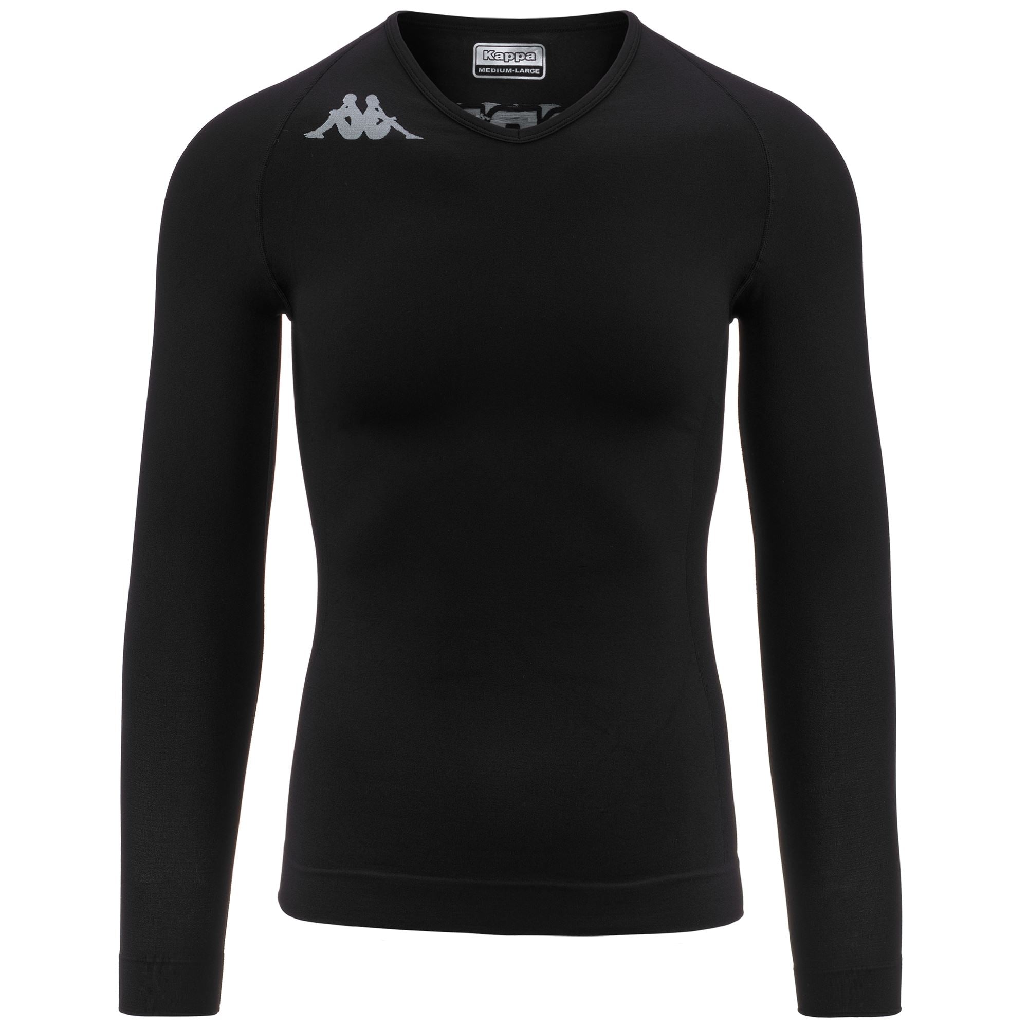 SPORT.KOMBAT?.Underwear shirt in polyammide elastic fiber with BACTERIAL. BREATHEABILITY and HYDRO-WAY PROTECTION technology. partecipating to Textile and Health Project promoted by the Italian Ministry of Health.SKIN FIT.Seamless technology.Long sleeves and V neck.Omini logo on chest and Kappa lettering on back in jacquard without seams.